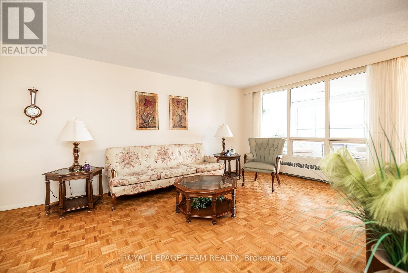 The Horizon a "worry-free" lifestyle in the heart of Ottawa. $743.05/month CONDO FEE COVERS EVERYTHING: Heat, Hydro, Water, Parking, Insurance, & Maintenance-ideal for predictable budgeting! This impeccably maintained 2 bedroom 1 bathroom unit is conveniently close to shopping, transit and restaurants. Gleaming parquet flooring throughout most of the unit with carpet in bedroom 2 and linoleum in the kitchen. The kitchen is filled with natural light from it's own window. The cozy solarium makes a great area for reading, crafting or just relaxing. Resort-style amenities: outdoor saltwater pool, fitness center, party room/library, and 2 guest suites. Includes one underground parking and one locker as well there is a storage room in the unit for easy access. Immediate occupancy available. Refrigerator 2025 AC unit 2025. Direct Bus #111 to Algonquin or Carleton at the road. Flexible closing but available immediately.