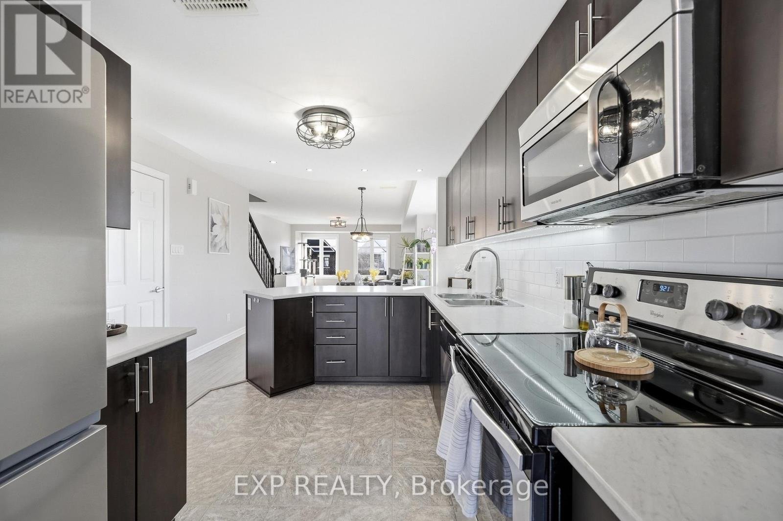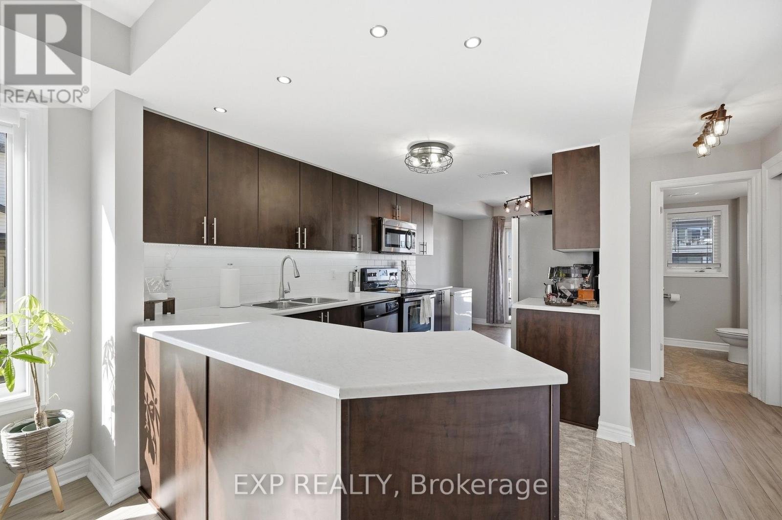 This beautiful condo nestled in the heart of Morris Village in Rockland features an open concept kitchen, dining and living rooms. The kitchen is amazing with quartz countertops, loads of cabinets and counter space, patio door to the balcony where you can sit and enjoy your morning coffee. The living and dining areas are large perfect for entertaining friends and family. 2 large bedrooms, the primary bedroom has a 3 pce ensuite, lots of closets, another large bedroom, 3 pce bathroom on the upper floor plus a 2 pce bathroom on the main floor for a total of 3 bathrooms. The location is perfect, walking distance to parks, a short drive to shopping, grocery, restaurants and coffee shops. 2 parking spaces outdoors. Rockland is a beautiful community, perfect for young families to retired couples. The ample size of this unit does not feel like a condo. This is a must see.