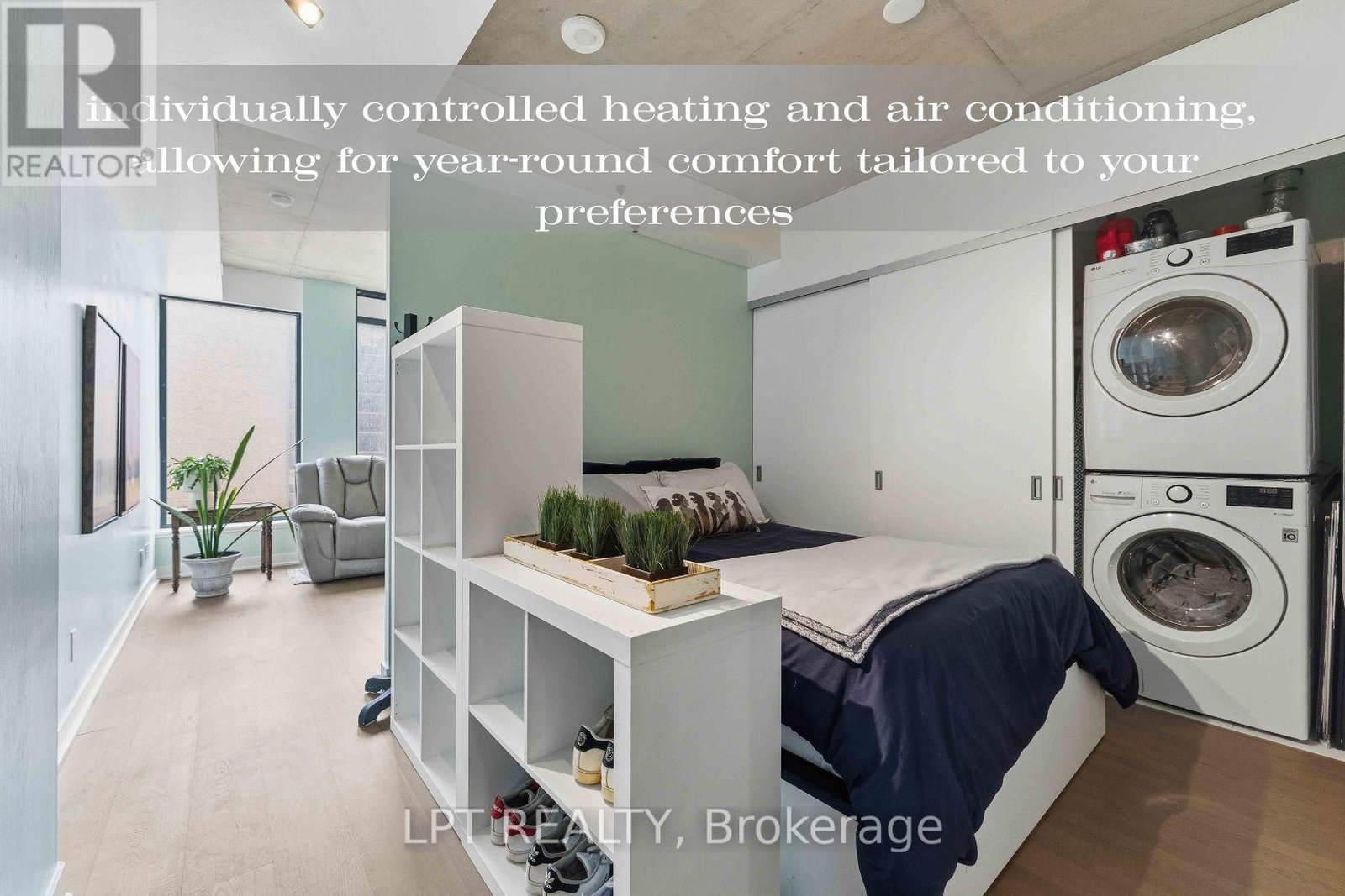 SoBa - an architecturally striking condominium located in Ottawa's vibrant Centretown. Unit 208 offers a functional studio layout with a designated sleeping area, providing separation from the main living space. 9-ft exposed concrete ceilings and engineered hardwood flooring, creates a contemporary aesthetic while floor-to-ceiling windows contribute natural light and enhance the sense of openness within the space. The modern kitchen is equipped with quartz countertops, streamlined cabinetry, and stainless steel appliances, including a gas cooktop and built-in oven. The bathroom offers clean, contemporary finishes designed for practicality and ease of maintenance. Additional conveniences include in-suite laundry and individually controlled heating and air conditioning. Residents of SoBa enjoy access to a selection of well-appointed building amenities, including an outdoor pool with terrace, fully equipped fitness centre, party and meeting rooms, concierge service, security, and secure bicycle storage. This prime location offers exceptional walkability. Residents are steps from a wide range of shops, cafés, restaurants, and everyday amenities. The neighbourhood provides easy access to the Glebe, Lansdowne Park, Elgin Street, and the scenic Rideau Canal, offering year-round recreation and entertainment. Public transit is readily available, simplifying commuting to downtown offices, Carleton University, and the University of Ottawa.