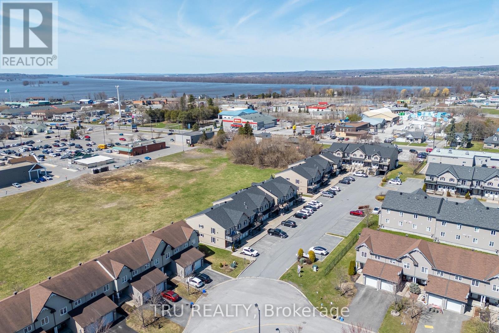 Welcome to this bright and beautifully maintained main-level end-unit condo in the heart of Rockland. Offering a functional 2-bedroom layout, this carpet-free home features an open-concept kitchen, dining, and living area, ideal for everyday living and entertaining. The kitchen offers plenty of cabinetry, generous drawer storage, and a large island overlooking the main living space, while a beautiful natural gas stone fireplace anchors the inviting living room. Enjoy the added benefit of two private balconies, including a spacious front balcony and a second rear balcony with no rear neighbours, providing extra outdoor space and added privacy. The unit also includes a large bathroom, convenient in-unit laundry with additional storage, plus recent upgrades, including shingles, a laundry sink, a washer and dryer, a dishwasher, an electric heater, and all closet doors. A dedicated storage locker and parking spot are also included. Located within walking distance to groceries, shops, banks, and everyday amenities, and close to Rockland's parks, recreation facilities, trails, and Ottawa River lifestyle, this condo offers comfort, convenience, and low-maintenance living in a fantastic location.