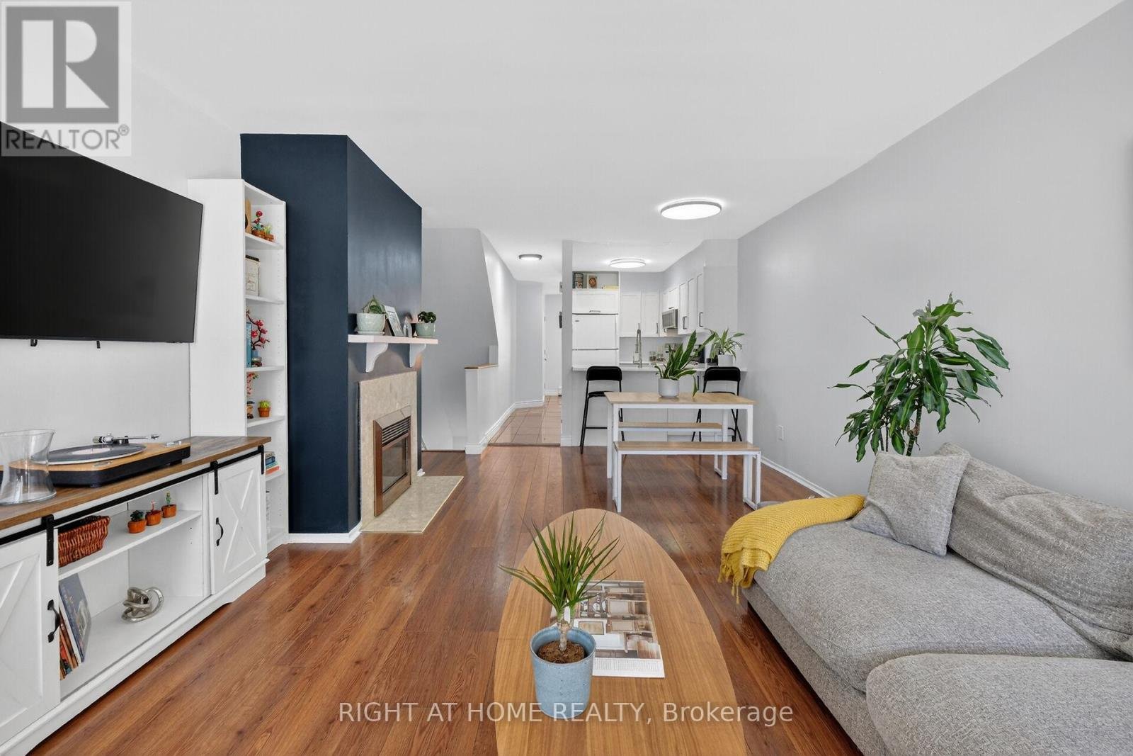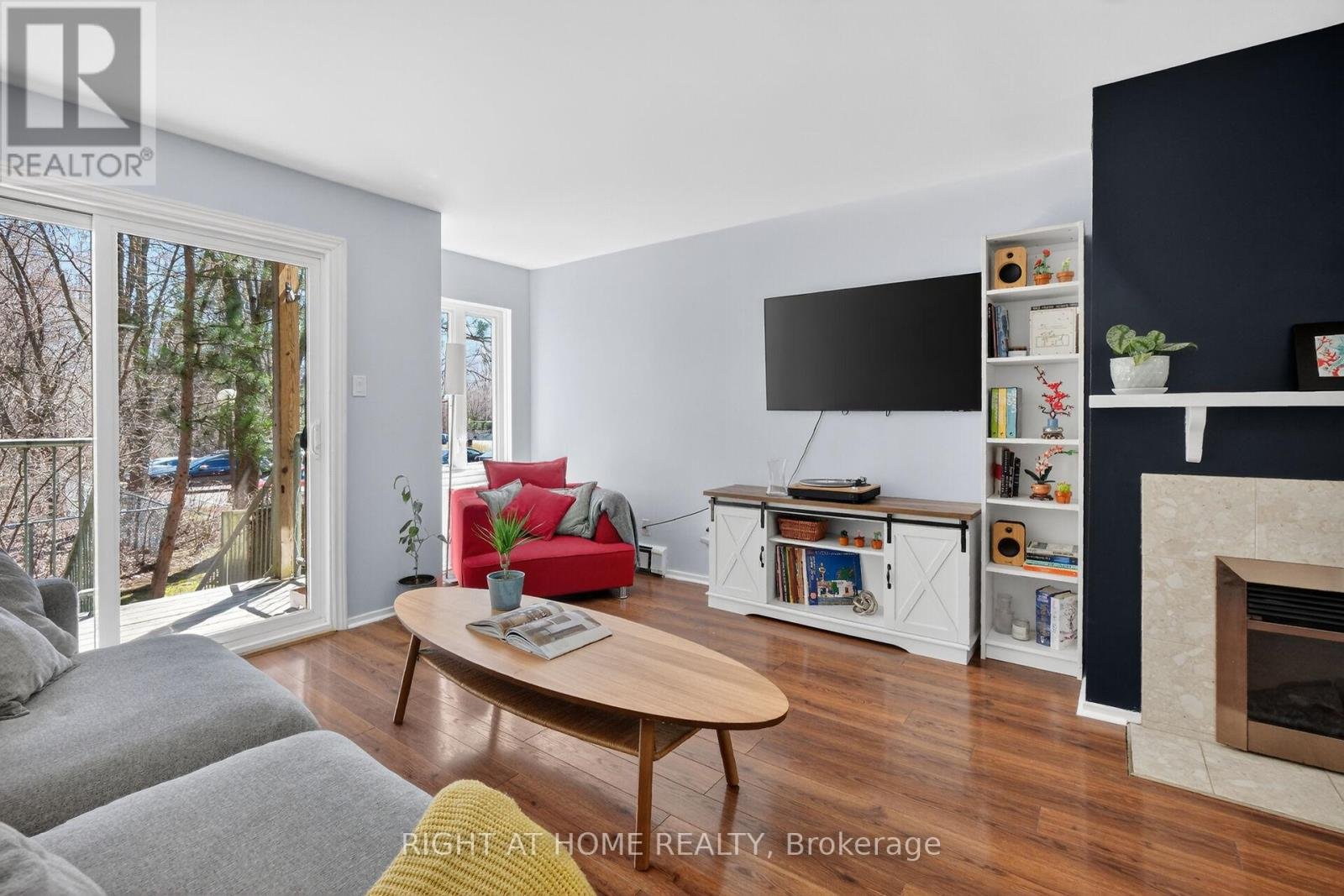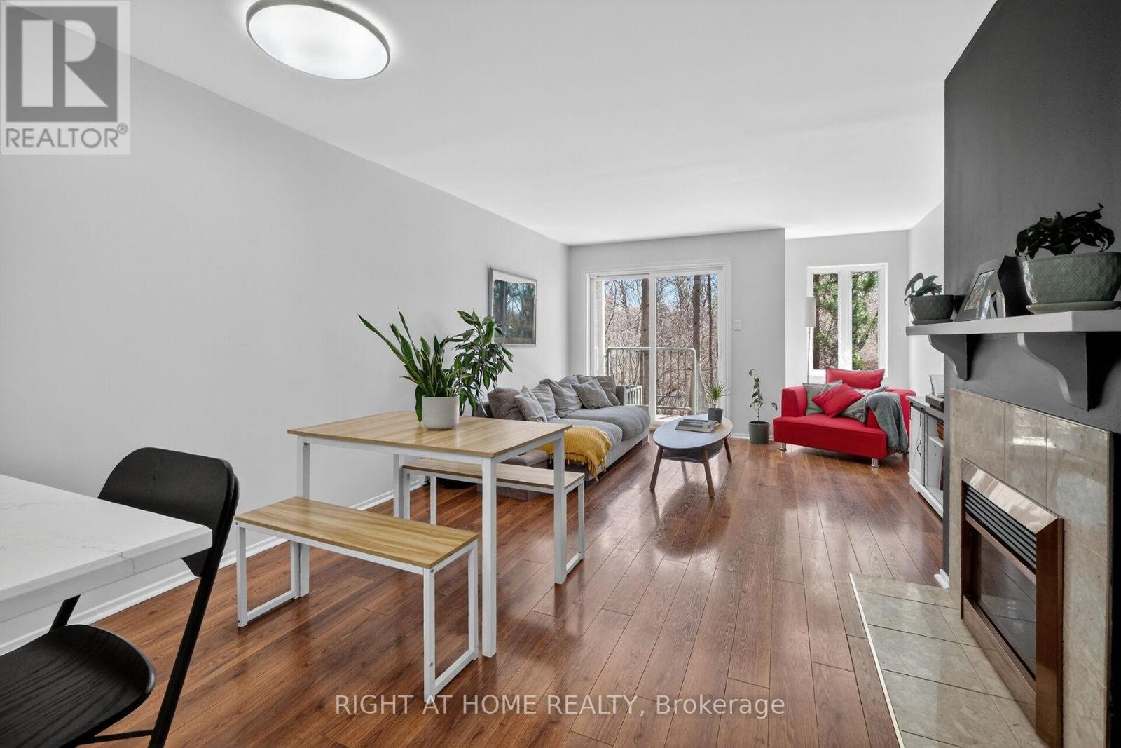 OPEN HOUSE SUN 2-4PM Move-in ready condo situated in sought after Manor Park. An idyllic corner of the city where bike paths and cross-country ski trails along the river are at your doorstep. From the moment you enter the condo you are greeted by gorgeous tile floors. The powder room was renovated earlier this year. The kitchen was renovated in 2024 and offers a new microwave/hood fan, dishwasher, breakfast bar and quartz counters. Too tired to cook stroll over to the Works for a burger or pick up a delicious meal from Epicuria. Spacious living/dining room with a cozy fireplace and a patio door leading to balcony and yard for summer BBQs. Lovely setting with no rear neighbours, simply enjoy the sounds of nature in the forested area at back. On the lower level there are two spacious bedrooms (one currently used as an office). The main bathroom has new faucets, light fixture and mirror. There are also double sinks no need to share here. The spacious laundry room has a new washer and dryer plus plenty of space for extra storage. There is even more storage under the stairs. The water heater/boiler was replaced in December 2022 and comes with a warranty for peace of mind. There is also a built-in a/c unit which cools the space nicely. This year, the stipple ceilings on the main floor and some of the lower level were removed and painted. It all adds up to a fabulous opportunity to be part of a wonderful community offering lifestyle, convenience and the comforts of a move-in ready home!