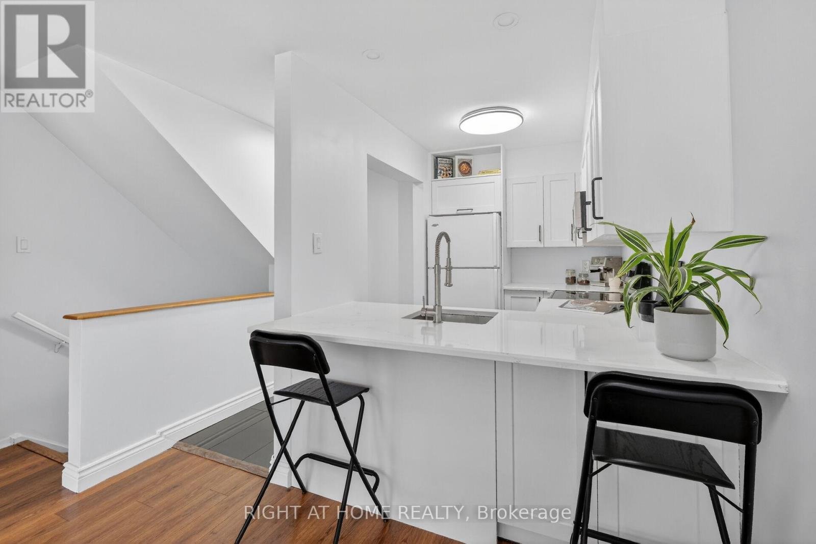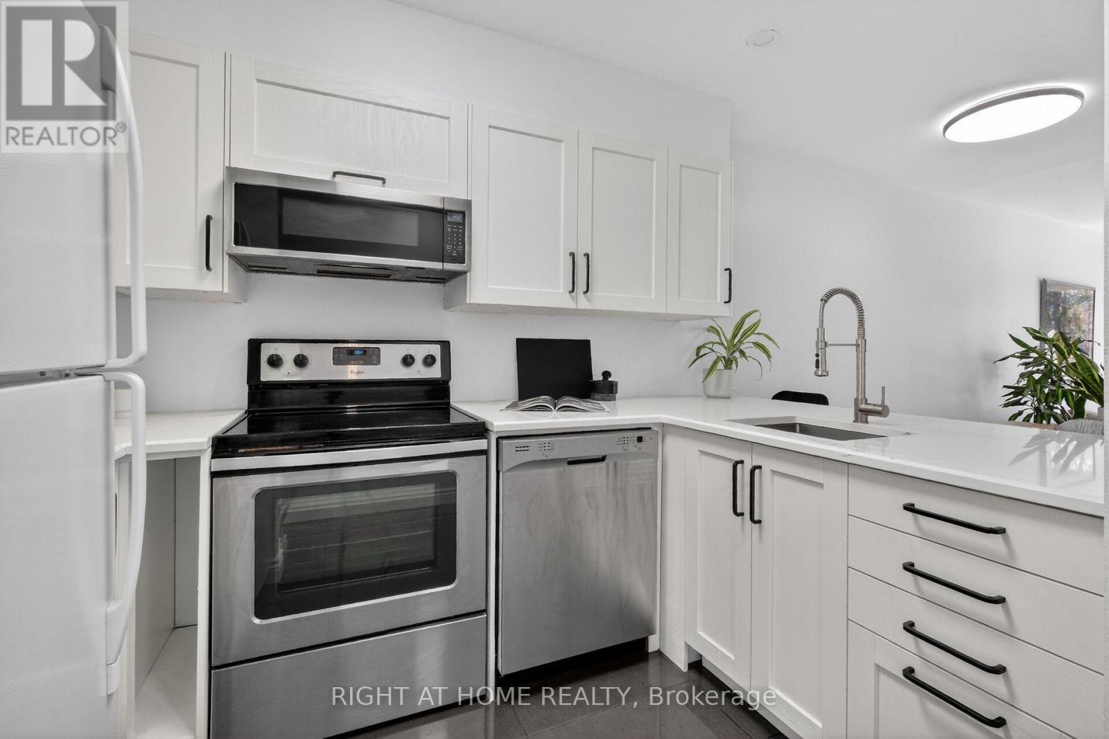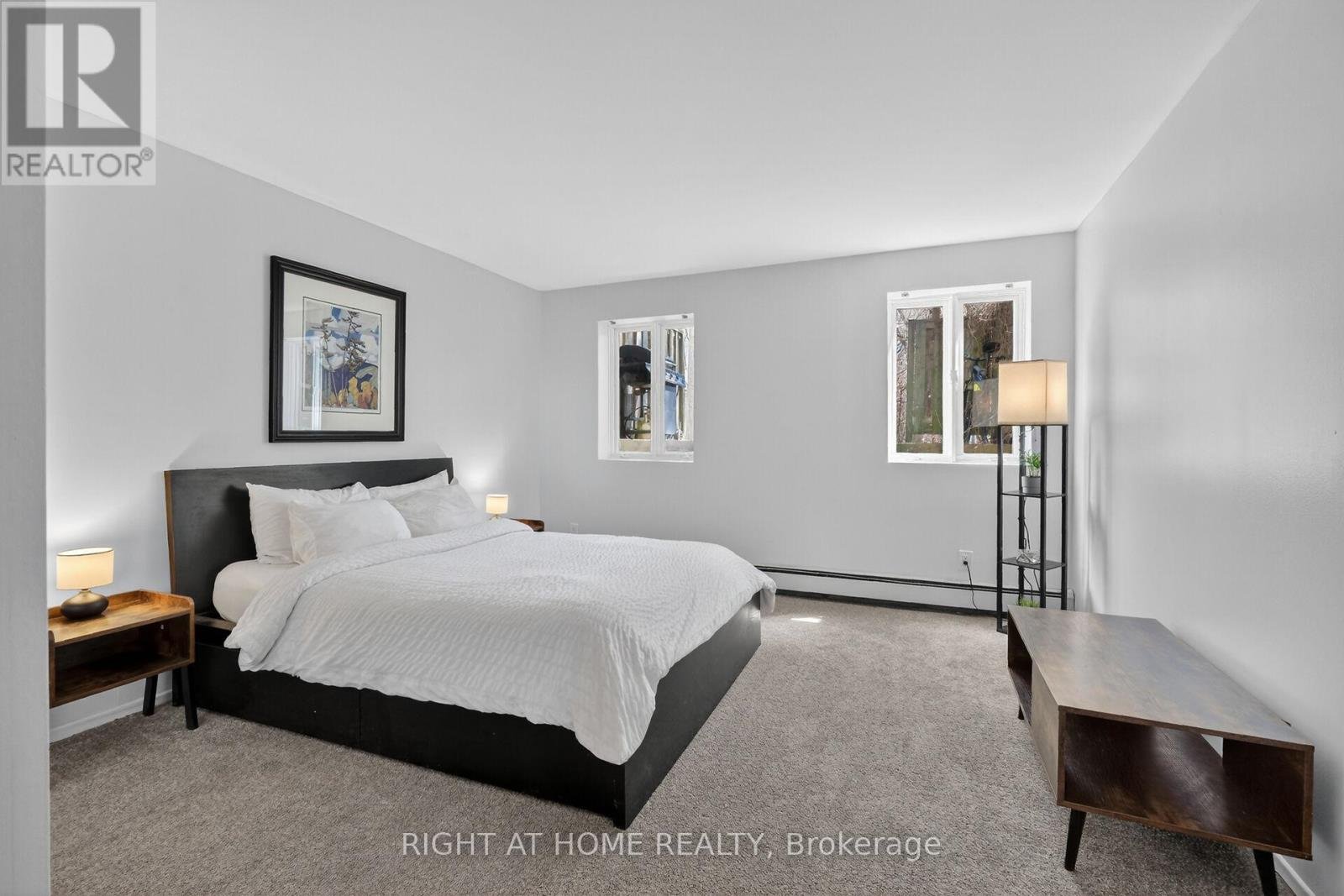 OPEN HOUSE SUN 2-4PM Move-in ready condo situated in sought after Manor Park. An idyllic corner of the city where bike paths and cross-country ski trails along the river are at your doorstep. From the moment you enter the condo you are greeted by gorgeous tile floors. The powder room was renovated earlier this year. The kitchen was renovated in 2024 and offers a new microwave/hood fan, dishwasher, breakfast bar and quartz counters. Too tired to cook stroll over to the Works for a burger or pick up a delicious meal from Epicuria. Spacious living/dining room with a cozy fireplace and a patio door leading to balcony and yard for summer BBQs. Lovely setting with no rear neighbours, simply enjoy the sounds of nature in the forested area at back. On the lower level there are two spacious bedrooms (one currently used as an office). The main bathroom has new faucets, light fixture and mirror. There are also double sinks no need to share here. The spacious laundry room has a new washer and dryer plus plenty of space for extra storage. There is even more storage under the stairs. The water heater/boiler was replaced in December 2022 and comes with a warranty for peace of mind. There is also a built-in a/c unit which cools the space nicely. This year, the stipple ceilings on the main floor and some of the lower level were removed and painted. It all adds up to a fabulous opportunity to be part of a wonderful community offering lifestyle, convenience and the comforts of a move-in ready home!