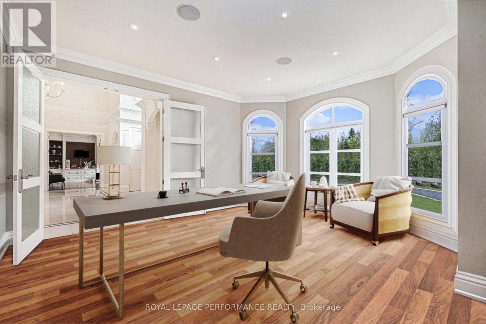 Magnificent PALACE in Rideau Forest! This stunning FULLY FURNISHED estate (approximately 10,000 sq. ft.) is situated on a 2.45-acre lot in the prestigious Rideau Forest neighborhood. Featuring a majestic stone exterior, this home is the epitome of luxury living. A serene fountain at the entrance sets the tone for the opulence within. Upon stepping into the grand foyer, you're greeted by gleaming marble floors and a curved staircase adorned with a wrought-iron railing, creating a breathtaking first impression. The HERRINGBONE HARDWOOD FLOORS, 20-ft ceilings, two-tier windows, crown molding & exquisite chandeliers showcase intricate craftsmanship throughout this architectural masterpiece. Boasting 6 BEDROOMS & 9 BATHROOMS, this renowned property FEATURED IN MOVIES with mega CELEBRITIES offers unparalleled sophistication. Highlights include a DREAM KITCHEN with Taj Mahal granite countertops, integrated appliances, a butlers pantry & an elegant dining room. An inviting family room with a fireplace & a main-level bedroom with an ensuite. A PRIVATE wing for the primary suite, complete with a sitting area, fireplace, a dream closet & a BREATHTAKING 5 PIECE ENSUITE w/Heated floors. EACH BEDROOM FEATURES A WALK IN CLOSET AND ENSUITE BATHROOM, with one offering access to a private balcony. This FULLY FURNISHED ESTATE is an ENTERTAINERS PARADISE with a home theater, gym, and STEAM room. The WALK-OUT BASEMENT has a separate entrance, leading to an additional bedroom with an ensuite. Heated floors in select areas, dual furnaces, dual air conditioners, dual hot water tanks (owned), and a GENERAC home generator for peace of mind. Other notable features include: High-end appliances, Separate sound systems for individual rooms, ELECTRONICALLY LOWERED CHANDELIER for easy cleaning and the garage having a SEPARATE entrance to the basement. This FAMOUS CELEBRITY PROPERTY, surrounded by tranquility & grandeur, offers an unparalleled blend of elegance, privacy, and functionality.
