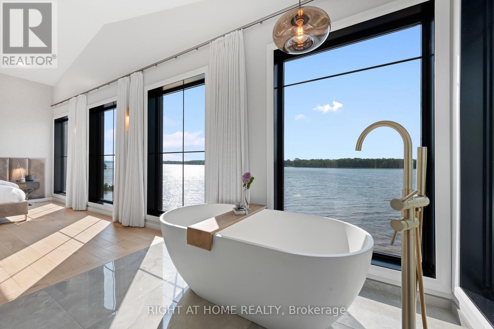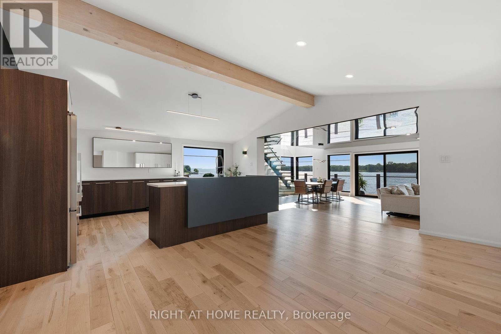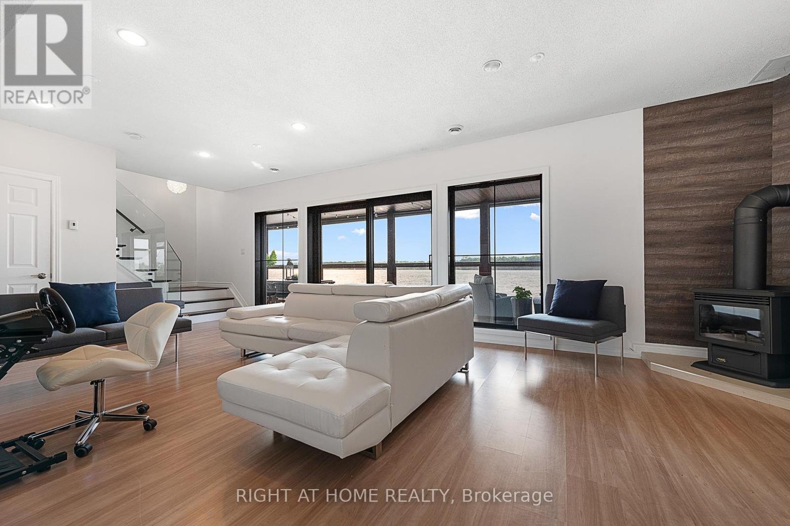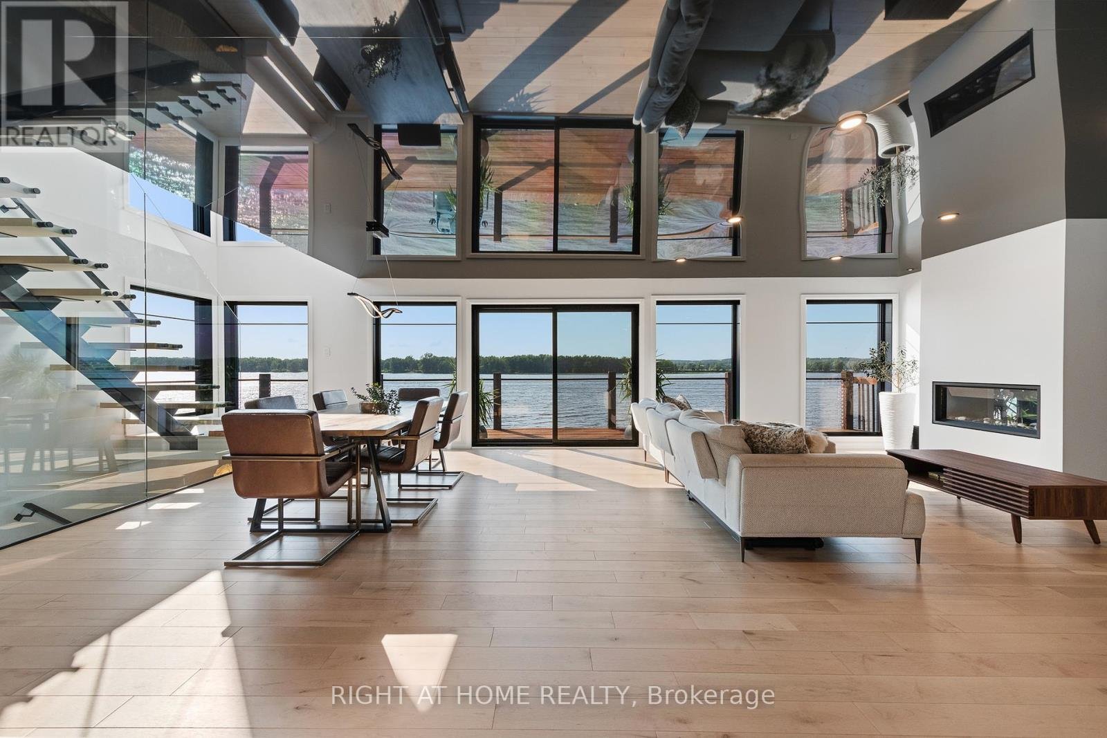 Welcome to 2120 Du Chateau Your Waterfront Dream Home! Experience breathtaking sunsets and stunning views of the Ottawa River from this absolutely gorgeous waterfront property. This elegant yet modern 3-bedroom, 3-bathroom home seamlessly blends luxury living with modern beauty. From the moment you arrive, the heated stamped concrete walkway sets the tone for the sophistication within. Step inside a spacious and bright foyer, thoughtfully designed with a cozy workspace nearby and provides direct access to the laundry/mudroom, which in turn gives access to a massive 42 x 25 heated garage perfect for storing toys with a 13 to 17 foot ceiling height. The entire second level is dedicated to the primary suite, boasting a spectacular wall of windows overlooking the water, a spacious walk-in closet, and a sleek 5-piece ensuite. On the main floor, the generous kitchen is a chef's delight, complete with a walk-in pantry and open concept design that flows effortlessly into the living and dining rooms. Both rooms feature a stretch ceiling which gives an added height effect and a wall of windows that open onto a full-width deck the perfect spot to enjoy your morning coffee or evening gatherings. Two additional bedrooms, a 3-piece bath, and a powder room complete the main level. The lower level offers a versatile family room with access to a screened-in porch, ideal for relaxing without worrying about mosquitoes. Located in a convenient in-town waterfront setting, this home perfectly combines modern luxury with the tranquility of nature. Don't miss the chance to own this spectacular retreat where every detail is designed for comfort and style. for additional pictures and 3D walkthrough click on the links below