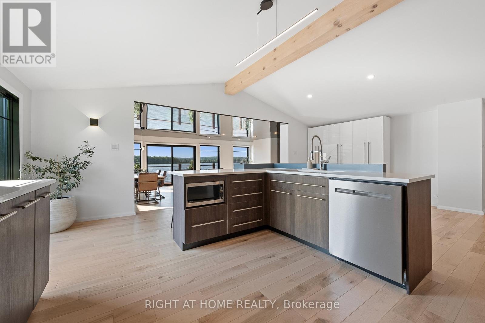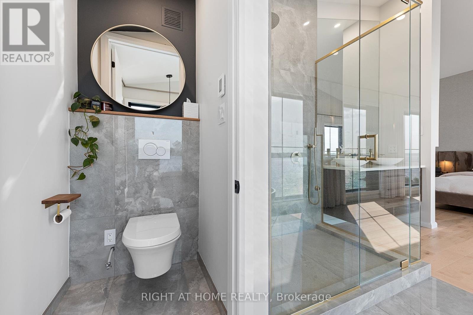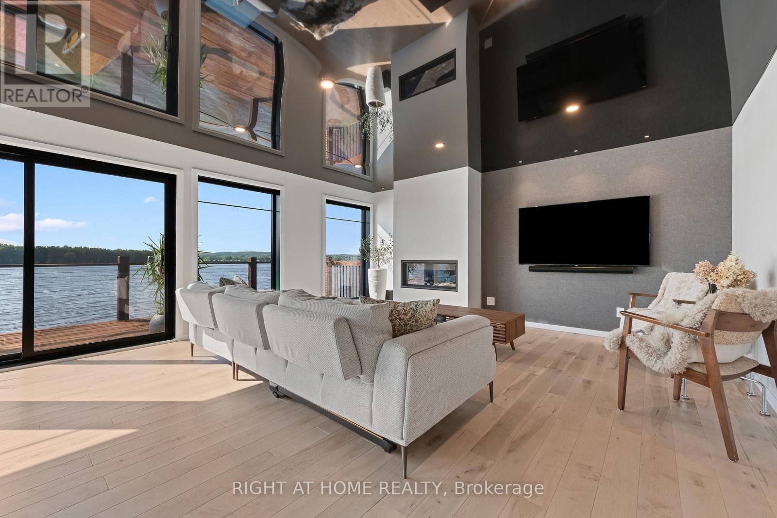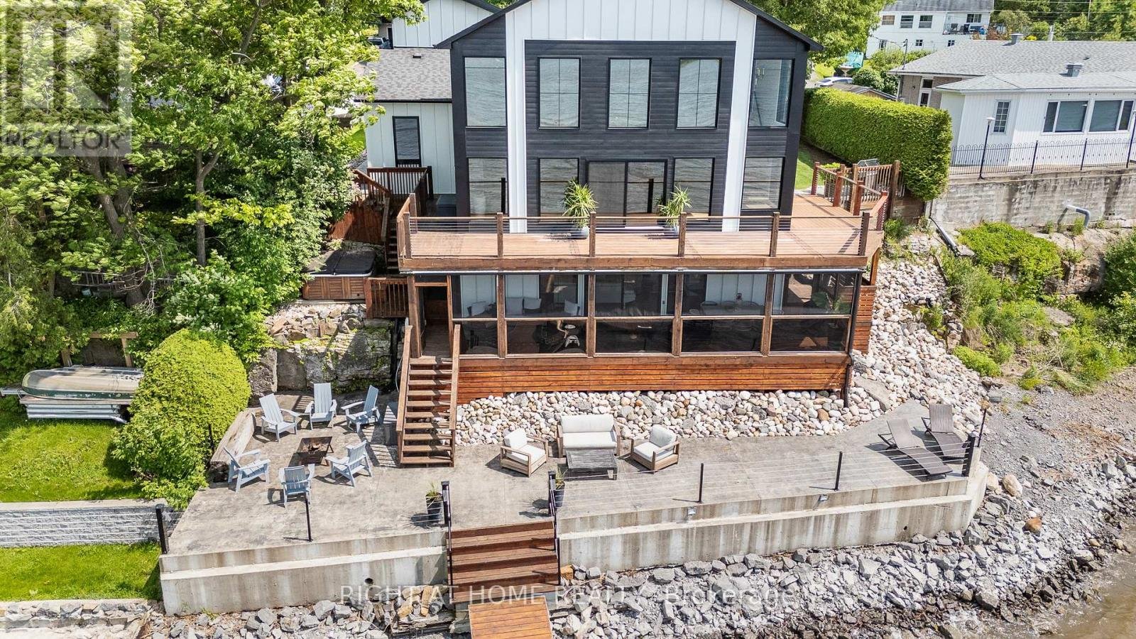 Welcome to 2120 Du Chateau Your Waterfront Dream Home! Experience breathtaking sunsets and stunning views of the Ottawa River from this absolutely gorgeous waterfront property. This elegant yet modern 3-bedroom, 3-bathroom home seamlessly blends luxury living with modern beauty. From the moment you arrive, the heated stamped concrete walkway sets the tone for the sophistication within. Step inside a spacious and bright foyer, thoughtfully designed with a cozy workspace nearby and provides direct access to the laundry/mudroom, which in turn gives access to a massive 42 x 25 heated garage perfect for storing toys with a 13 to 17 foot ceiling height. The entire second level is dedicated to the primary suite, boasting a spectacular wall of windows overlooking the water, a spacious walk-in closet, and a sleek 5-piece ensuite. On the main floor, the generous kitchen is a chef's delight, complete with a walk-in pantry and open concept design that flows effortlessly into the living and dining rooms. Both rooms feature a stretch ceiling which gives an added height effect and a wall of windows that open onto a full-width deck the perfect spot to enjoy your morning coffee or evening gatherings. Two additional bedrooms, a 3-piece bath, and a powder room complete the main level. The lower level offers a versatile family room with access to a screened-in porch, ideal for relaxing without worrying about mosquitoes. Located in a convenient in-town waterfront setting, this home perfectly combines modern luxury with the tranquility of nature. Don't miss the chance to own this spectacular retreat where every detail is designed for comfort and style. for additional pictures and 3D walkthrough click on the links below