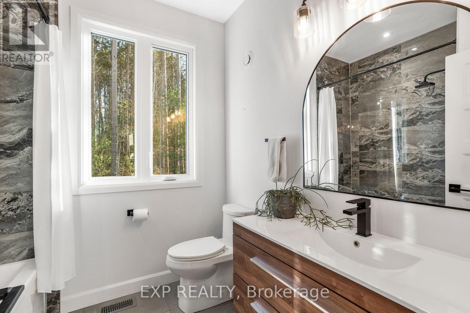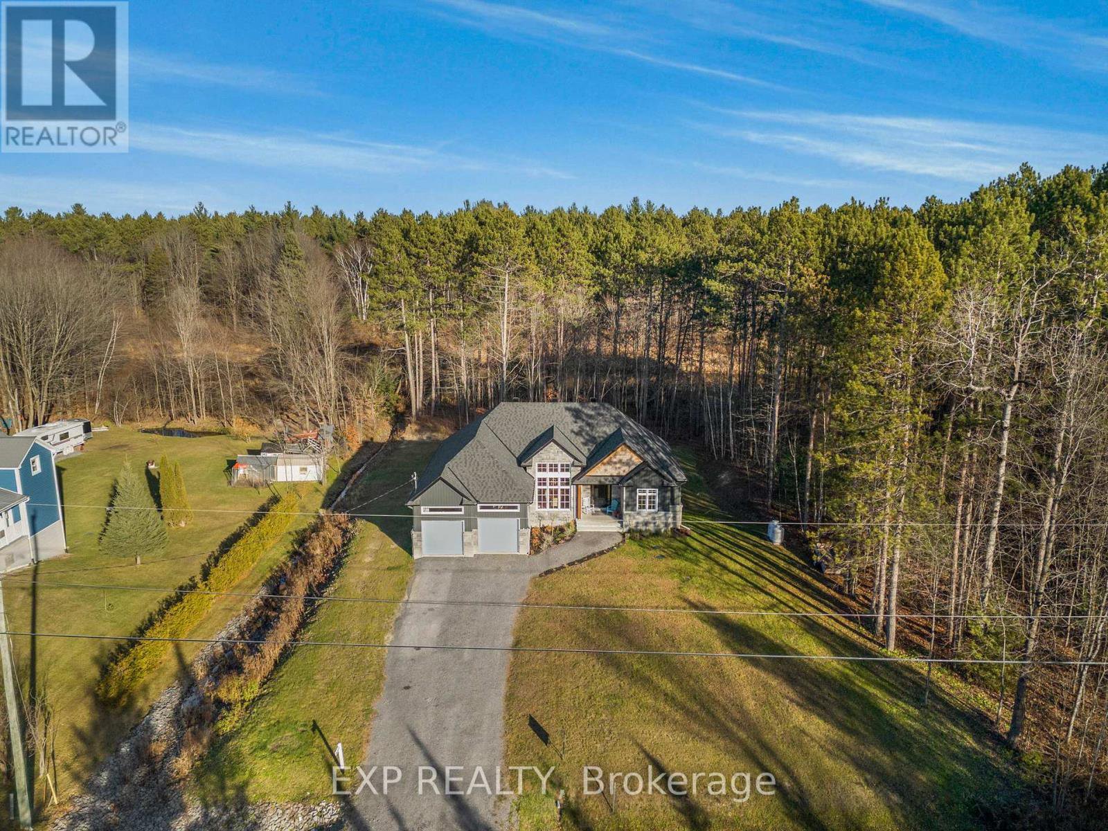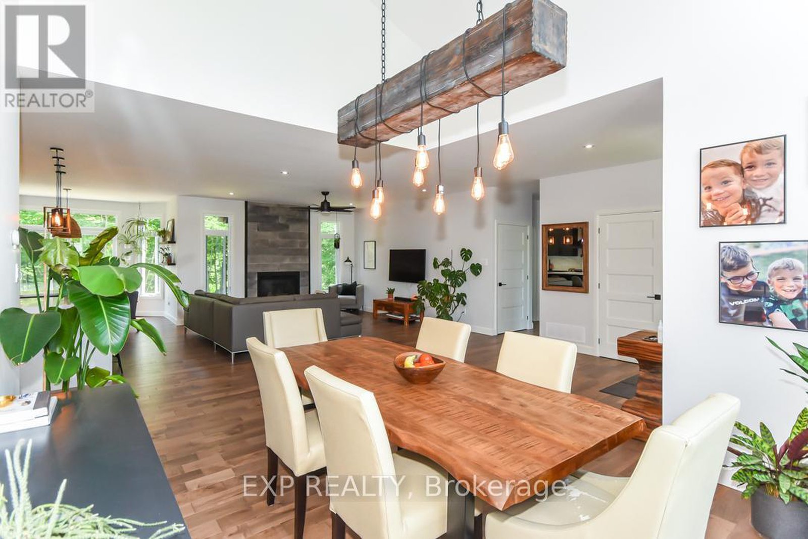 Welcome to Your 2023 Custom Dual-living Design home built Ideally for in-law suite or rental income! This stunning home is thoughtfully designed for extended family living, featuring two full master bedroom ensuites, each with their own kitchen and living areas one on each level! Step into the inviting foyer adorned with rich maple hardwood floors, leading to a sleek, modern kitchen with custom cabinetry, waterfall quartz countertops, a pantry, and a large island with seating perfect for gathering leading to upper deck. The dining area boasts soaring 14' vaulted ceilings, while the spacious living room features an eye-catching gas fireplace for cozy evenings. The main floor master suite is a private retreat, complete with heated floors, double sinks, a standalone soaker tub, and a walk-in shower. Two additional bedrooms on this level are generously sized and separated by a full family bathroom. Downstairs, the bright walk-out level includes the second master suite with its own bathroom & walk-in closet, a quaint second kitchen, a dining and living area with a second gas fireplace, a den, and ample storage space. Enjoy outdoor living, relaxing and entertaining in the private backyard offering; a shaded patio, firepit area, and mature trees backing onto neighboring property with Cobb's lake creek. Additional highlights: High-speed Bell Fibe internet. Extra insulation for enhanced energy efficiency. Charming small town community with top rated elementary school & park area. A rare and versatile home perfect for multi-generational families or those seeking income potential with in-law capabilities. Don't miss your chance to view this one-of-a-kind property! 24-hour irrevocable on all offers.