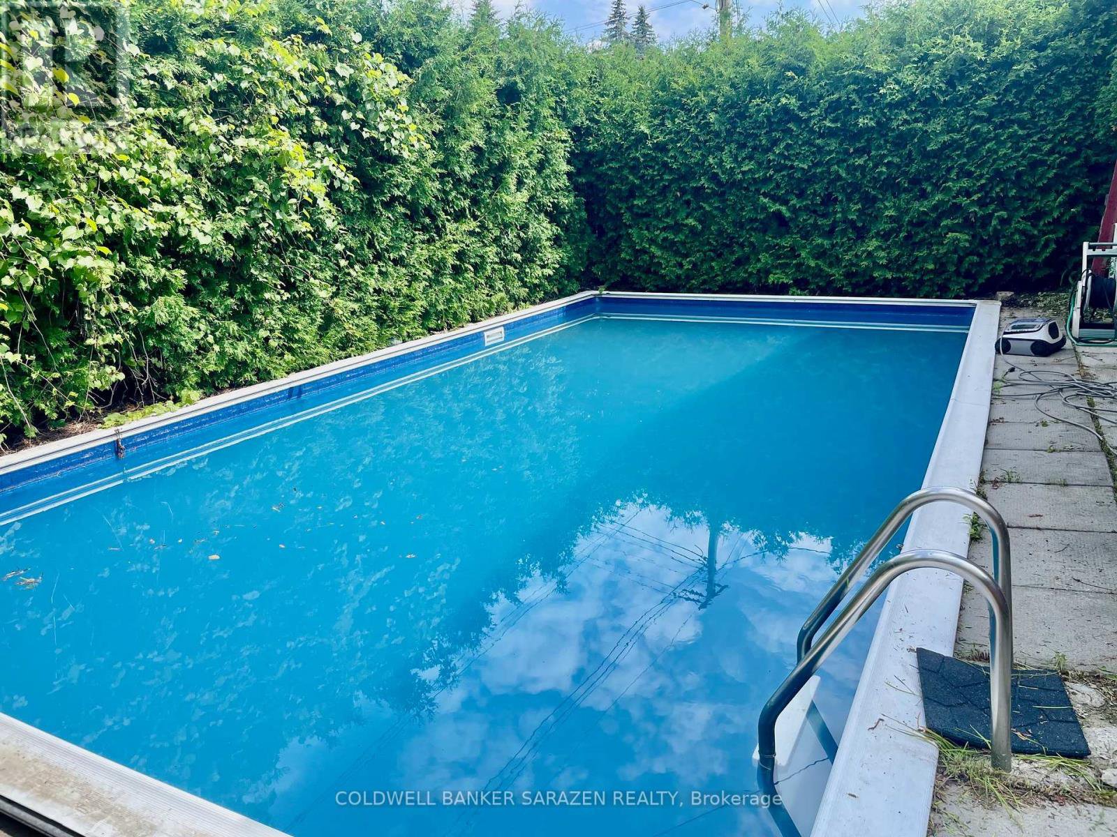 Grande 4 bdrm Bungalow with corner 70 ft lot, in ground pool, private back yard, floor to ceiling fireplace, huge front window, separate diningrm, newer main bathroom, 2nd bath in basement, recm, attach garage and fin bsmt. Bright and Spacious.