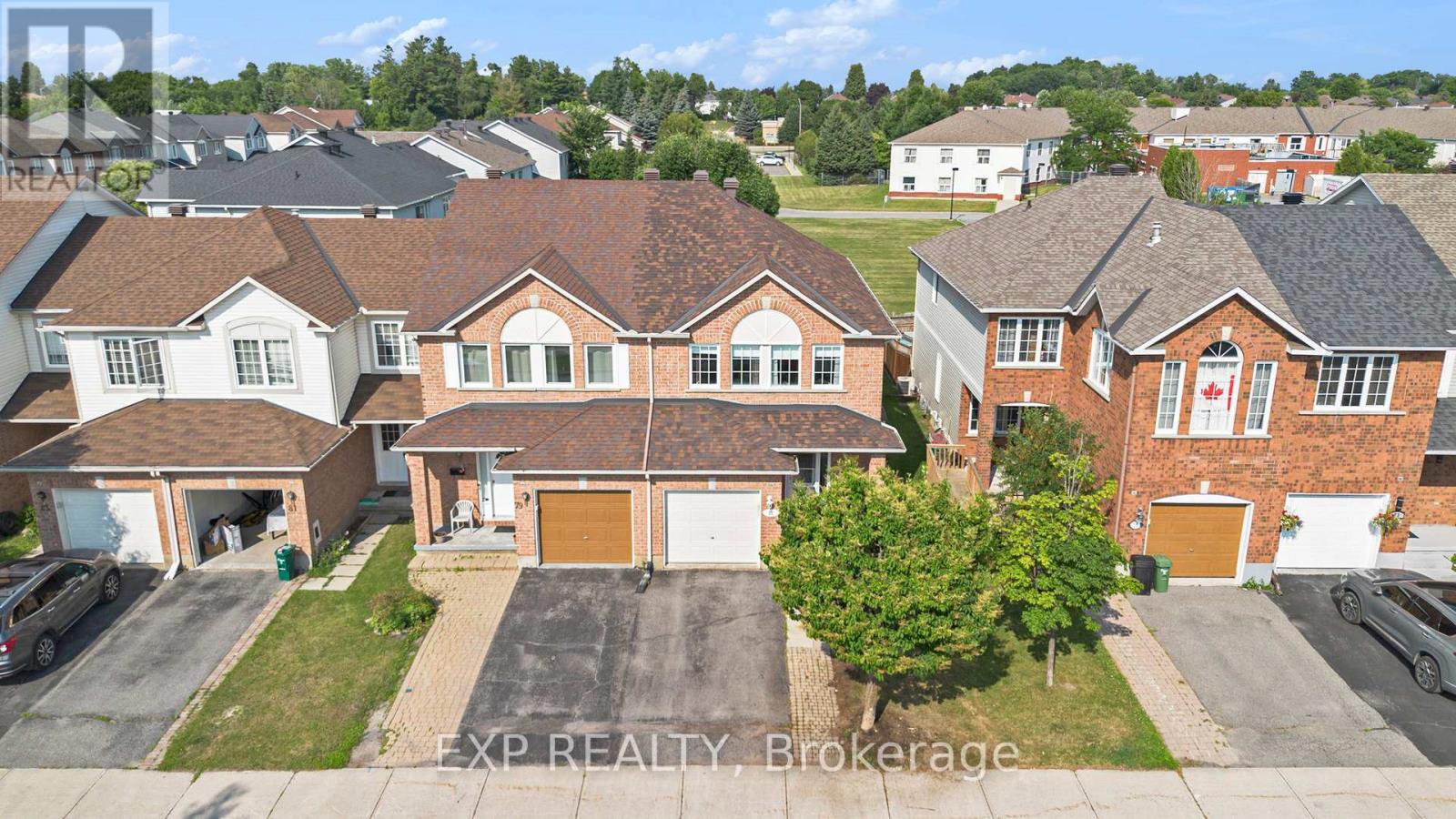 Welcome to 77 Palmadeo Drive, a Richcraft-built, rare End-unit townhouse on a premium lot with NO FRONT or REAR neighbours, offering exceptional privacy and over 1,950 sq ft of finished living space in the heart of Barrhaven. This beautifully maintained 3-bedroom, 3-bathroom home features a bright open-concept layout with hardwood floors, a cozy gas fireplace, and a modern kitchen with stainless steel appliances and ample cabinetry. The spacious primary bedroom offers a walk-in closet and a 4-piece ensuite, while the upper-level laundry adds everyday convenience. The fully finished basement includes a large recreation room and ample storage, ideal for entertaining or working from home. A 2021-installed home comfort system(includes Furnace, AC, Air Cleaner, Humidifier, and Thermostat) enhances comfort year-round. This is your opportunity to own an end-unit in a family-friendly neighbourhood with outstanding lot privacy.