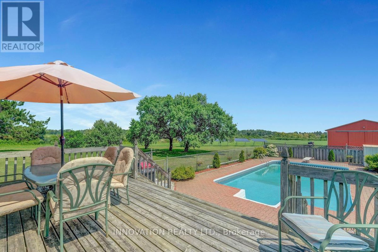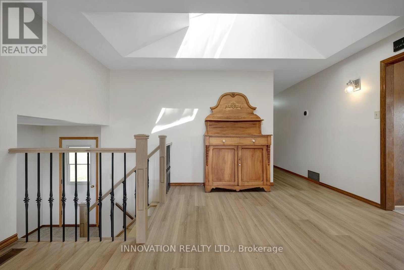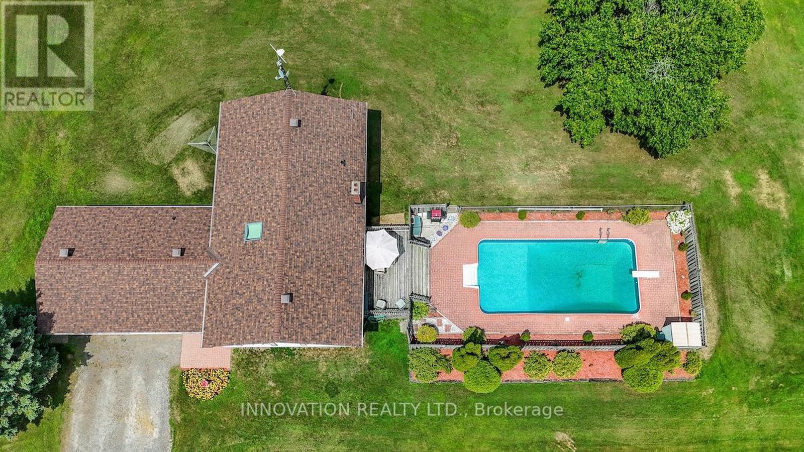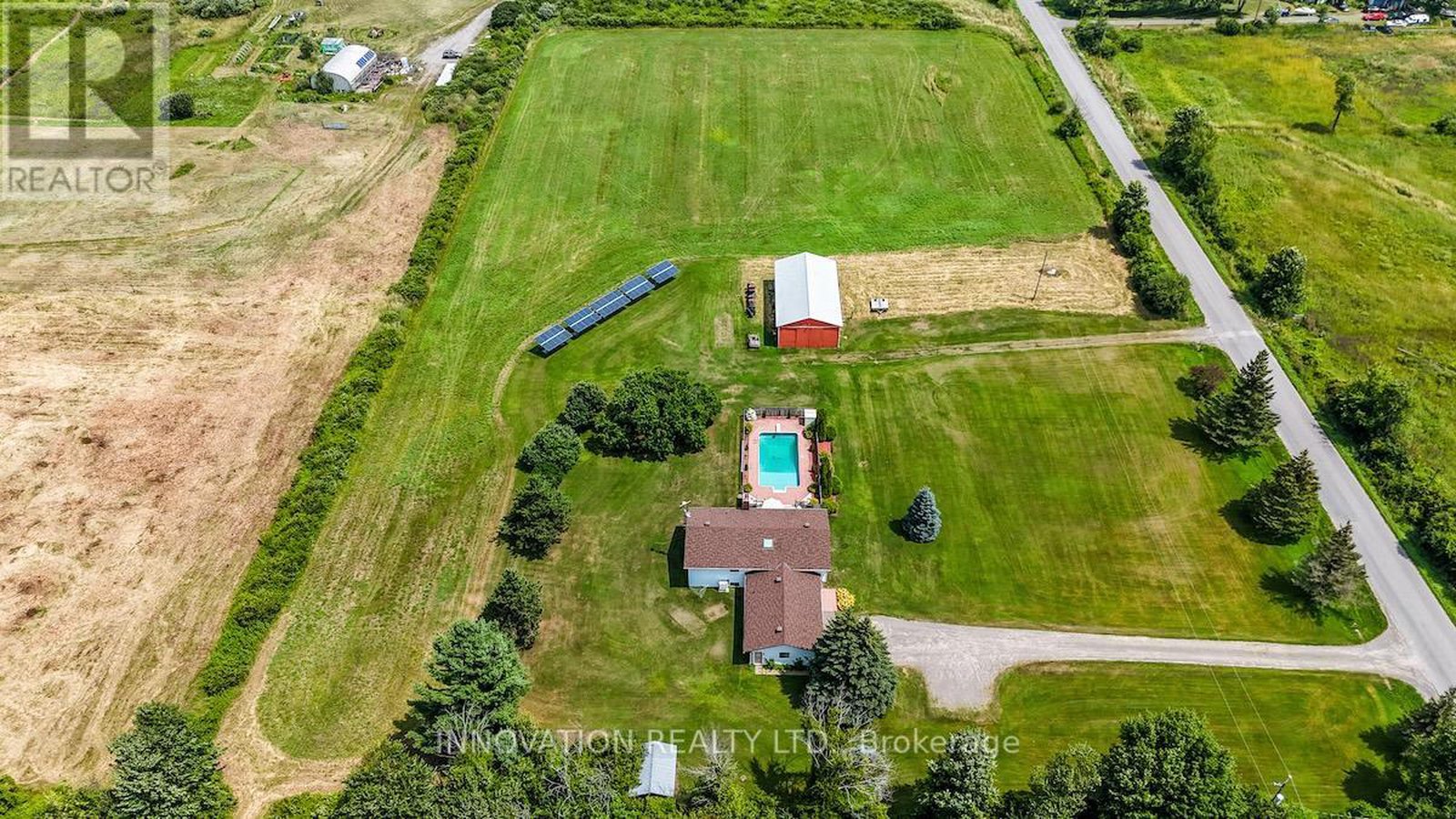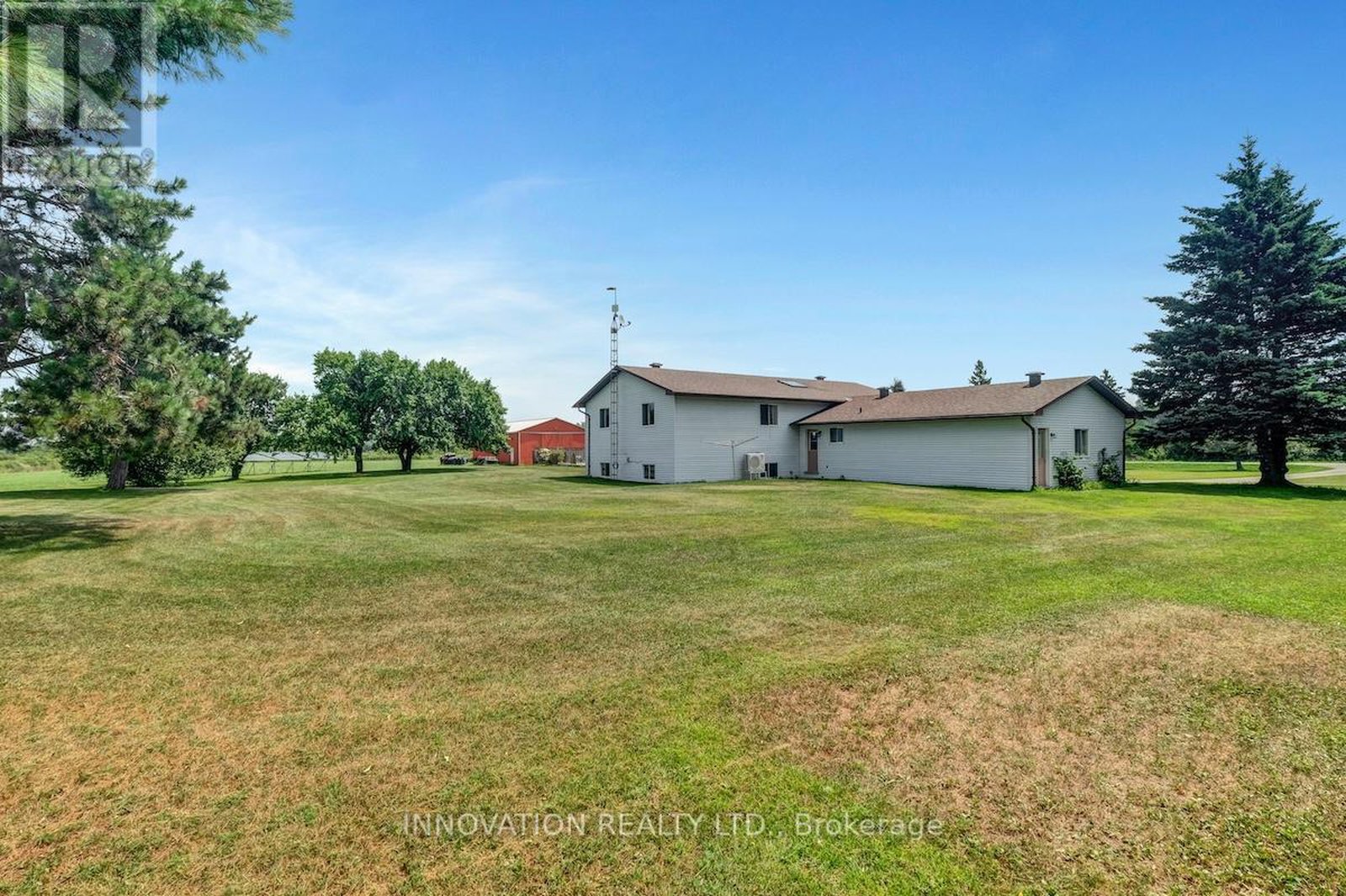 Welcome to this one-owner, custom-built raised brick bungalow, offering over 3,100 square feet of living space, perfectly situated on 6.5 acres of landscaped grounds w/mature trees, gardens & manicured lawns. Built in 1985 w/exceptional craftsmanship, this home is constructed w/solid floor joists on 12" centers, ensuring lasting durability. A spacious foyer w/dual closets & convenient half bath provide direct access to the backyard & oversized, insulated, heated double garage (23' x 22'). Upstairs, a bright open-concept living & dining room features vaulted ceilings & skylight that fills the space w/natural light. The large eat-in kitchen offers solid oak cabinetry & opens to a deck overlooking the expansive backyard. Three generously sized bedrooms & full 4-piece bath w/separate toilet & tub area complete this level. The lower level is designed for flexibility, w/fourth bedroom, extra-large family room, & dedicated laundry/storage area. Outdoors, enjoy summer in the fully fenced 18' x 36' in-ground pool, renovated in 23 & surrounded by an interlock patio. A massive 30' x 60' outbuilding w/its own driveway provides endless possibilities for contractors, hobbyists, or a home-based business, bonus additional 12' x 14' storage shed. A major highlight of this property is its solar panel system under the Ontario Hydro MicroFIT program, generating approximately $1,000 per month w/about 5 years remaining on the transferable contract (Buyer to confirm). Average hydro costs of just $250/month, the solar income significantly offsets household expenses making this not only a home, but also an exceptional investment opportunity. Recent updates include shingles (23), skylight (20), furnace & heat pump (24), as well as fresh paint, new laminate flooring in the main living areas (24). Located just 5 minutes south of Kemptville w/quick access to Highway 416, this property offers the perfect blend of peaceful country living, modern efficiency, & convenient city access.