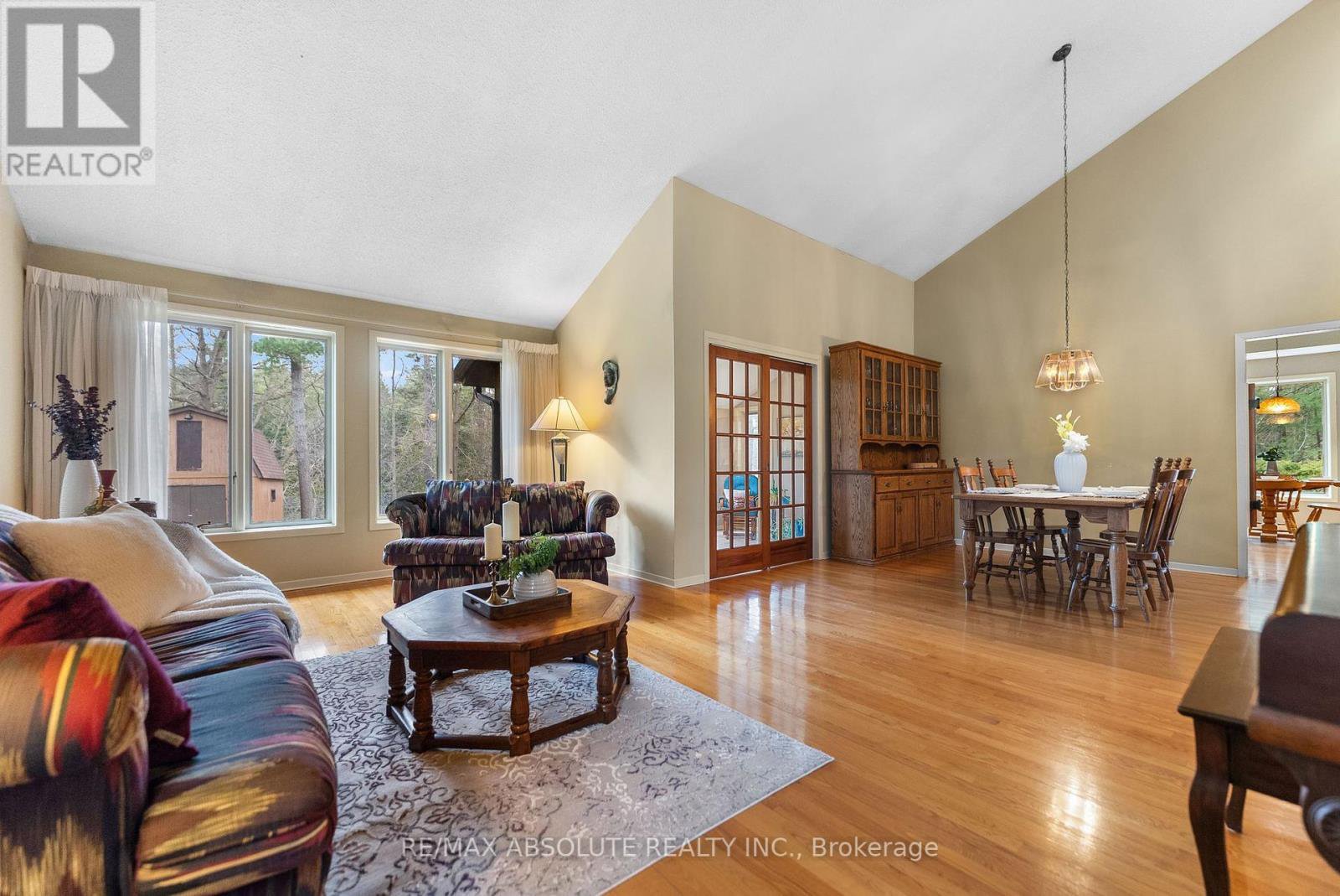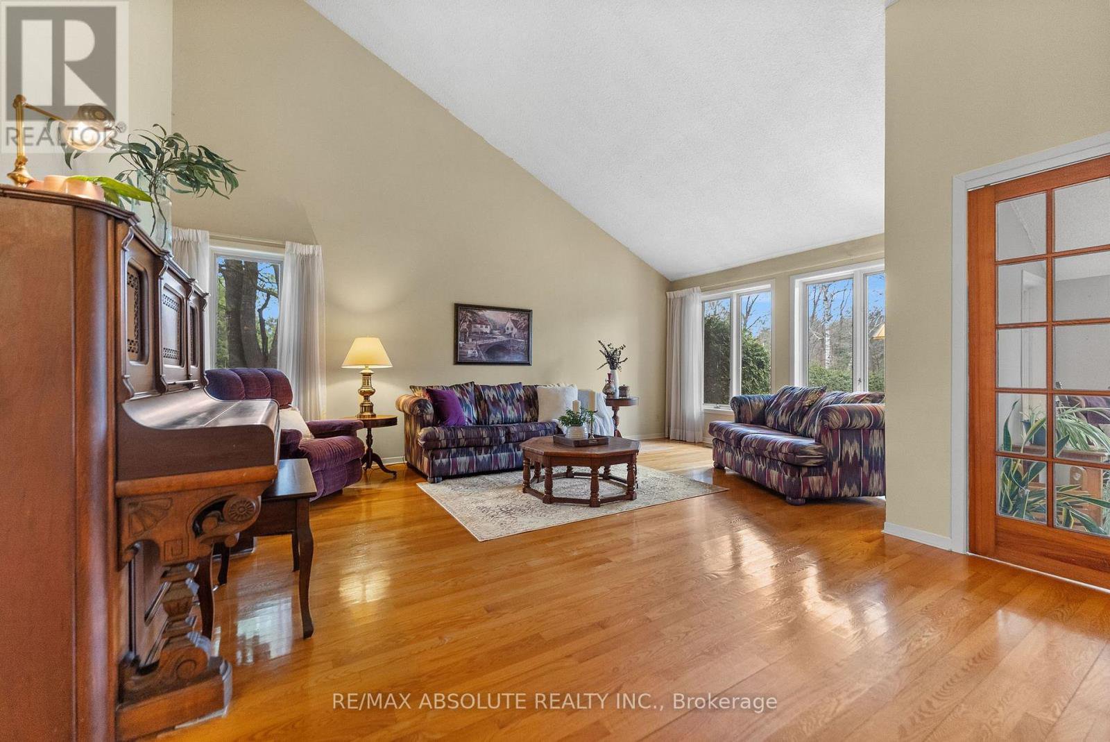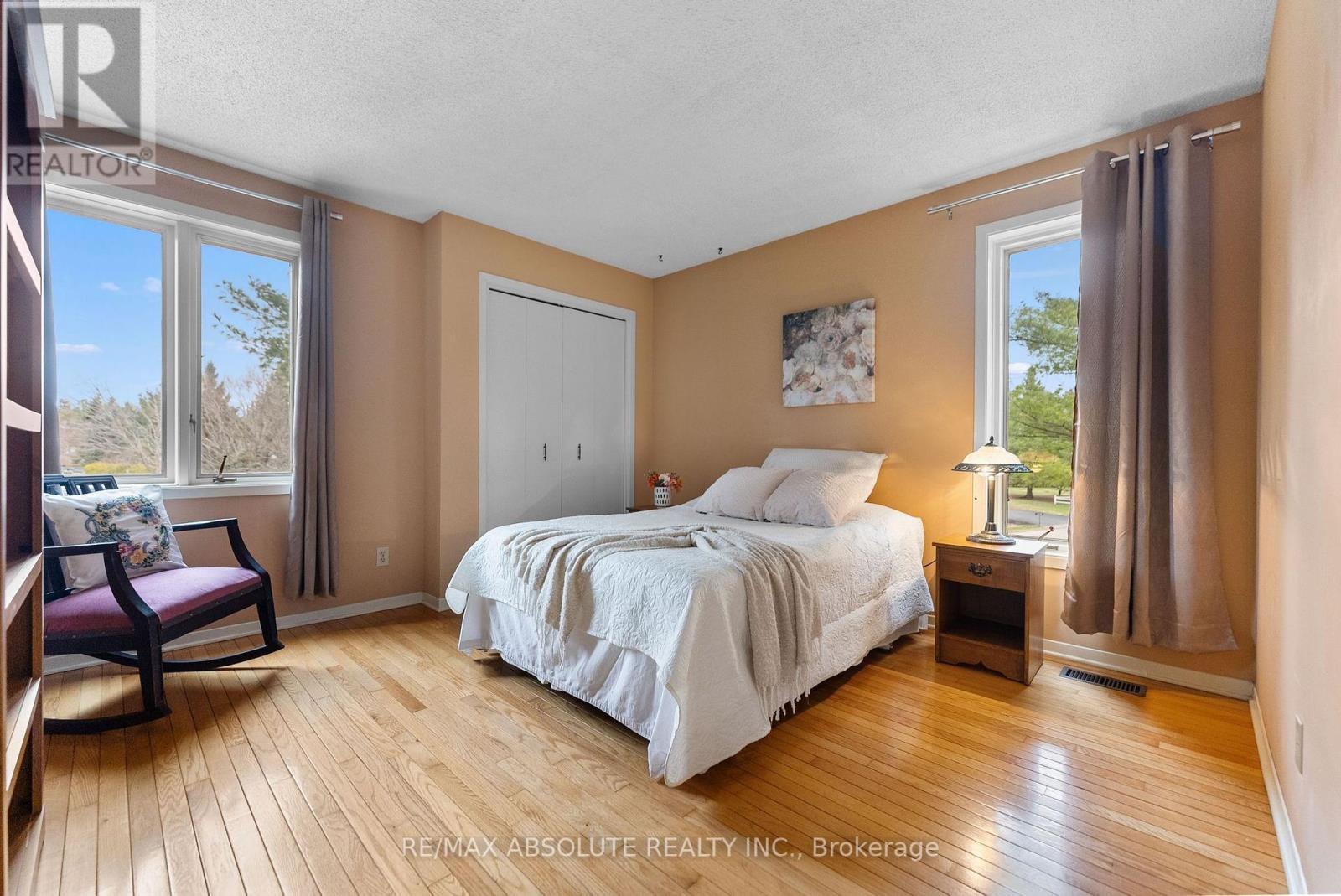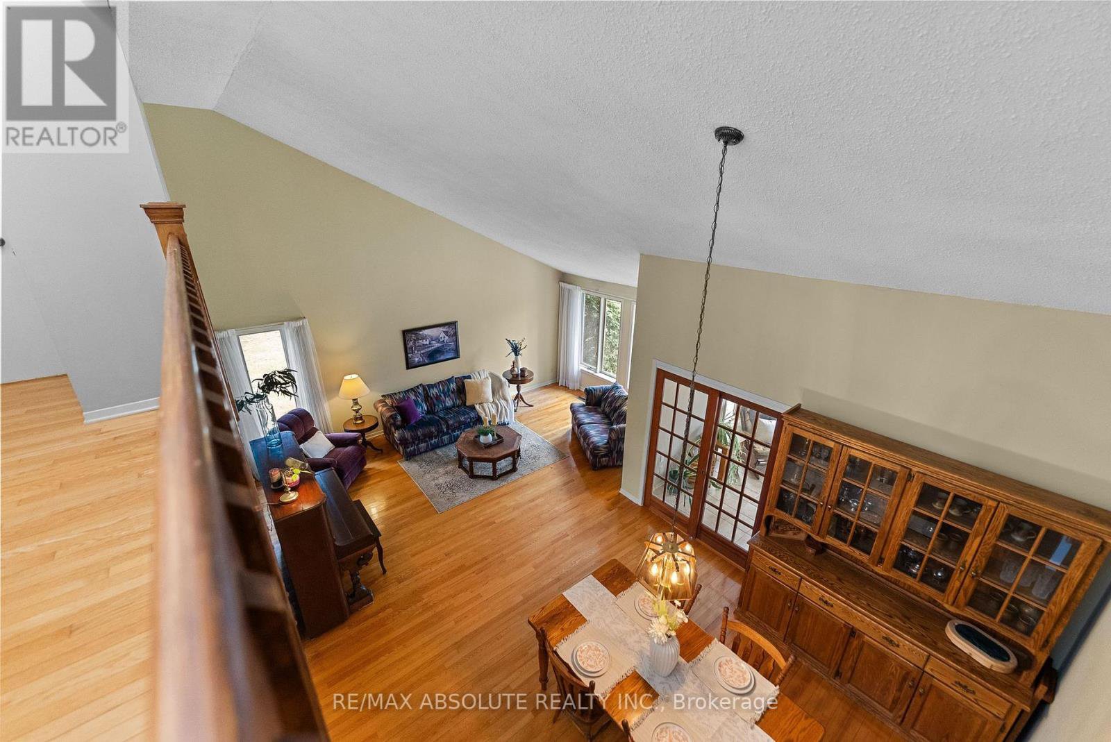Welcome to 33 Old Orchard Lane in highly sought after Old Orchard Estates!With warm wood siding that radiates rustic charm,this home blends beautifully into its natural setting overlooking the Dochart Creek.Inside you'll find spacious rooms throughout,perfect for comfortable living & entertaining.The main flr impresses with soaring cathedral ceilings,adding an airy & open feel to the heart of the home.A generous dining rm offers plenty of space for guests who can relax after dinner in the formal living rm.A main floor bedrm with full ensuite bath can be used as the primary or a granny or guest suite! 4 season sun room leads to a deck & the pool area bringing the outdoors in all year round!Cozy up in the family rm with corner gas fireplace...a gathering place next to the kitchen which offers lots of cupboards & counter space & includes appliances.Convenient main flr laundry/mud rm leads out to the pool with access to a 2 piece bath.Large primary bedrm with ensuite & lot's of closet space.Bedrooms 3 & 4 are a good size.Main bath on the second level with acrylic tub surround.Families will love the large rec rm with cozy natural gas stove & bar.....a great place to watch Hockey Night in Canada!An extra room with 2 closets, currently used as a work room could be a 5th bedroom.Extra plumbing & sinks in a small basemt rm could convert to a 2nd kitchen = potential for a secondary suite.Large private yard with majestic pine trees & beautiful landscaping.A large L-shaped pool has a new liner and is ready for family fun! Family fun continues at the end of Sunshine Lane where the owners of this subdivision share a large waterfront lot on the Ottawa River complete with sandy beach.A pool & a beach....the best of both worlds !Just on the edge of town & an easy 35 minute commute to Kanata.Enjoy all the amenities of Arnprior.....movie theatre,shopping,great restaurants,parks,beach,Nick Smith Centre,museum & a highly accredited hospital!