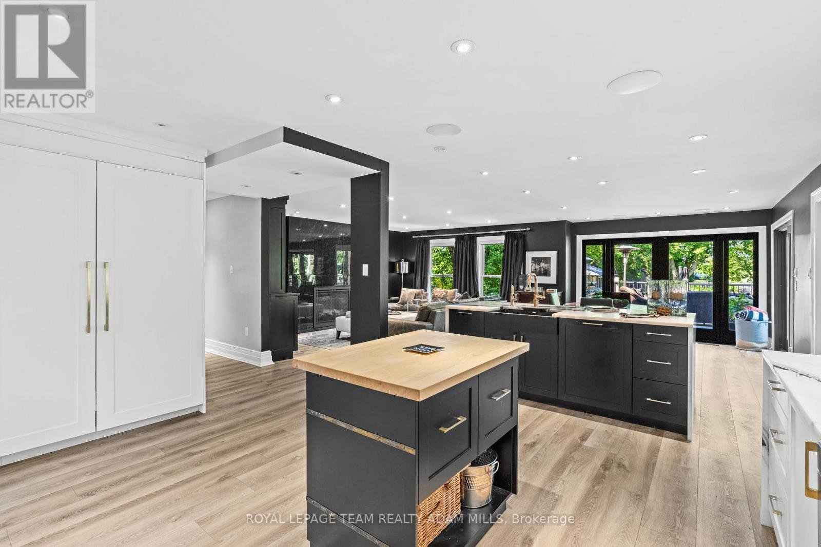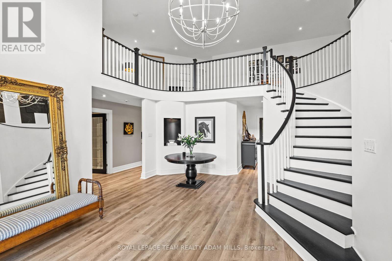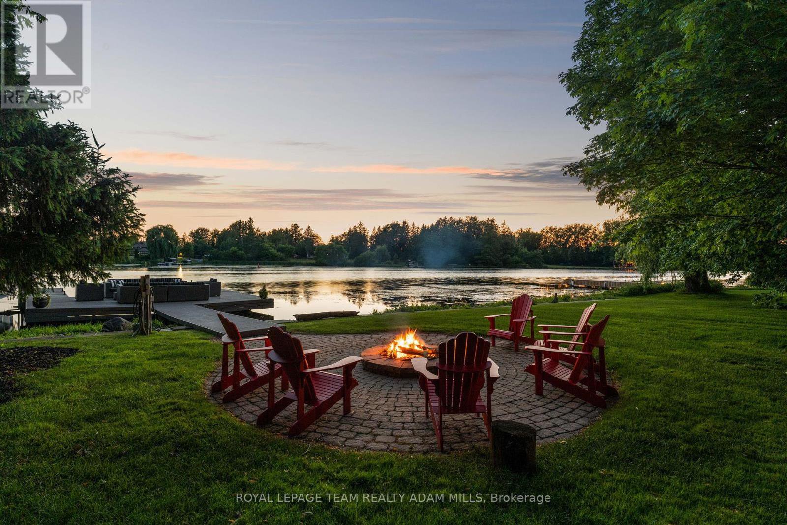 Luxury Waterfront Oasis in Prestigious Manotick. Extensively renovated and impeccably designed, this waterfront estate offers the ultimate in luxury and resort-style living in one of Manotick's most exclusive neighbourhoods. Nestled on a private, landscaped lot with expansive riverfront sightlines, this showpiece home spans over 5,000 sq. ft. of beautifully curated space. Inside, the reimagined layout features 5 bedrooms, 4 bathrooms, a grand living room with gas fireplace, formal dining area, and a designer kitchen with premium appliances, oversized island, and hidden butlers pantry. A spacious family room and private office provide the perfect balance of everyday comfort and elevated style. Upstairs, the primary suite is a true retreat with a sitting area, custom walk-in closet, and spa-like ensuite with freestanding tub and glass shower. Four additional bedrooms include two with walk-in closets, one with a private ensuite, and another with cheater ensuite access-ideal for guests, family, or a nanny/in-law setup. Step outside to your own private resort: a saltwater inground pool, custom gazebo with hot tub, sauna, fire pit, and full outdoor kitchen with built-in BBQ. At the waters edge, enjoy a large entertainers dock with power hookup, covered boat lift, rock retaining wall shoreline, and your own sandy beach. Offering unmatched privacy, craftsmanship, and lifestyle-this rare waterfront gem is your chance to own one of Ottawa's most coveted luxury properties.