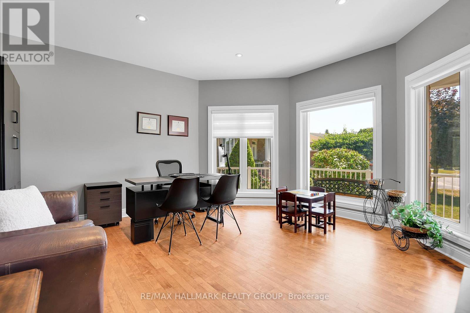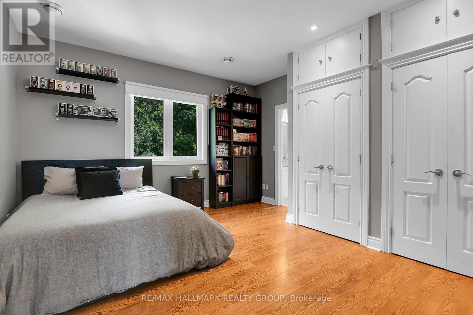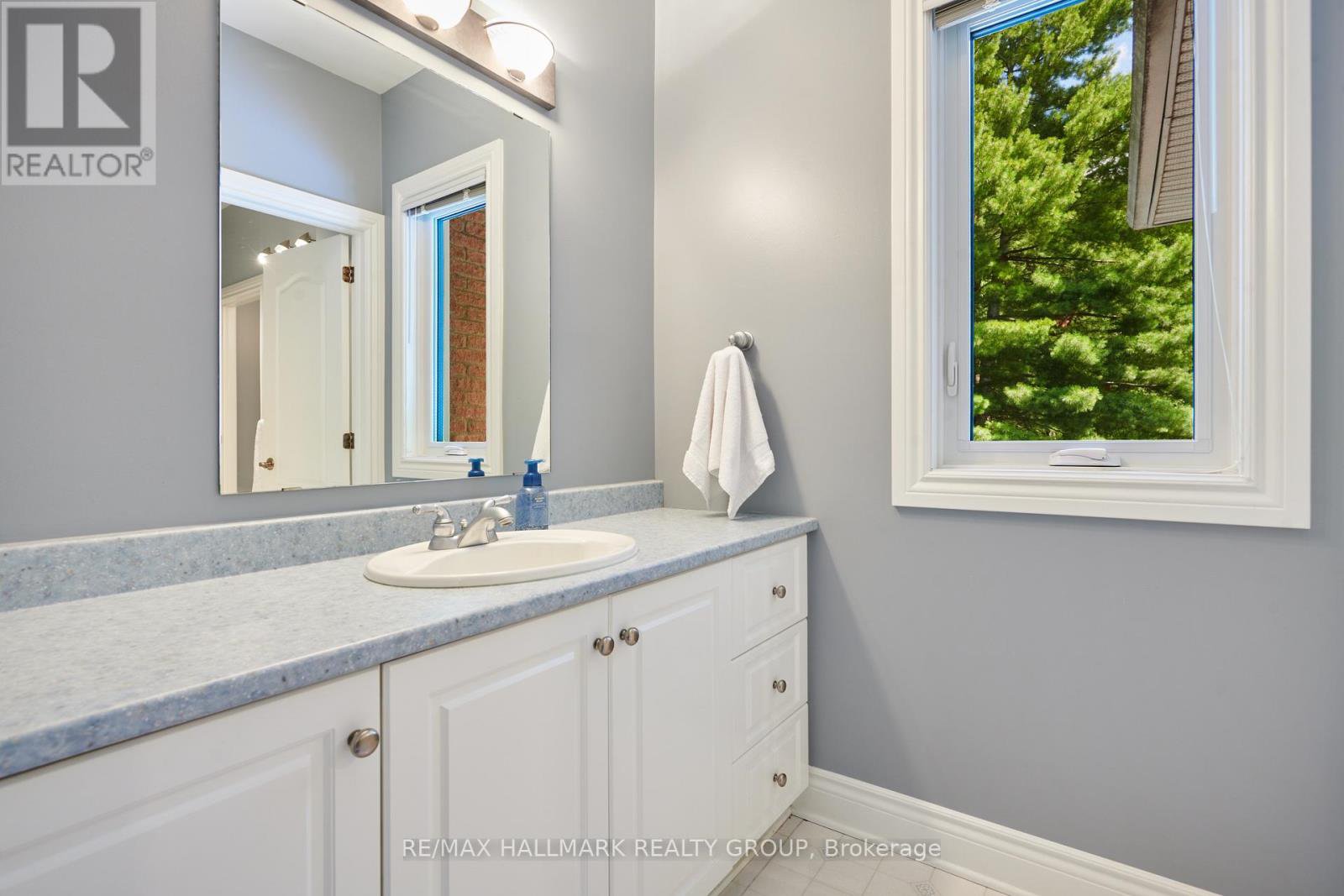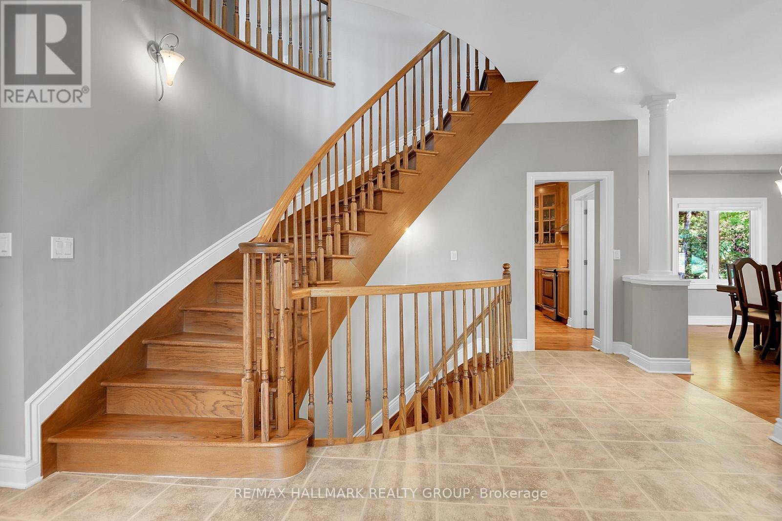 This RARE & impressive custom-built 4 + 2 bedroom executive home, nestled in a tranquil cul-de-sac on the ravine, offers abundance of space & privacy. UNIQUE FEATURES | rich hardwood flooring on main & 2nd level & 2 curved stairways, high ceilings, Serenity Shades, all above-ground bedrooms have direct connections to bathrooms, extended built-in storage cubbies above closets, gas f/p between primary & en-suite, in-floor radiant heat in basement & primary en-suite, direct access to basement from garage, fully fenced yard with composite deck backing onto 34m of ravine. THOUGHTFUL DESIGN | spacious & versatile living space, vestibule opens onto foyer showcasing the curved oak stairway, formal 'tower' living room with privacy doors (currently an office) then onto the separate dining area. The vast open-concept kitchen, eating area & family room with freestanding gas stove is perfect for hosting larger events or can be converted to a quiet space for more intimate dinner parties, by 3 privacy doors. A segregated powder room & laundry/mudroom complete the main floor. The 2nd level boasts a spacious primary plus 3 large bedrooms (2 with private sinks & link to Jack-and-Jill bath, and 1 with cheater to main full bath) and a den or possible nursery. The spacious primary bedroom looks onto the peaceful backyard & enjoys a 2 sided gas f/p shared with the en-suite with walk-in closet, double sink vanity, glass shower & step up 2-person bathtub. The basement provides even more flexibility with 2.65m ceilings, in-floor radiant heat, recreation/theatre room, 2 bedrooms (1 is currently an office), 3pc. bathroom, bonus room (currently a gym), cold room & storage. See attached 'Highlights' for more. COVETED LOCATION | Situated on one of the most sought-after streets in the middle of Orleans. Walk to schools, parks, transit, Innes Rd. shopping corridor. Quick drive/bike to Place D'Orleans, Landmark Cinemas, Ray Friel Sports Complex, Shenkman Arts Centre & amenities. Easy hwy access.