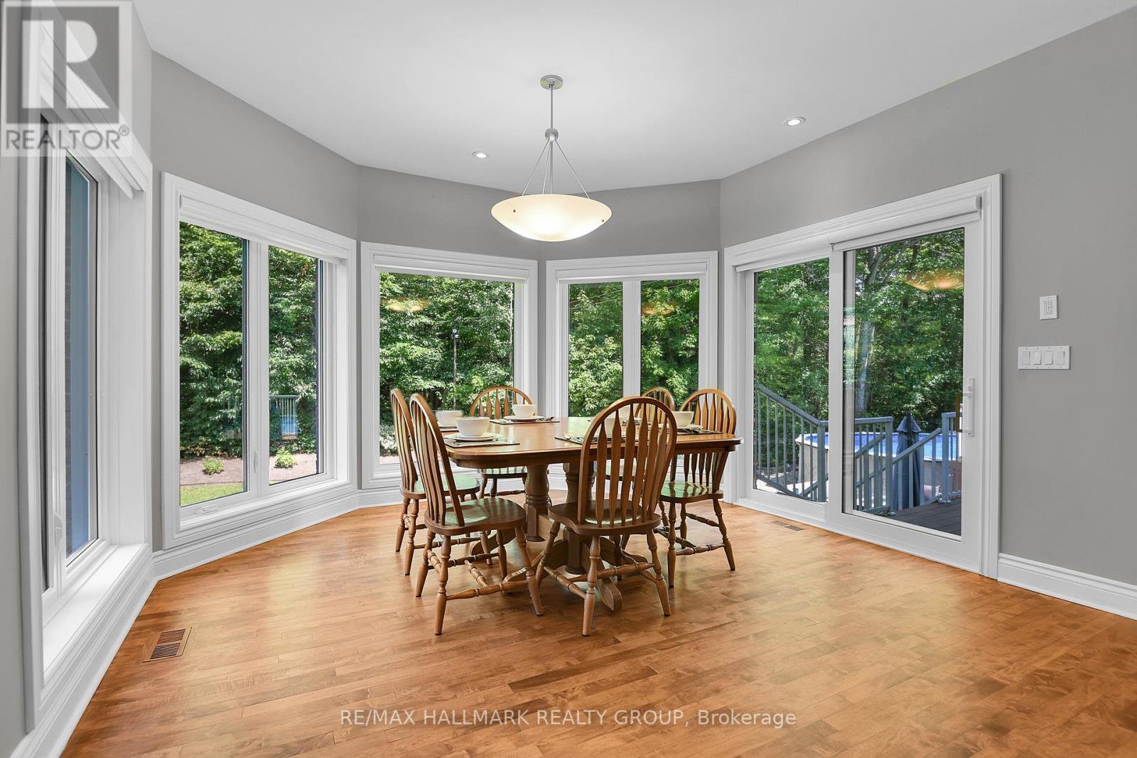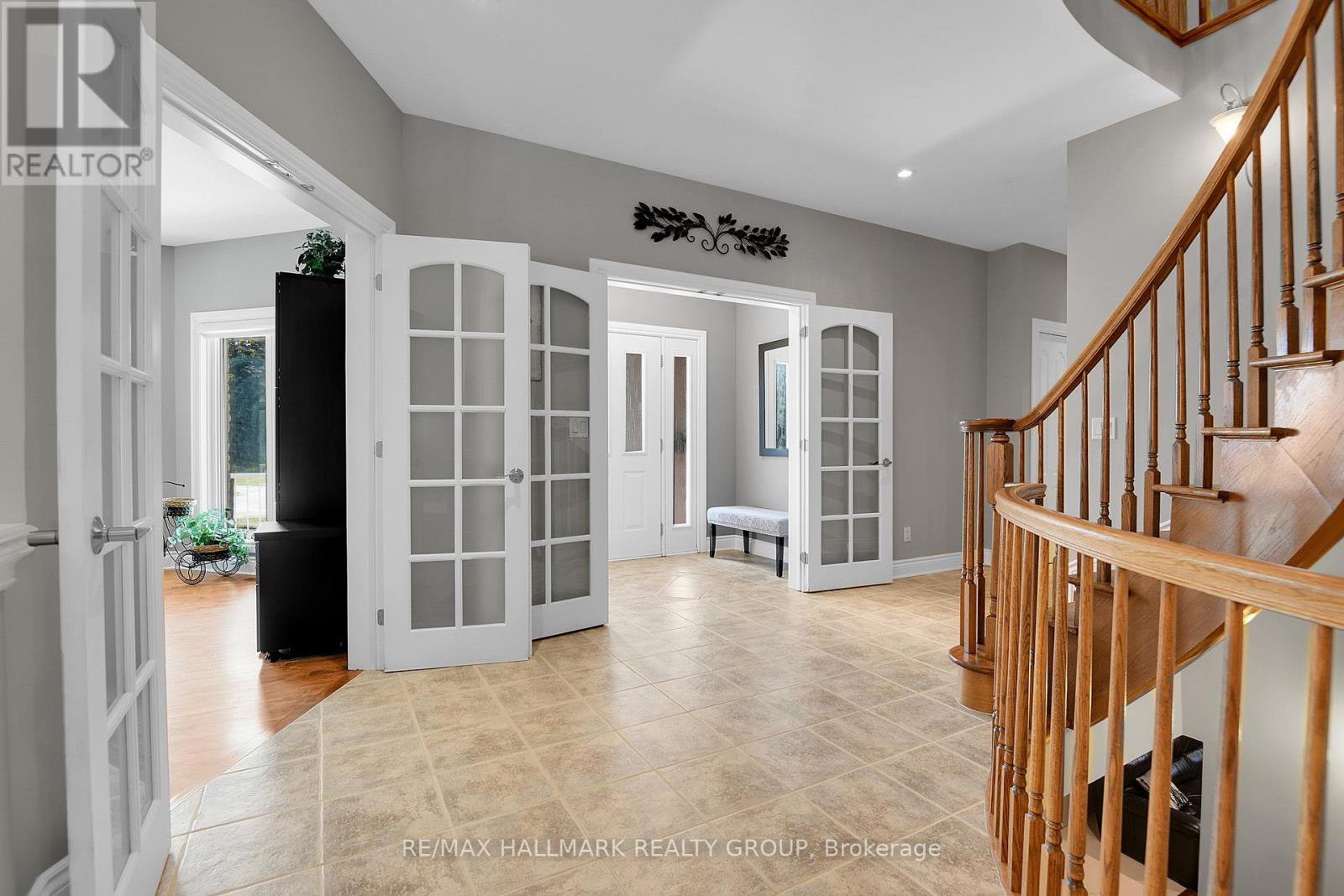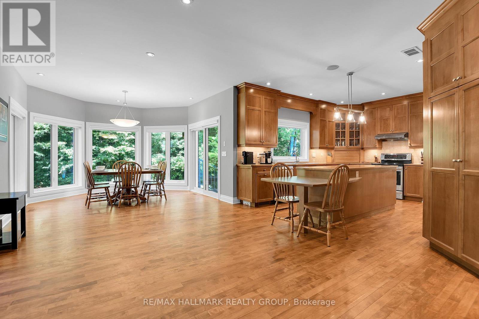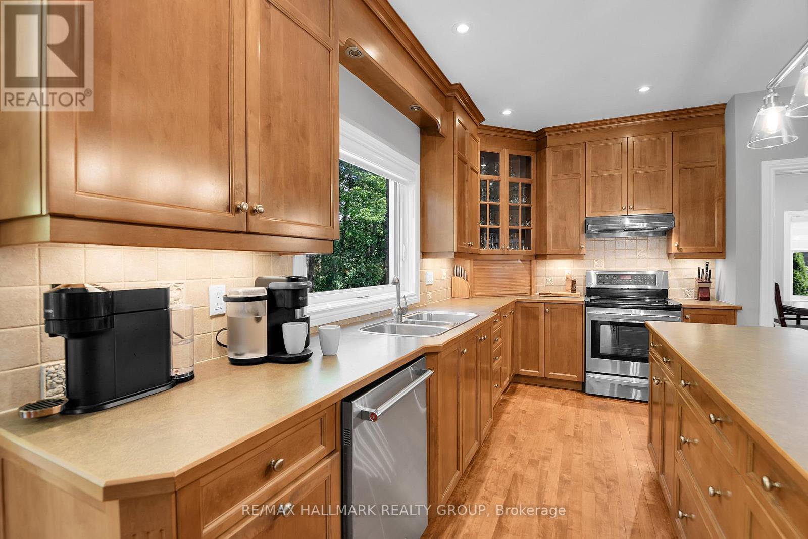 This RARE & impressive custom-built 4 + 2 bedroom executive home, nestled in a tranquil cul-de-sac on the ravine, offers abundance of space & privacy. UNIQUE FEATURES | rich hardwood flooring on main & 2nd level & 2 curved stairways, high ceilings, Serenity Shades, all above-ground bedrooms have direct connections to bathrooms, extended built-in storage cubbies above closets, gas f/p between primary & en-suite, in-floor radiant heat in basement & primary en-suite, direct access to basement from garage, fully fenced yard with composite deck backing onto 34m of ravine. THOUGHTFUL DESIGN | spacious & versatile living space, vestibule opens onto foyer showcasing the curved oak stairway, formal 'tower' living room with privacy doors (currently an office) then onto the separate dining area. The vast open-concept kitchen, eating area & family room with freestanding gas stove is perfect for hosting larger events or can be converted to a quiet space for more intimate dinner parties, by 3 privacy doors. A segregated powder room & laundry/mudroom complete the main floor. The 2nd level boasts a spacious primary plus 3 large bedrooms (2 with private sinks & link to Jack-and-Jill bath, and 1 with cheater to main full bath) and a den or possible nursery. The spacious primary bedroom looks onto the peaceful backyard & enjoys a 2 sided gas f/p shared with the en-suite with walk-in closet, double sink vanity, glass shower & step up 2-person bathtub. The basement provides even more flexibility with 2.65m ceilings, in-floor radiant heat, recreation/theatre room, 2 bedrooms (1 is currently an office), 3pc. bathroom, bonus room (currently a gym), cold room & storage. See attached 'Highlights' for more. COVETED LOCATION | Situated on one of the most sought-after streets in the middle of Orleans. Walk to schools, parks, transit, Innes Rd. shopping corridor. Quick drive/bike to Place D'Orleans, Landmark Cinemas, Ray Friel Sports Complex, Shenkman Arts Centre & amenities. Easy hwy access.