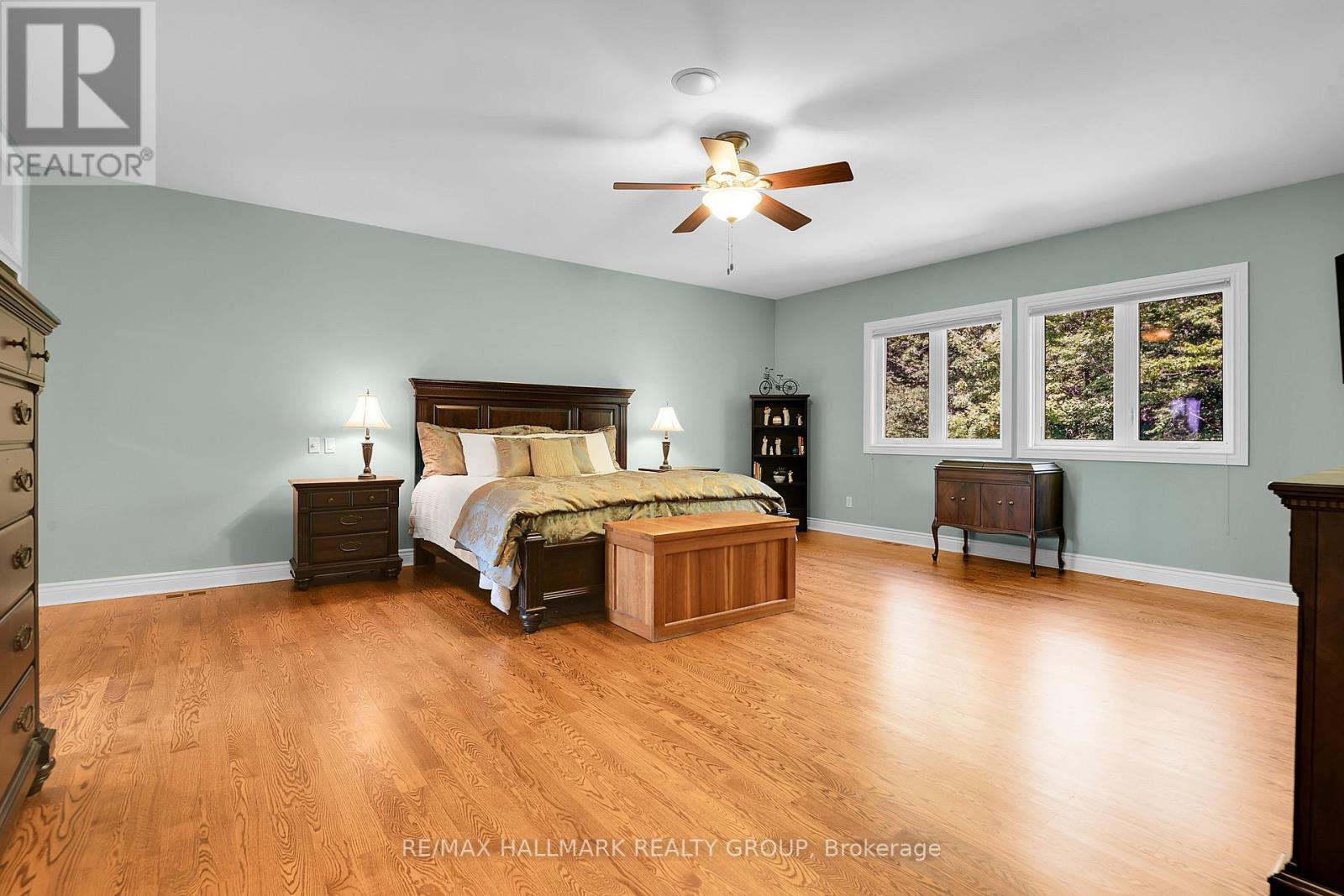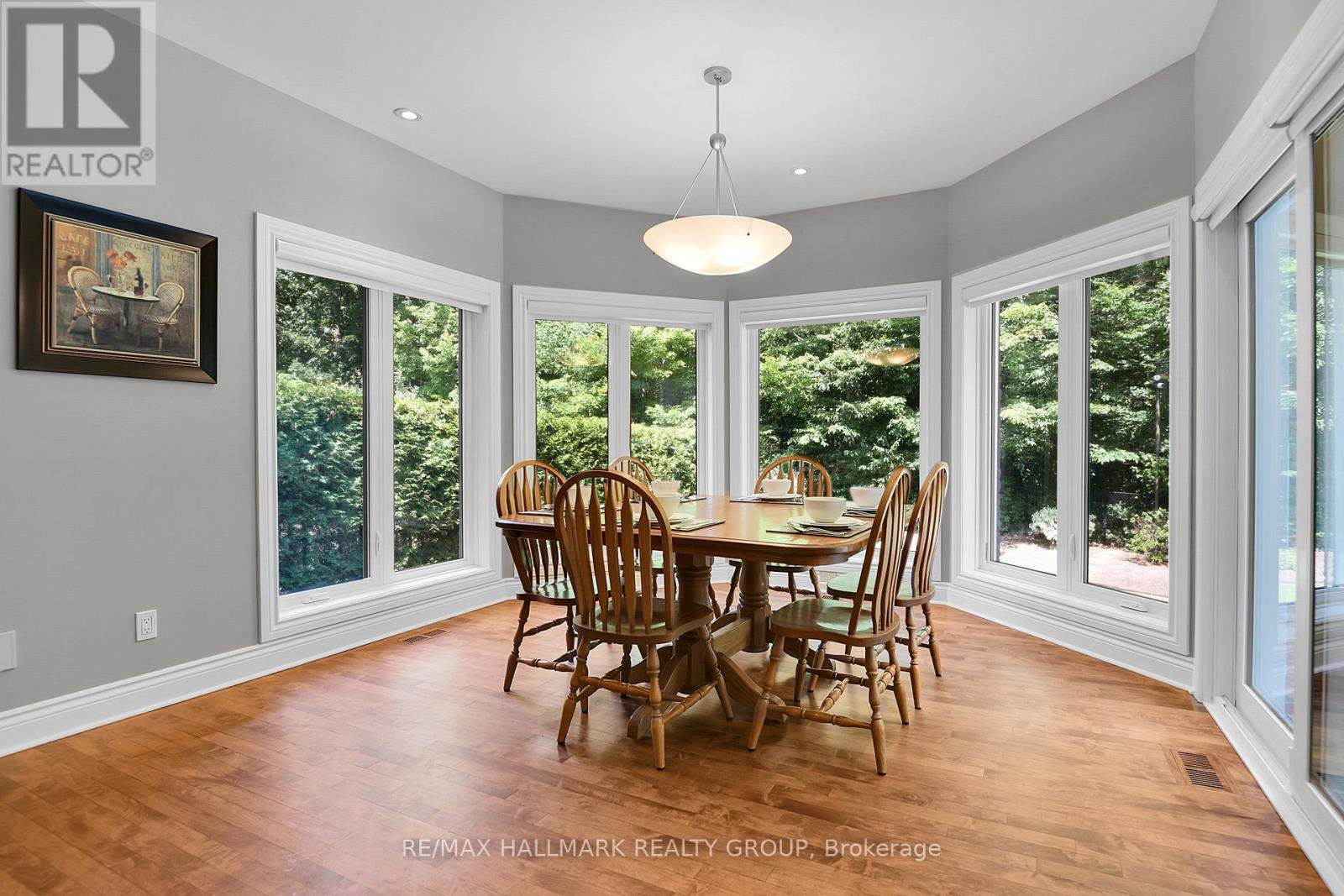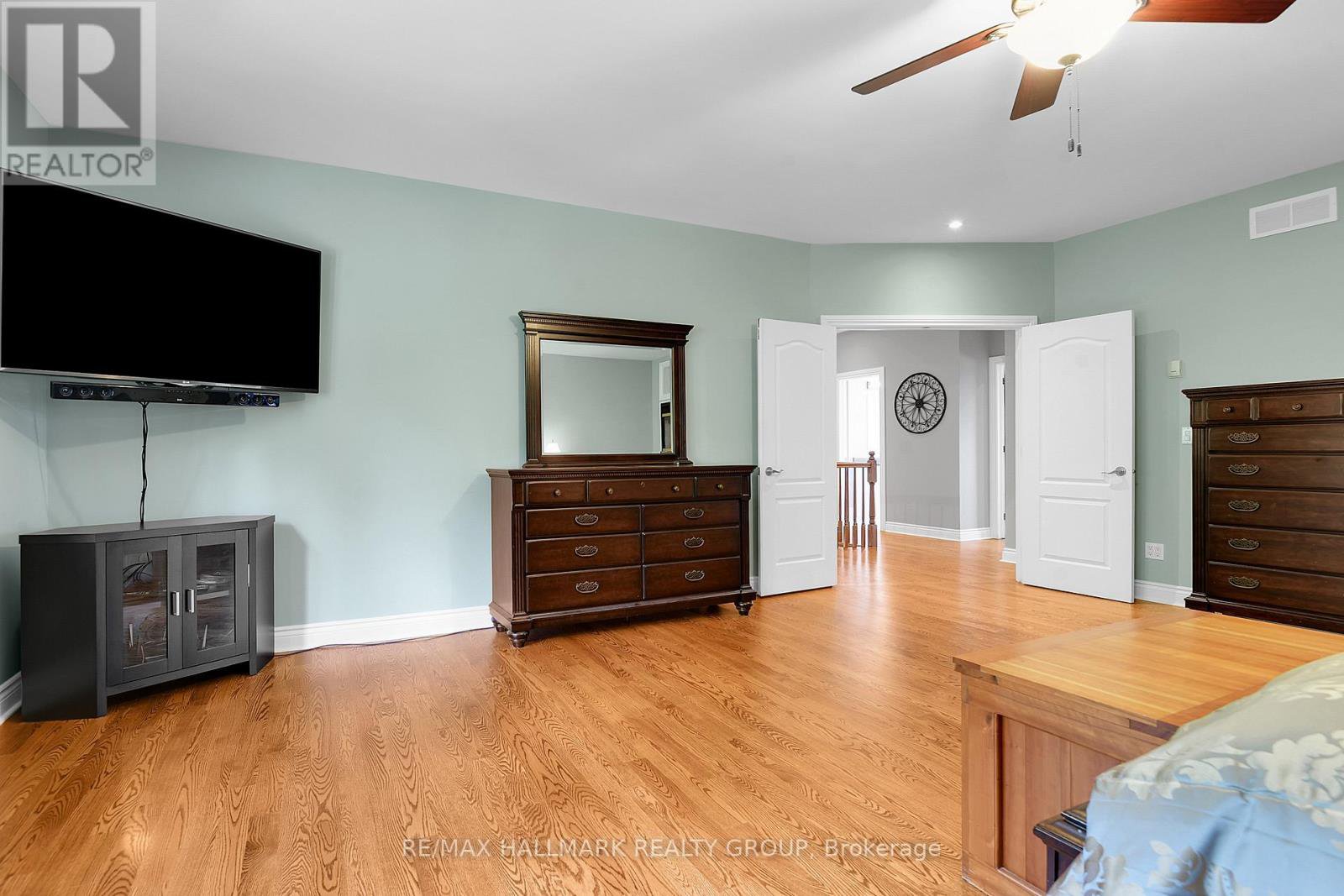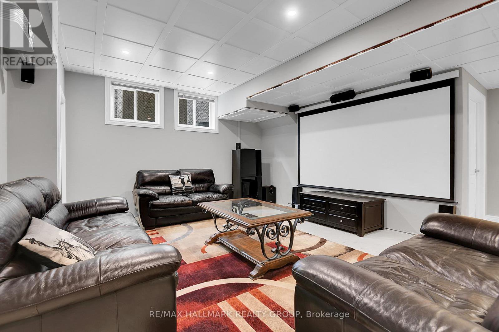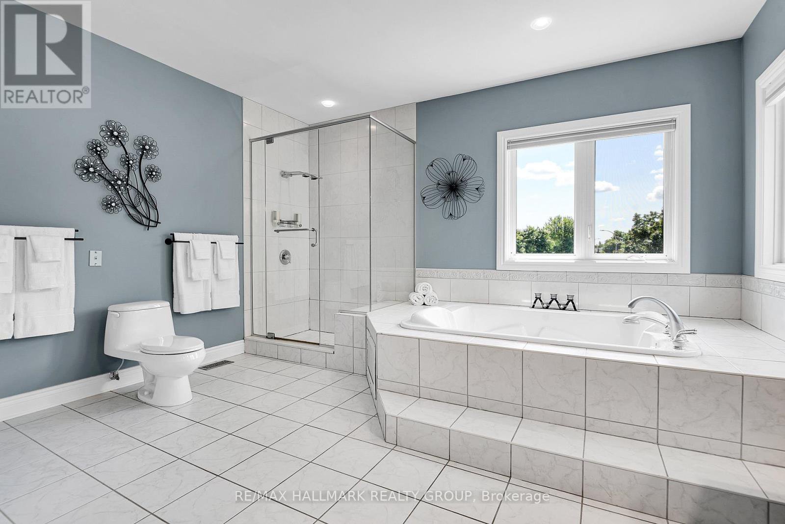 This RARE & impressive custom-built 4 + 2 bedroom executive home, nestled in a tranquil cul-de-sac on the ravine, offers abundance of space & privacy. UNIQUE FEATURES | rich hardwood flooring on main & 2nd level & 2 curved stairways, high ceilings, Serenity Shades, all above-ground bedrooms have direct connections to bathrooms, extended built-in storage cubbies above closets, gas f/p between primary & en-suite, in-floor radiant heat in basement & primary en-suite, direct access to basement from garage, fully fenced yard with composite deck backing onto 34m of ravine. THOUGHTFUL DESIGN | spacious & versatile living space, vestibule opens onto foyer showcasing the curved oak stairway, formal 'tower' living room with privacy doors (currently an office) then onto the separate dining area. The vast open-concept kitchen, eating area & family room with freestanding gas stove is perfect for hosting larger events or can be converted to a quiet space for more intimate dinner parties, by 3 privacy doors. A segregated powder room & laundry/mudroom complete the main floor. The 2nd level boasts a spacious primary plus 3 large bedrooms (2 with private sinks & link to Jack-and-Jill bath, and 1 with cheater to main full bath) and a den or possible nursery. The spacious primary bedroom looks onto the peaceful backyard & enjoys a 2 sided gas f/p shared with the en-suite with walk-in closet, double sink vanity, glass shower & step up 2-person bathtub. The basement provides even more flexibility with 2.65m ceilings, in-floor radiant heat, recreation/theatre room, 2 bedrooms (1 is currently an office), 3pc. bathroom, bonus room (currently a gym), cold room & storage. See attached 'Highlights' for more. COVETED LOCATION | Situated on one of the most sought-after streets in the middle of Orleans. Walk to schools, parks, transit, Innes Rd. shopping corridor. Quick drive/bike to Place D'Orleans, Landmark Cinemas, Ray Friel Sports Complex, Shenkman Arts Centre & amenities. Easy hwy access.