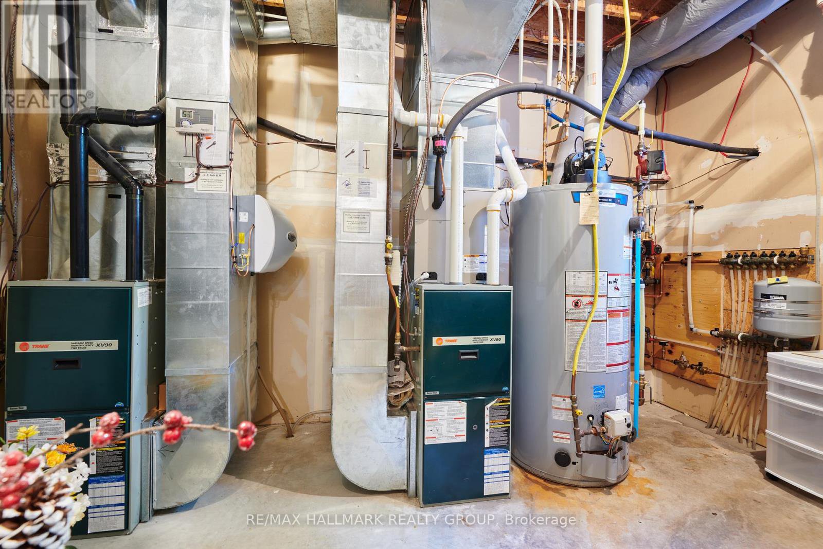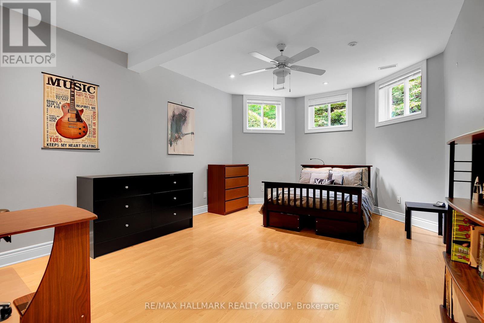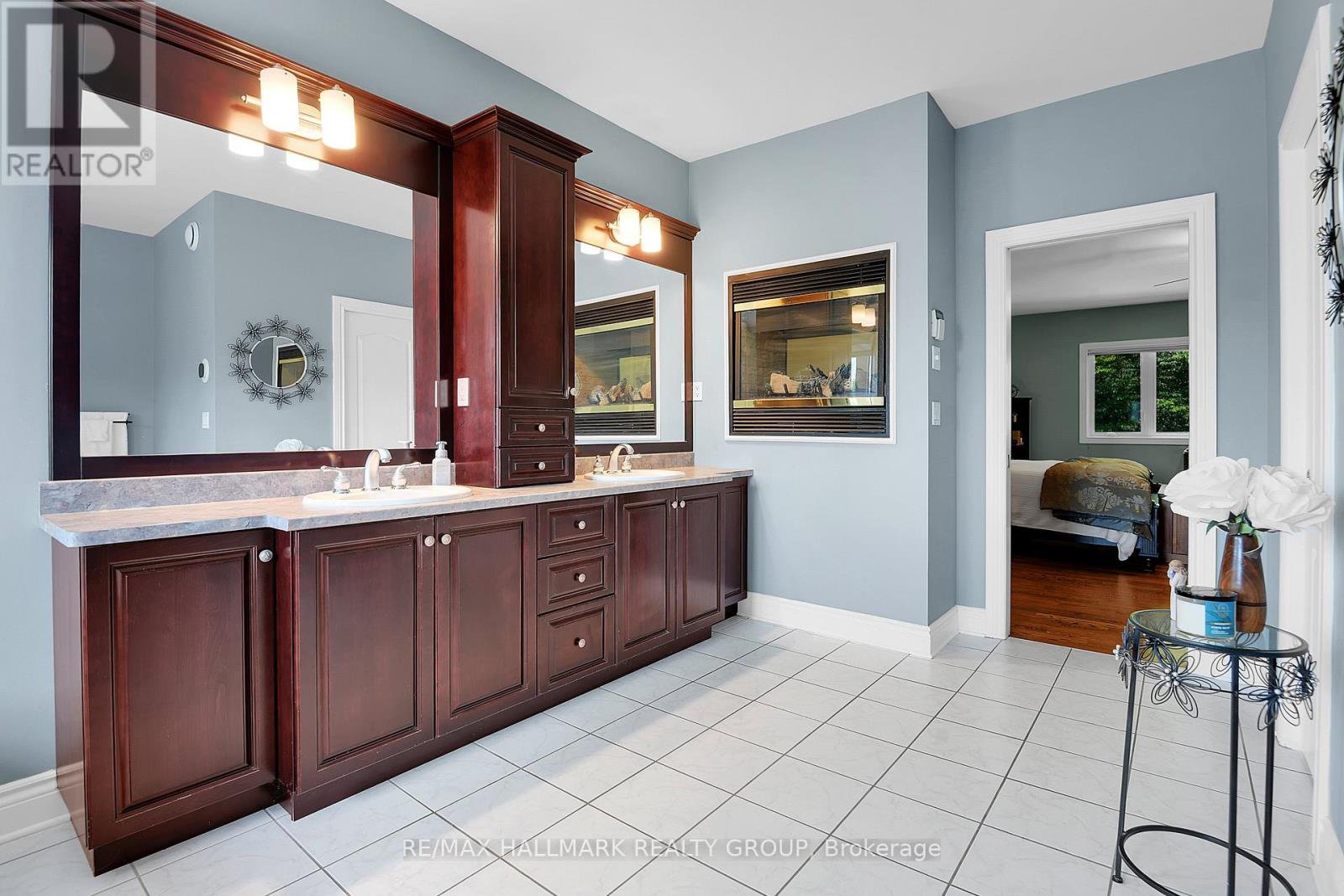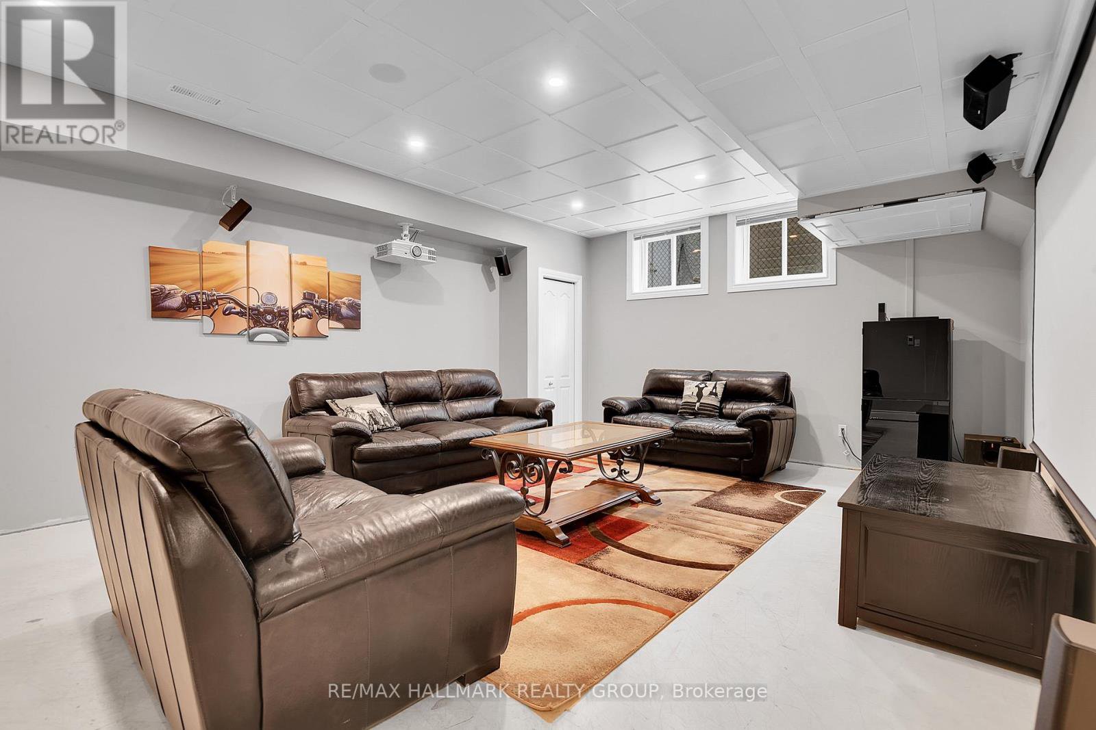 This RARE & impressive custom-built 4 + 2 bedroom executive home, nestled in a tranquil cul-de-sac on the ravine, offers abundance of space & privacy. UNIQUE FEATURES | rich hardwood flooring on main & 2nd level & 2 curved stairways, high ceilings, Serenity Shades, all above-ground bedrooms have direct connections to bathrooms, extended built-in storage cubbies above closets, gas f/p between primary & en-suite, in-floor radiant heat in basement & primary en-suite, direct access to basement from garage, fully fenced yard with composite deck backing onto 34m of ravine. THOUGHTFUL DESIGN | spacious & versatile living space, vestibule opens onto foyer showcasing the curved oak stairway, formal 'tower' living room with privacy doors (currently an office) then onto the separate dining area. The vast open-concept kitchen, eating area & family room with freestanding gas stove is perfect for hosting larger events or can be converted to a quiet space for more intimate dinner parties, by 3 privacy doors. A segregated powder room & laundry/mudroom complete the main floor. The 2nd level boasts a spacious primary plus 3 large bedrooms (2 with private sinks & link to Jack-and-Jill bath, and 1 with cheater to main full bath) and a den or possible nursery. The spacious primary bedroom looks onto the peaceful backyard & enjoys a 2 sided gas f/p shared with the en-suite with walk-in closet, double sink vanity, glass shower & step up 2-person bathtub. The basement provides even more flexibility with 2.65m ceilings, in-floor radiant heat, recreation/theatre room, 2 bedrooms (1 is currently an office), 3pc. bathroom, bonus room (currently a gym), cold room & storage. See attached 'Highlights' for more. COVETED LOCATION | Situated on one of the most sought-after streets in the middle of Orleans. Walk to schools, parks, transit, Innes Rd. shopping corridor. Quick drive/bike to Place D'Orleans, Landmark Cinemas, Ray Friel Sports Complex, Shenkman Arts Centre & amenities. Easy hwy access.