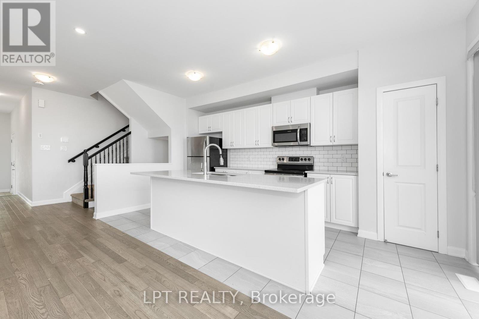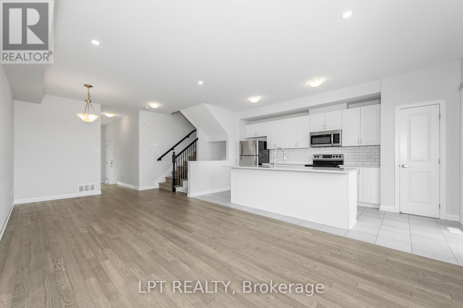 Beautifully maintained 3 bed 4 bath townhome with no rear neighbours and backing onto an elementary school! Greeted by a modern and covered stone exterior leading into a spacious foyer with powder room. Main living area has hardwood flooring and a wall of windows allowing natural light to flow through. The open concept main floor allows the kitchen and living space to integrate seamlessly. This white kitchen has quartz counters and an oversized island with enough space for 4 stools. Primary bed has a walk-in closet and sun filled en suite. Second level continues with two other sizable rooms, a full bath and laundry area. The fully finished basement is fully open and ideally for any furniture configuration and completed with the 4th bathroom. This turnkey property is in immaculate shape and the one you have been waiting for. Come see what this wonderful community has to offer!