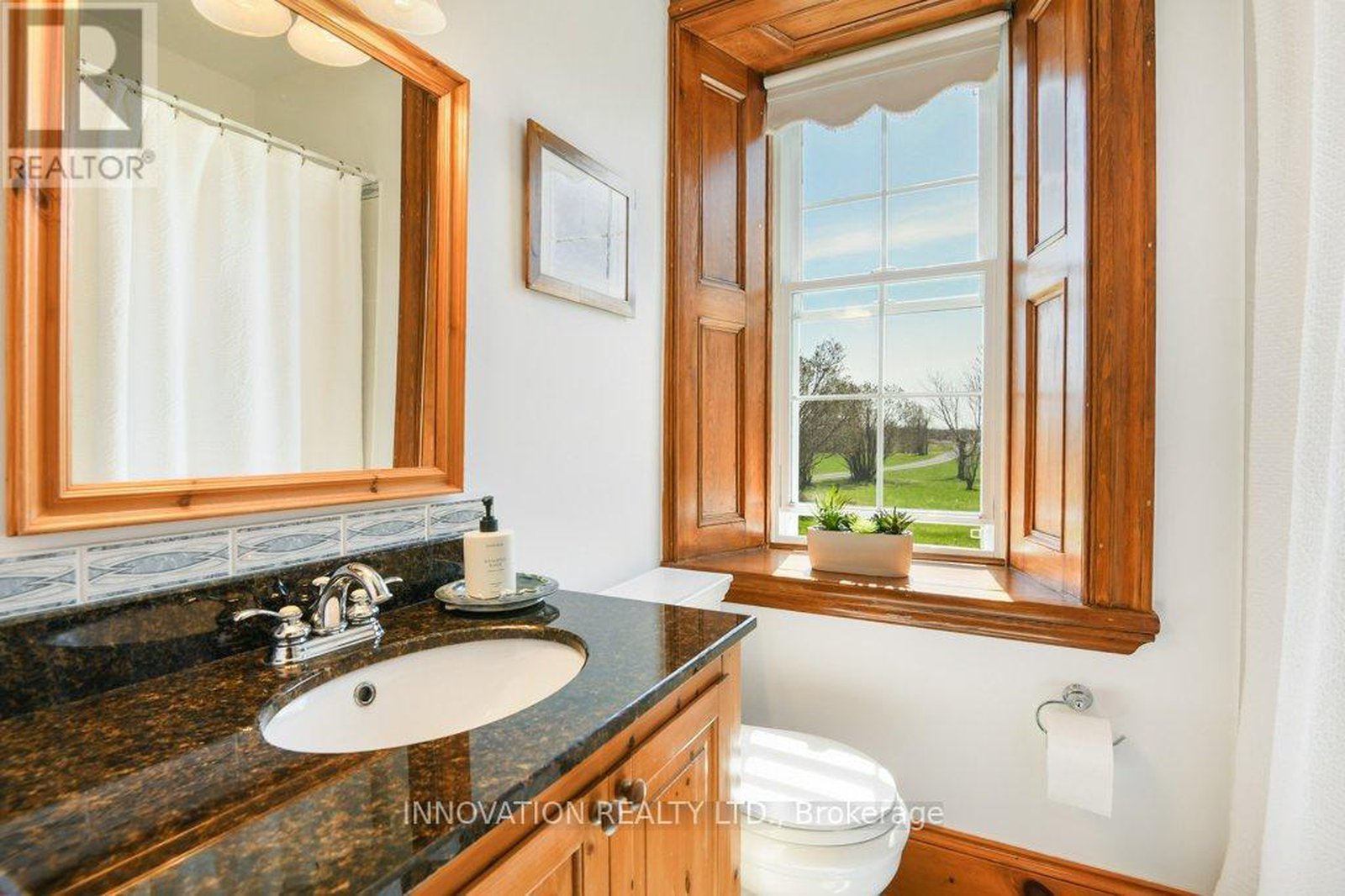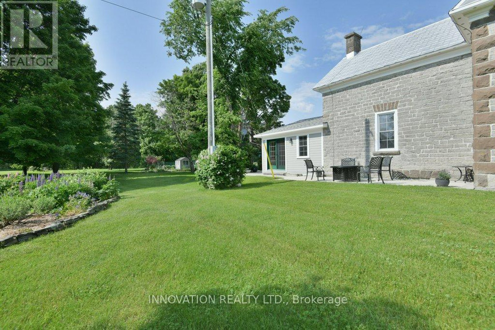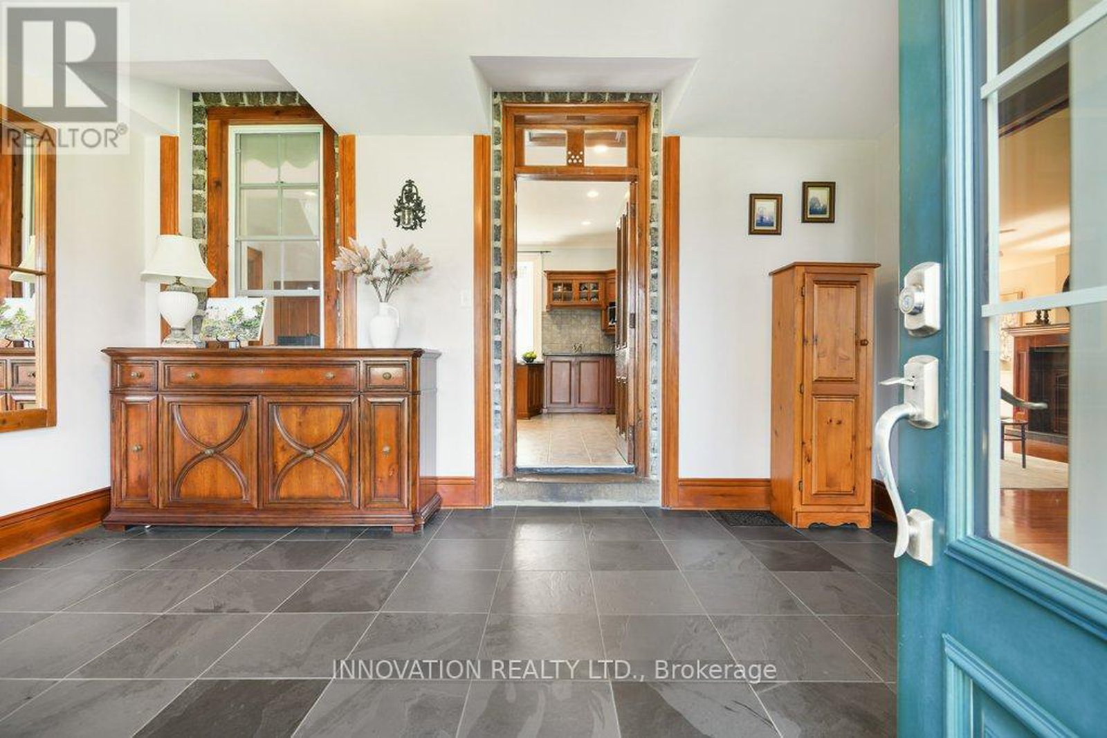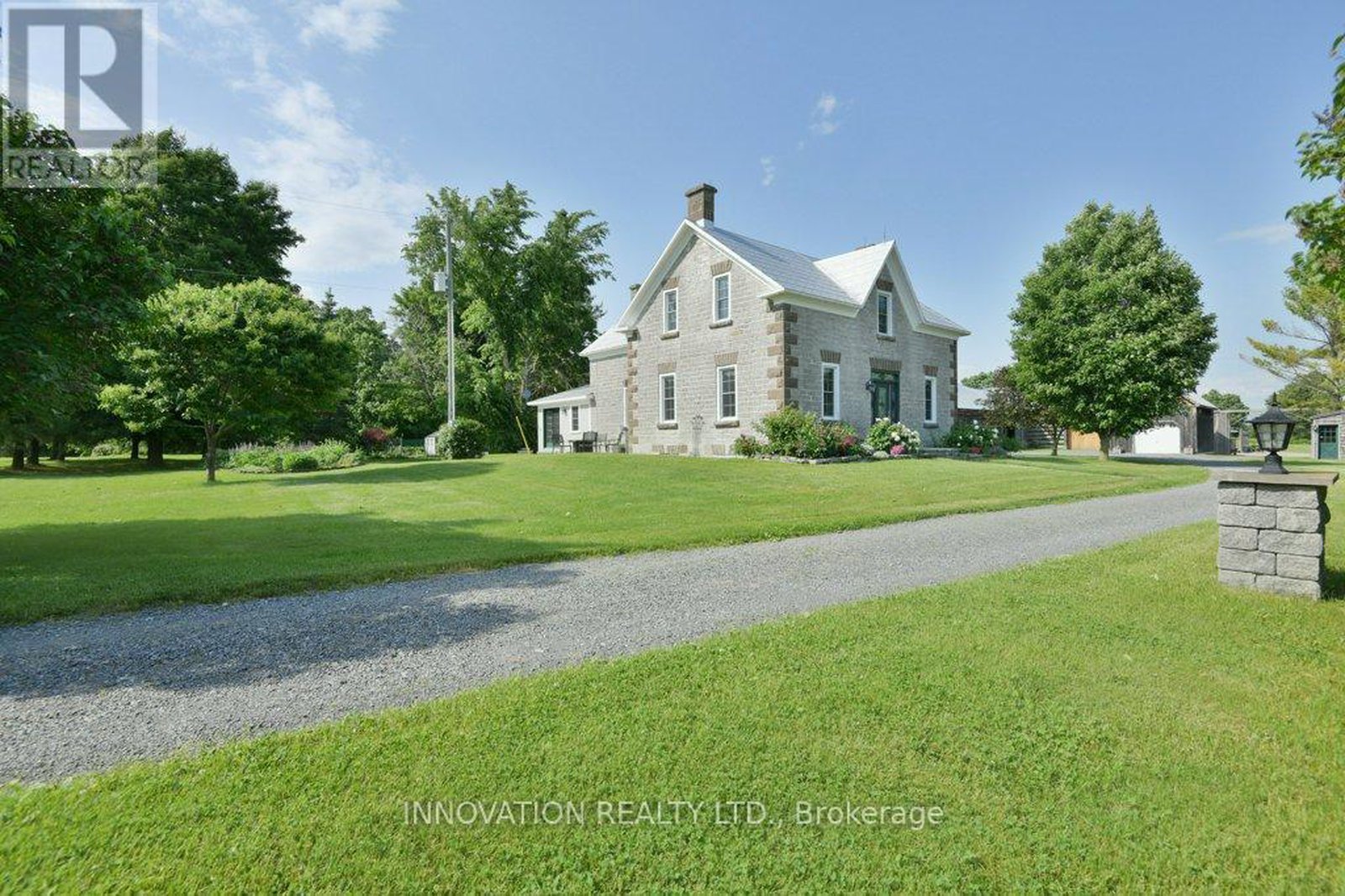 Step into a timeless masterpiece where history and luxury intertwine! This breathtaking solid stone home, crafted with unparalleled artistry in 1877, has been lovingly restored to preserve its old-world charm while seamlessly blending modern sophistication. Nestled at the heart of 138 pristine acres, this enchanted estate captivates with mature trees, vibrant perennial gardens, a cascading waterfall, and a serene pond that create a private paradise of tranquility and natural beauty. Inside, every detail exudes elegance. Expansive country kitchen, adorned with custom solid cherrywood cabinetry and gleaming granite countertops, invites culinary creations and warm gatherings. Grand family room, bathed in natural light through abundant windows, features cozy gas fireplace and rich hardwood floors, perfect for creating cherished memories. Original wide-plank pine flooring, meticulously refinished, flows throughout, complemented by restored trim, doors, sconces, and intricate ceiling medallions that whisper stories of a bygone era. Main floor boasts a gracious foyer, a center hall plan, convenient laundry room, and sophisticated office wrapped in cherrywood cabinetry. Upstairs, the sprawling primary bedroom is a sanctuary of indulgence, complete with luxury ensuite and generous walk-in closet. Modern upgrades enhance comfort without compromising the homes historic soul. Beyond the residence, the estate shines with 100 acres of fertile farmland, 38 acres of majestic forest, and fenced pasture meadows, ideal for agricultural dreams or equestrian pursuits. Thoughtfully improved barns and outbuildings add versatility and charm to this historic homestead. Set in the serene Ashton countryside, with paved access to HWY 7 and minutes from Ashtons quaint amenities, this rare gem offers seclusion and convenience. Don't miss this extraordinary opportunity to own a piece of history, reimagined for modern living-a legacy estate where every moment feels like stepping into a storybook.