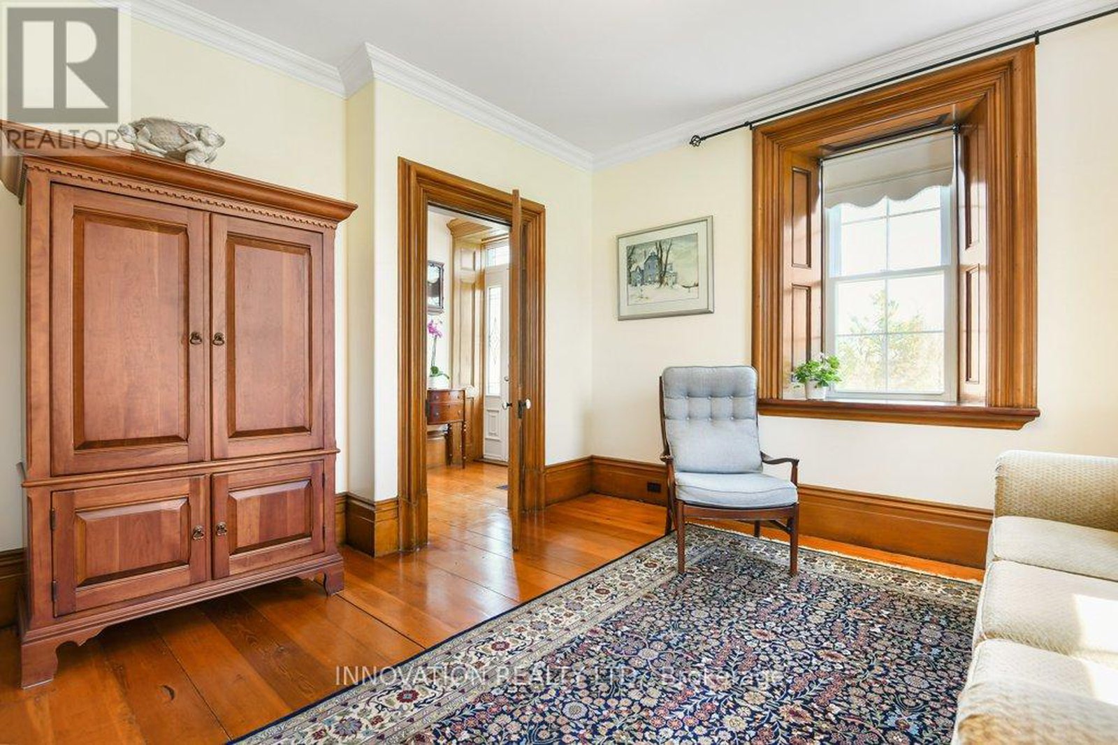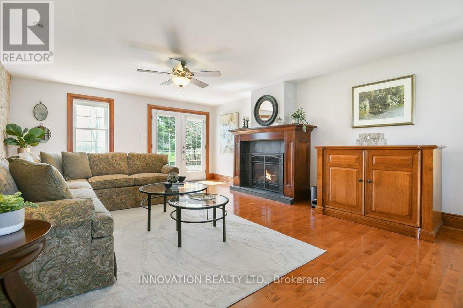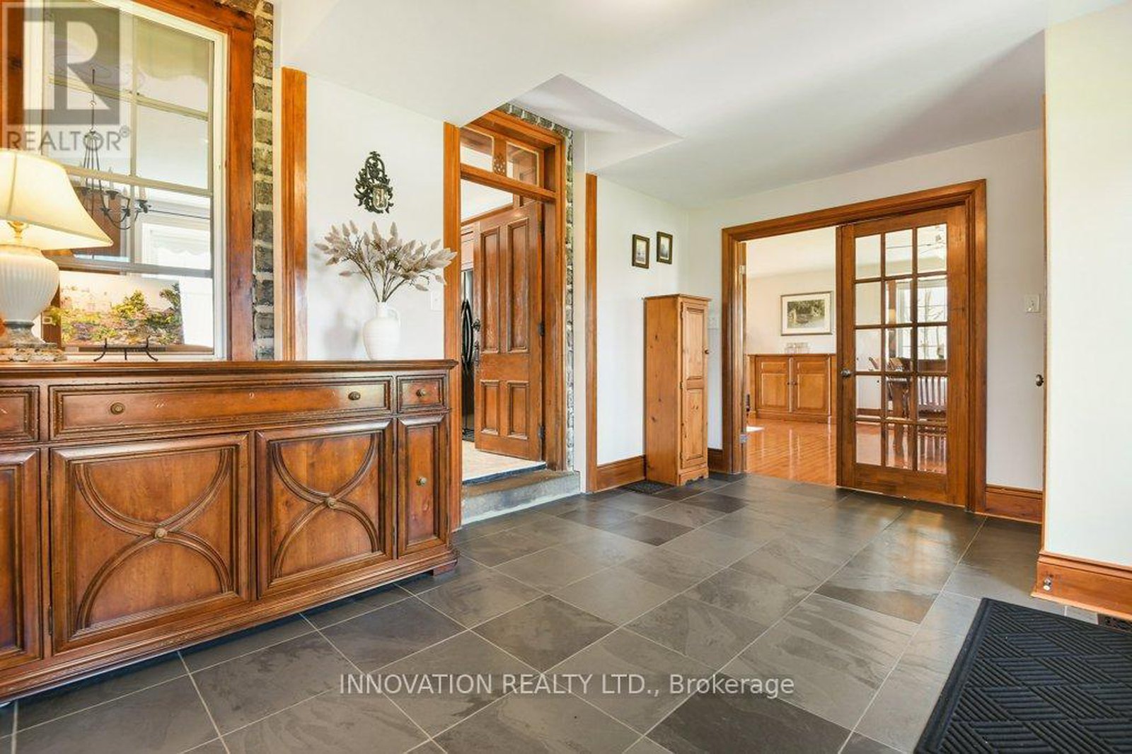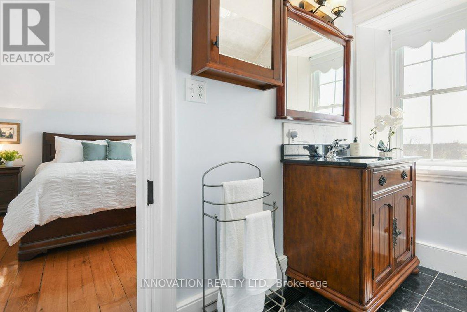 Step into a timeless masterpiece where history and luxury intertwine! This breathtaking solid stone home, crafted with unparalleled artistry in 1877, has been lovingly restored to preserve its old-world charm while seamlessly blending modern sophistication. Nestled at the heart of 138 pristine acres, this enchanted estate captivates with mature trees, vibrant perennial gardens, a cascading waterfall, and a serene pond that create a private paradise of tranquility and natural beauty. Inside, every detail exudes elegance. Expansive country kitchen, adorned with custom solid cherrywood cabinetry and gleaming granite countertops, invites culinary creations and warm gatherings. Grand family room, bathed in natural light through abundant windows, features cozy gas fireplace and rich hardwood floors, perfect for creating cherished memories. Original wide-plank pine flooring, meticulously refinished, flows throughout, complemented by restored trim, doors, sconces, and intricate ceiling medallions that whisper stories of a bygone era. Main floor boasts a gracious foyer, a center hall plan, convenient laundry room, and sophisticated office wrapped in cherrywood cabinetry. Upstairs, the sprawling primary bedroom is a sanctuary of indulgence, complete with luxury ensuite and generous walk-in closet. Modern upgrades enhance comfort without compromising the homes historic soul. Beyond the residence, the estate shines with 100 acres of fertile farmland, 38 acres of majestic forest, and fenced pasture meadows, ideal for agricultural dreams or equestrian pursuits. Thoughtfully improved barns and outbuildings add versatility and charm to this historic homestead. Set in the serene Ashton countryside, with paved access to HWY 7 and minutes from Ashtons quaint amenities, this rare gem offers seclusion and convenience. Don't miss this extraordinary opportunity to own a piece of history, reimagined for modern living-a legacy estate where every moment feels like stepping into a storybook.