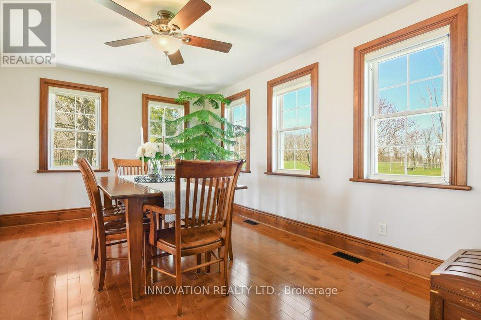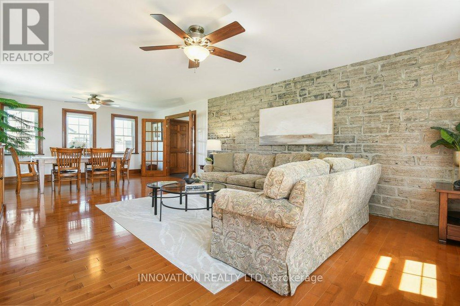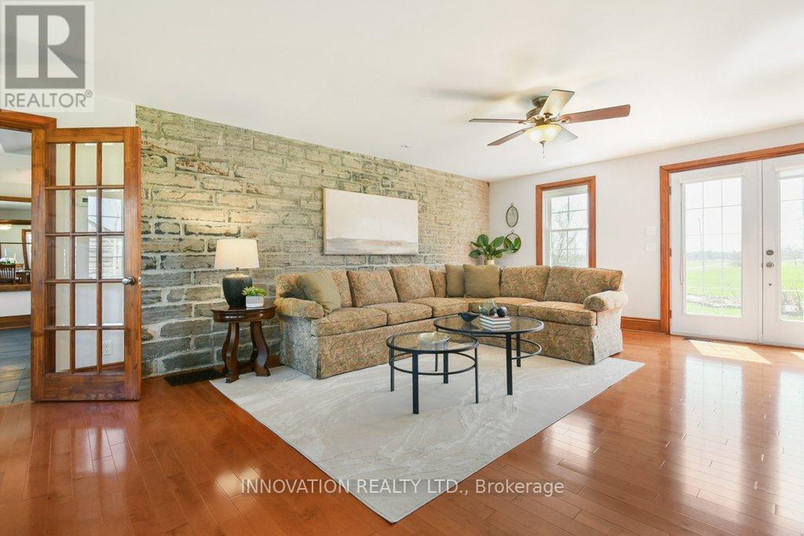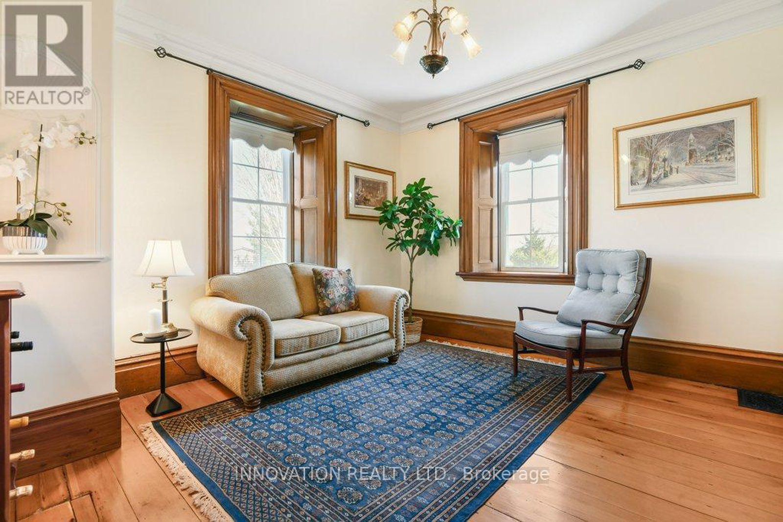 Step into a timeless masterpiece where history and luxury intertwine! This breathtaking solid stone home, crafted with unparalleled artistry in 1877, has been lovingly restored to preserve its old-world charm while seamlessly blending modern sophistication. Nestled at the heart of 138 pristine acres, this enchanted estate captivates with mature trees, vibrant perennial gardens, a cascading waterfall, and a serene pond that create a private paradise of tranquility and natural beauty. Inside, every detail exudes elegance. Expansive country kitchen, adorned with custom solid cherrywood cabinetry and gleaming granite countertops, invites culinary creations and warm gatherings. Grand family room, bathed in natural light through abundant windows, features cozy gas fireplace and rich hardwood floors, perfect for creating cherished memories. Original wide-plank pine flooring, meticulously refinished, flows throughout, complemented by restored trim, doors, sconces, and intricate ceiling medallions that whisper stories of a bygone era. Main floor boasts a gracious foyer, a center hall plan, convenient laundry room, and sophisticated office wrapped in cherrywood cabinetry. Upstairs, the sprawling primary bedroom is a sanctuary of indulgence, complete with luxury ensuite and generous walk-in closet. Modern upgrades enhance comfort without compromising the homes historic soul. Beyond the residence, the estate shines with 100 acres of fertile farmland, 38 acres of majestic forest, and fenced pasture meadows, ideal for agricultural dreams or equestrian pursuits. Thoughtfully improved barns and outbuildings add versatility and charm to this historic homestead. Set in the serene Ashton countryside, with paved access to HWY 7 and minutes from Ashtons quaint amenities, this rare gem offers seclusion and convenience. Don't miss this extraordinary opportunity to own a piece of history, reimagined for modern living-a legacy estate where every moment feels like stepping into a storybook.