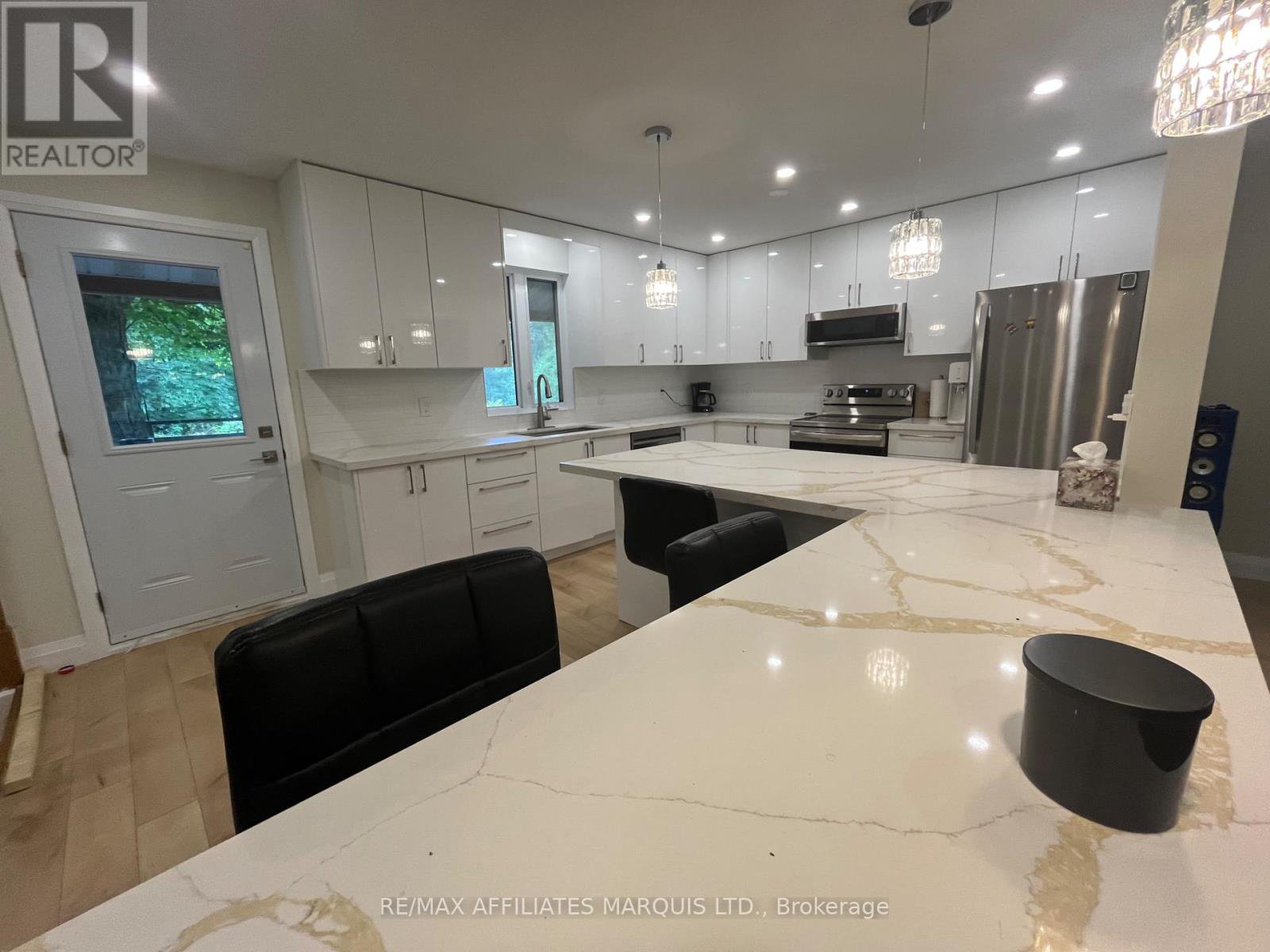 Private, but easily accessible, this bungalow has been completely updated inside (2024). New kitchen, new bathrooms, new flooring, freshly painted custom-built ins and more. 9 acres of hardwood (maple bush), a pond and tranquility. Live the country life close to your towns and amenities. This property is located halfway between Alexandria and Lancaster and just 20 to 60 minutes from Cornwall, Ottawa, and Montreal. Extras include Open Concept main floor that has been converted into your personal dream house. Heated by a natural gas forced air furnace and a large wood stove. Downstairs is fully finished basement with a rec room, laundry room and 2 bonus rooms. A large rear deck with a beautiful view leads to the attached garage. property also comes with multiple storage sheds. Appliances included are brand new (2024-25) A/C, Water softener and Hot Water Tank new (2024). All information & measurements provided may not be accurate & should be verified by all interested Buyers.