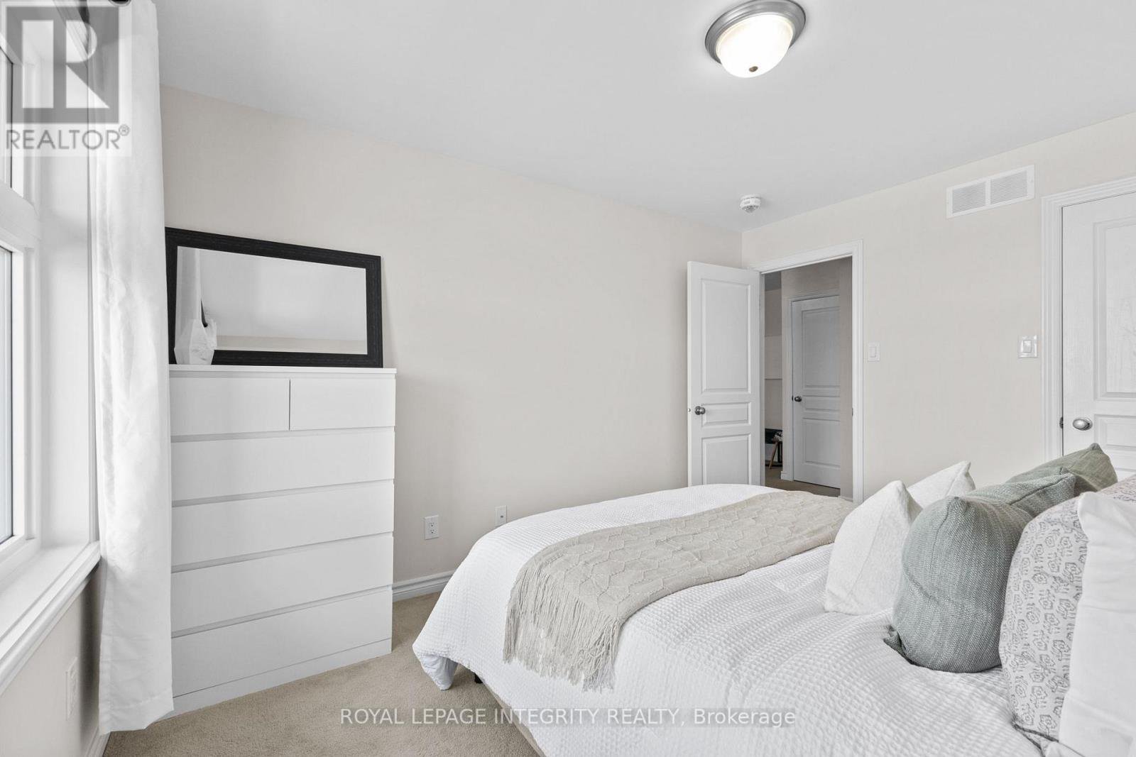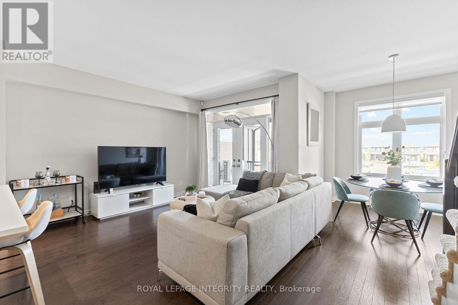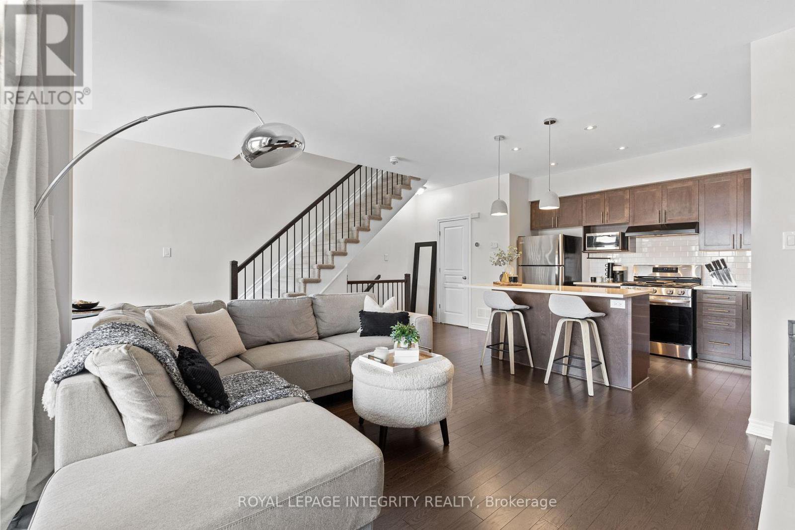 Welcome to this Richcraft -built 2 bed, 2 bath + den freehold townhome (no monthly fees!) in the highly desirable Trailsedge community perfect for anyone seeking comfort, style, and convenience. Step into the foyer that offers direct access to the attached garage and a main-level den, ideal for a home office or creative space. and access to the basement for additional storage space. The second level offers an airy open-concept layout with hardwood floors throughout the kitchen, dining, and living areas. The kitchen features quartz countertops, a central island, natural gas stove, and stainless steel appliances perfect for entertaining or everyday living. Off the living room, enjoy your own covered balcony a private spot to relax, rain or shine. Upstairs, you'll find 2 bedrooms, a full bathroom, and laundry conveniently located on the same level. Located just a short walk to Patrick Dugas Park, you'll love access to tennis courts, green space, and forested trails. Transit, shops, and essentials are all nearby, making daily life a breeze. Whether you're working from home or on the go, this Trailsedge gem offers the ultimate in low-maintenance, lifestyle-friendly living.