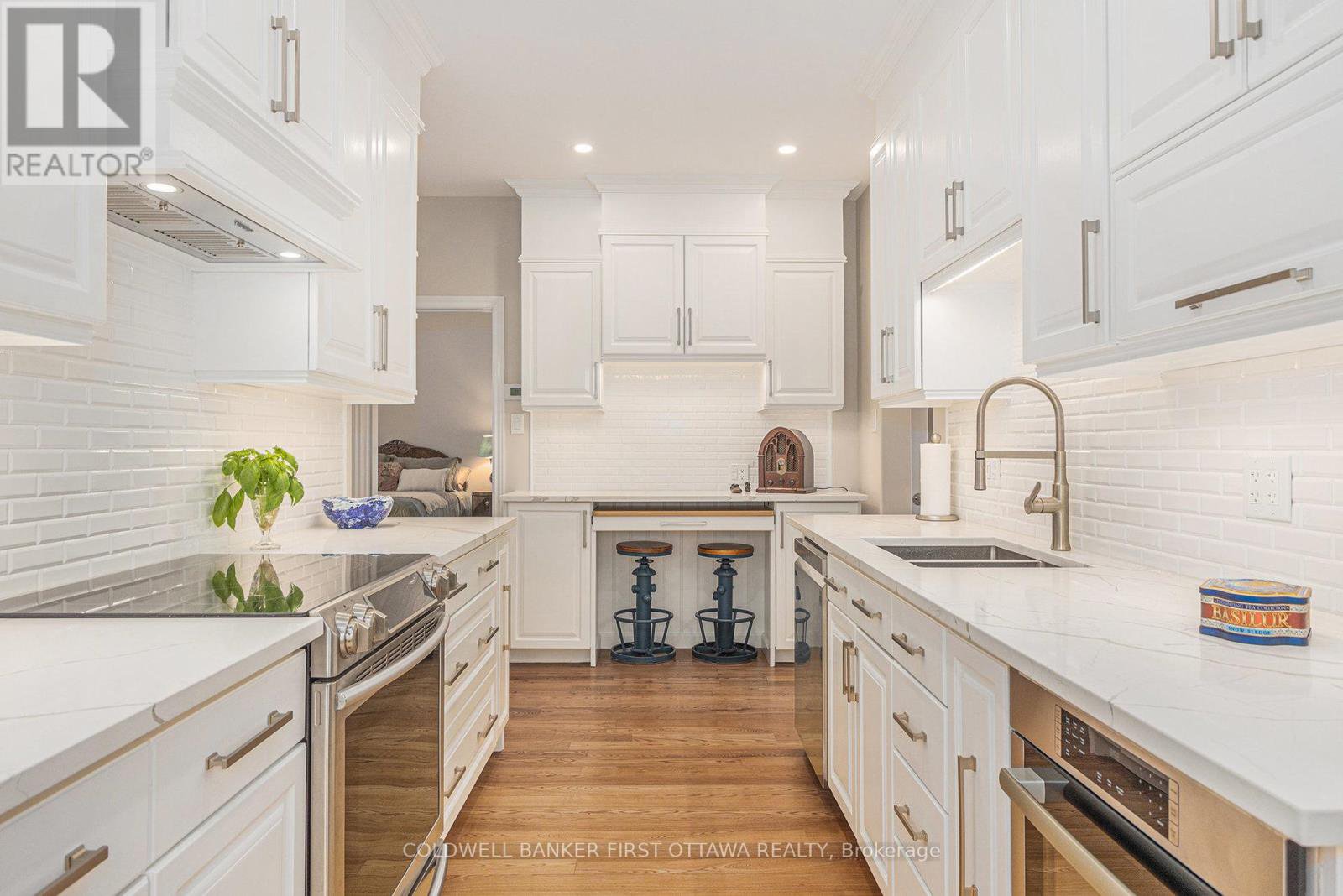 Opportunity knocks! Exquisite stone-faced bungalow with private in-law suite/apartment ideal for intergenerational living, retirees wishing to share their home with other retirees, young families starting out and those seeking investment opportunities. Situated on a lovely large landscaped lot in a newer area of Carleton Place, this home is close to schools, churches, shops, walking trails and even a nearby dog park. The home features both an attached garage plus a detached stone-faced garage with workshop area with lots of parking - perfect for hobbyists and car enthusiasts. The lower-level in-law suite/apartment has private entrance, is bright and inviting with large windows and garden views, granite kitchen counters and island, spacious living/dining area, large bedroom, full bathroom with shower, and has its own heating & cooling system. The light filled main-level is equally inviting with its impressive glass entry, arched open concept living and dining room and modern galley-style kitchen with quartz counters and built-ins where patio doors open to a private garden encircled deck ideal for entertaining and evenings under the stars. Primary bedroom has large walk-in closet and linen closet while the second bedroom provides space for guests or home office. The luxury bathroom has quartz vanity, large soaker tub and oversized shower with two shower heads. This home has many upgrades in recent years (full list of upgrades attached to this MLS) including all new exterior doors and triple glazed low-E argon windows, newer appliances throughout, radiant in floor heating in lower level bedroom and laundry room, upgraded smoke/fire protections, a filtration system to remove chlorine taste from town water, and a smart WIFI programmable irrigation system for the yard. Move in ready, offering you flexibility with quality comforts