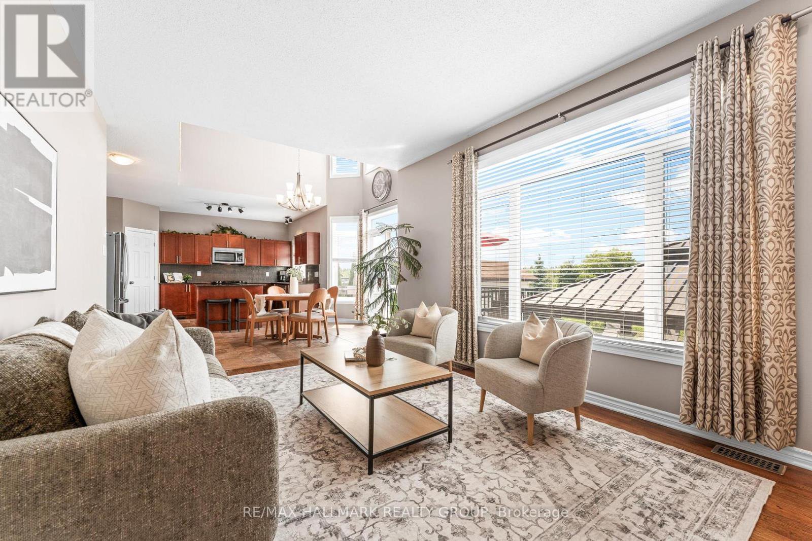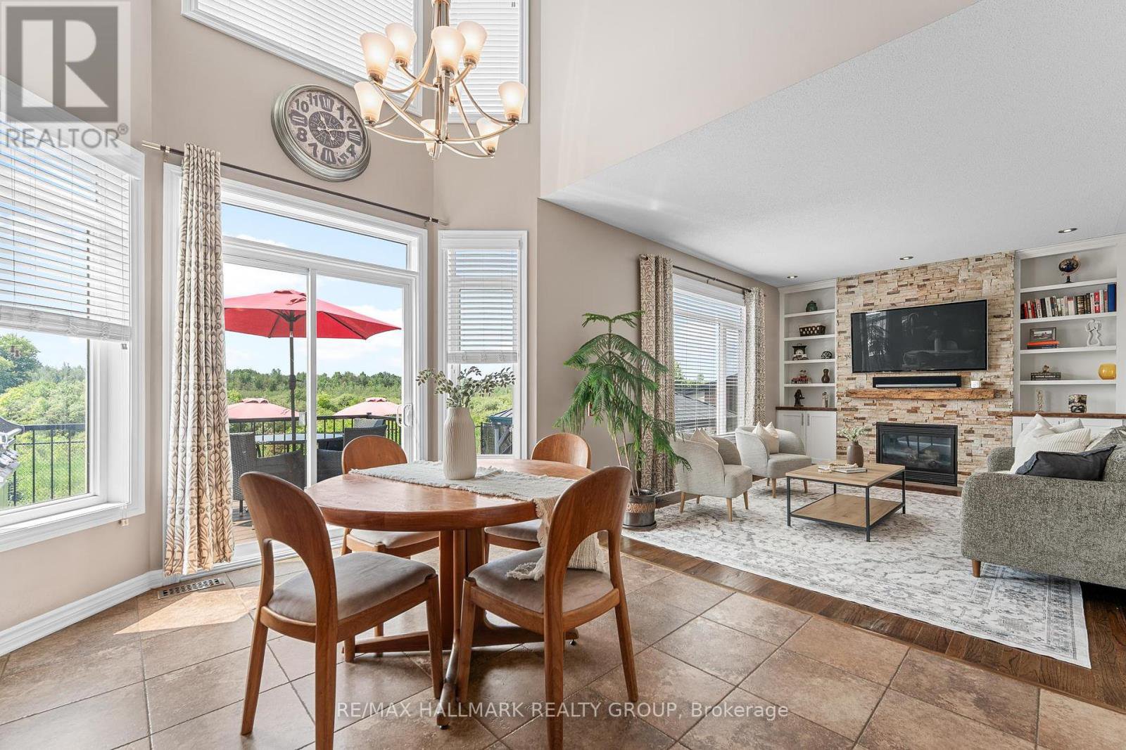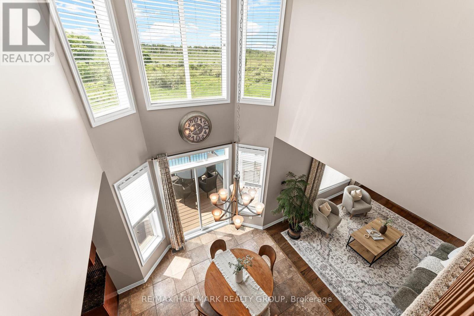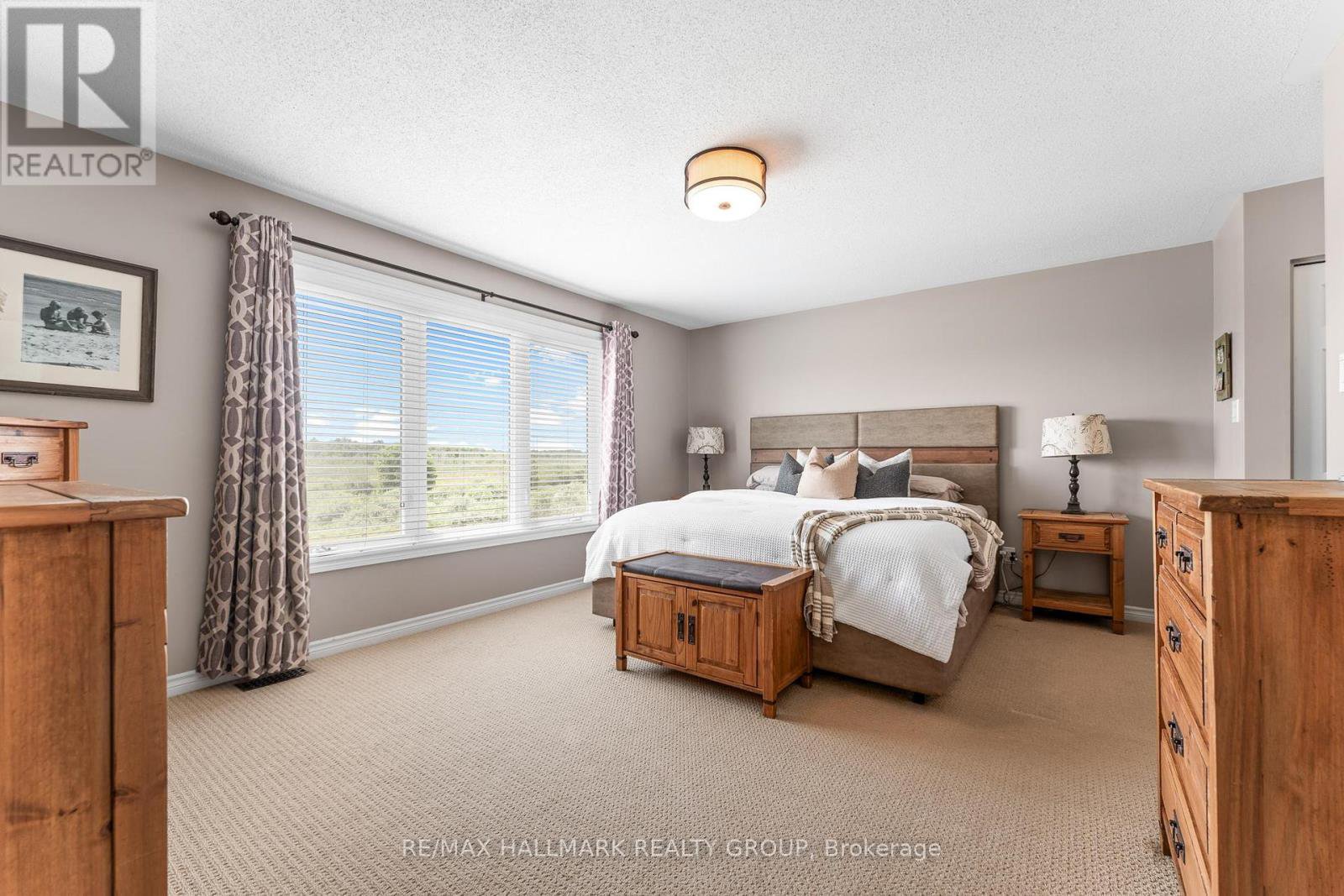 Discover this stunning 4+1 bedroom home with a spectacular backyard retreat, nestled on a quiet street in sought-after Bradley Estates. Backing onto tranquil NCC greenspace and the scenic Prescott-Russell Trail, this home offers unparalleled access to nature trails and is just steps away from several parks and a splashpad. A charming front verandah welcomes you into the open-concept living and dining room, boasting elegant wainscotting. Beautiful kitchen features granite counters, stainless steel appliances, a corner pantry, and an island with breakfast bar. The inviting eating area is framed by soaring ceilings and dramatic bay windows that extend to the second level, flooding the space with natural light. Desirable main floor family room anchored by a cozy gas fireplace and custom built-in shelving. Upstairs, the spacious hallway is open to below and leads to a generous primary suite with double closets and 5-piece ensuite including a soaker tub and separate shower. The second level is complete with three additional bedrooms, a full 4-piece main bathroom and laundry for your convenience. The carefully thought-out finished basement offers an abundance of well allocated storage spaces, a large recreation room with plenty of space for a home office or gym area, plus a fifth bedroom and additional full bath ideal for hosting guests. Step outside to the sun-filled, south-facing backyard oasis, beautifully landscaped with composite deck, interlock patio, and inground pool all set against the serene backdrop of protected greenspace. Embrace a lifestyle where nature, community, and modern comfort converge this exceptional Bradley Estates home offers more than just a residence; it invites you to live your best life.