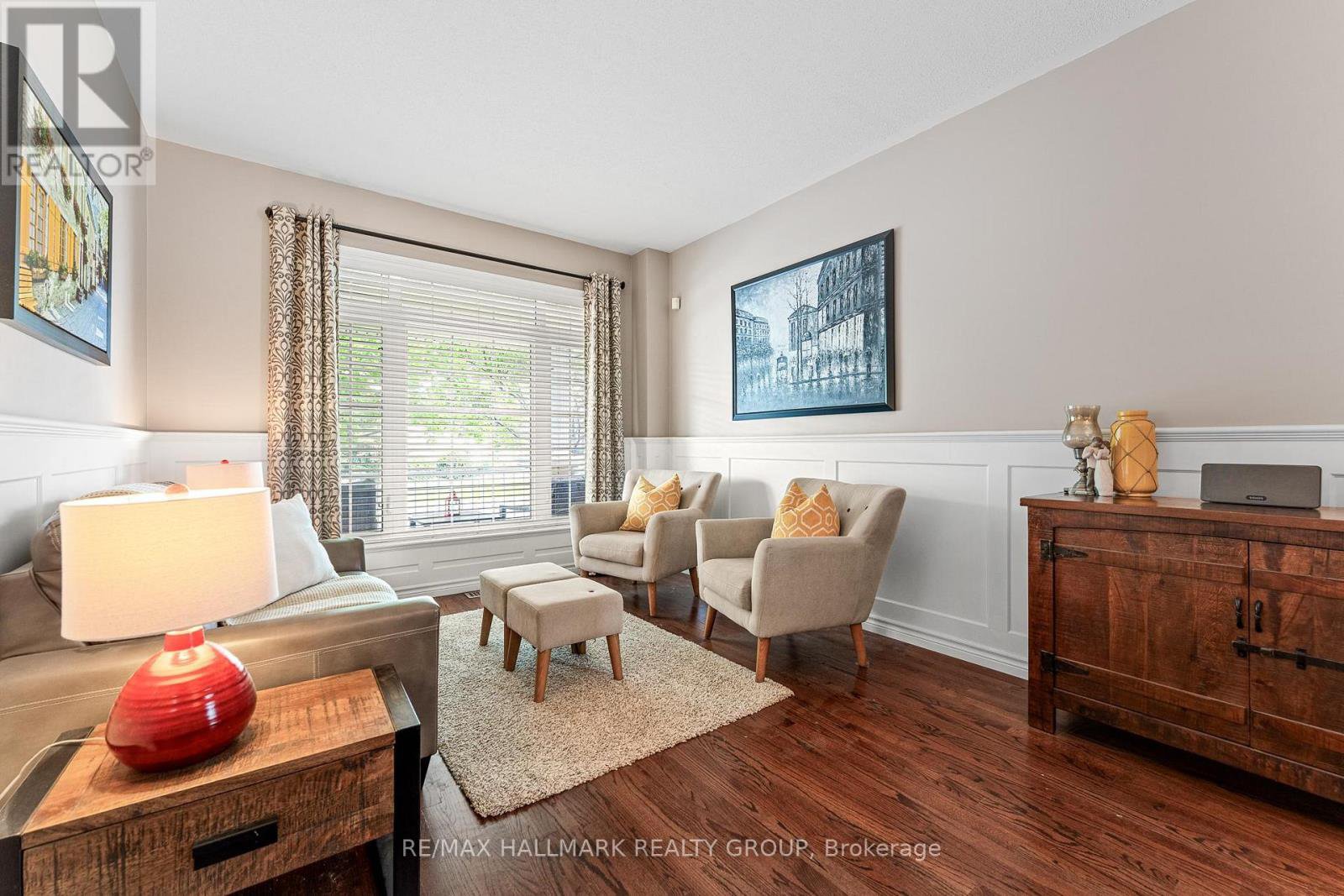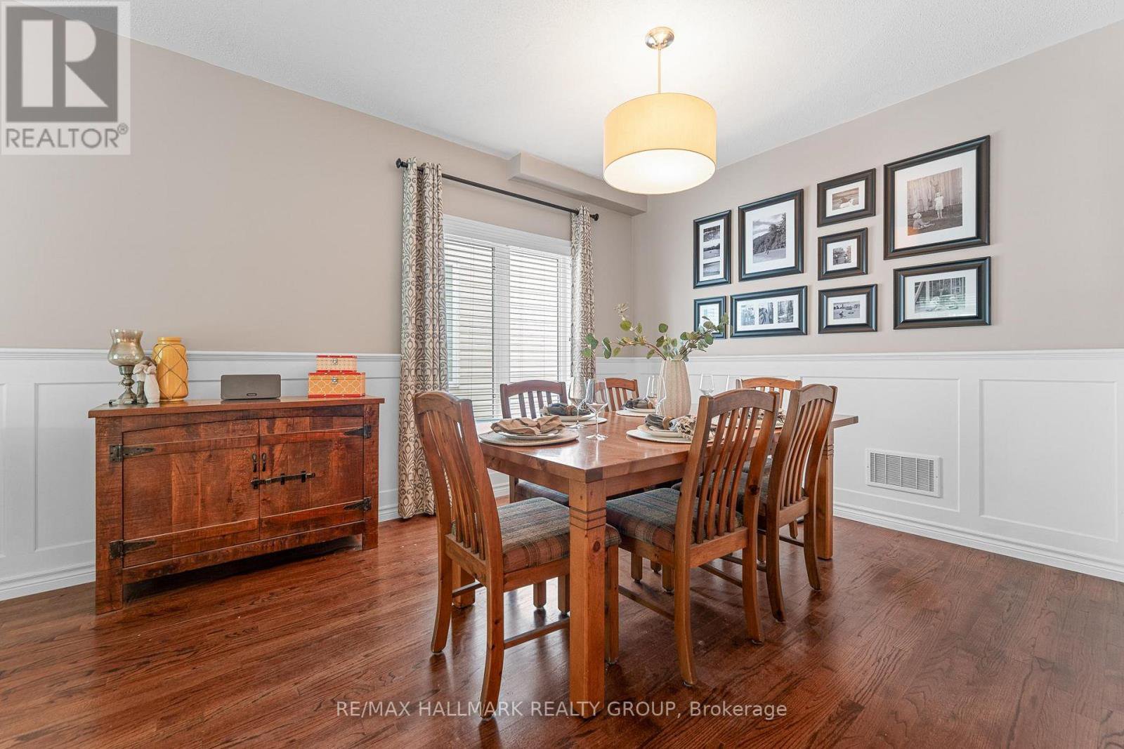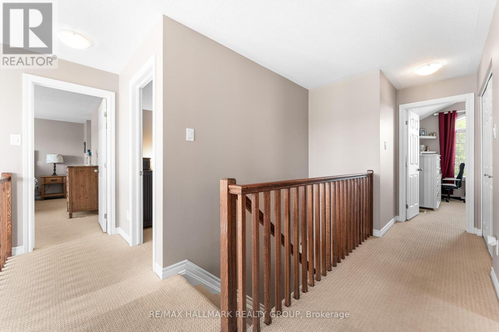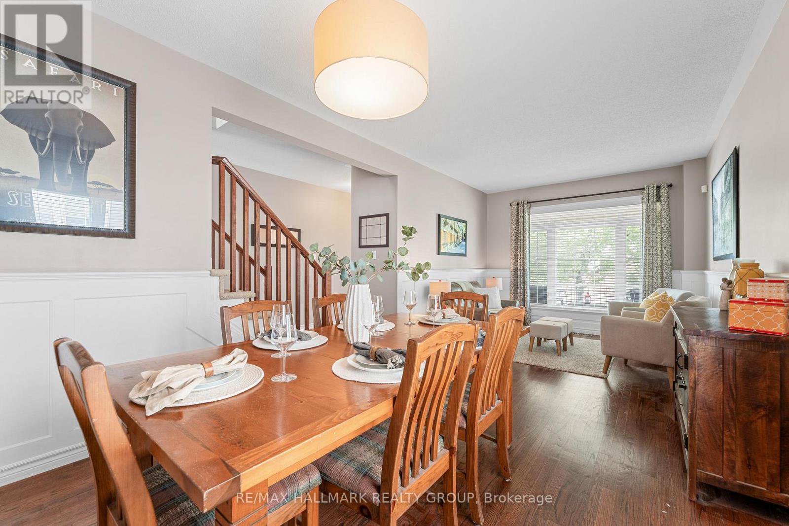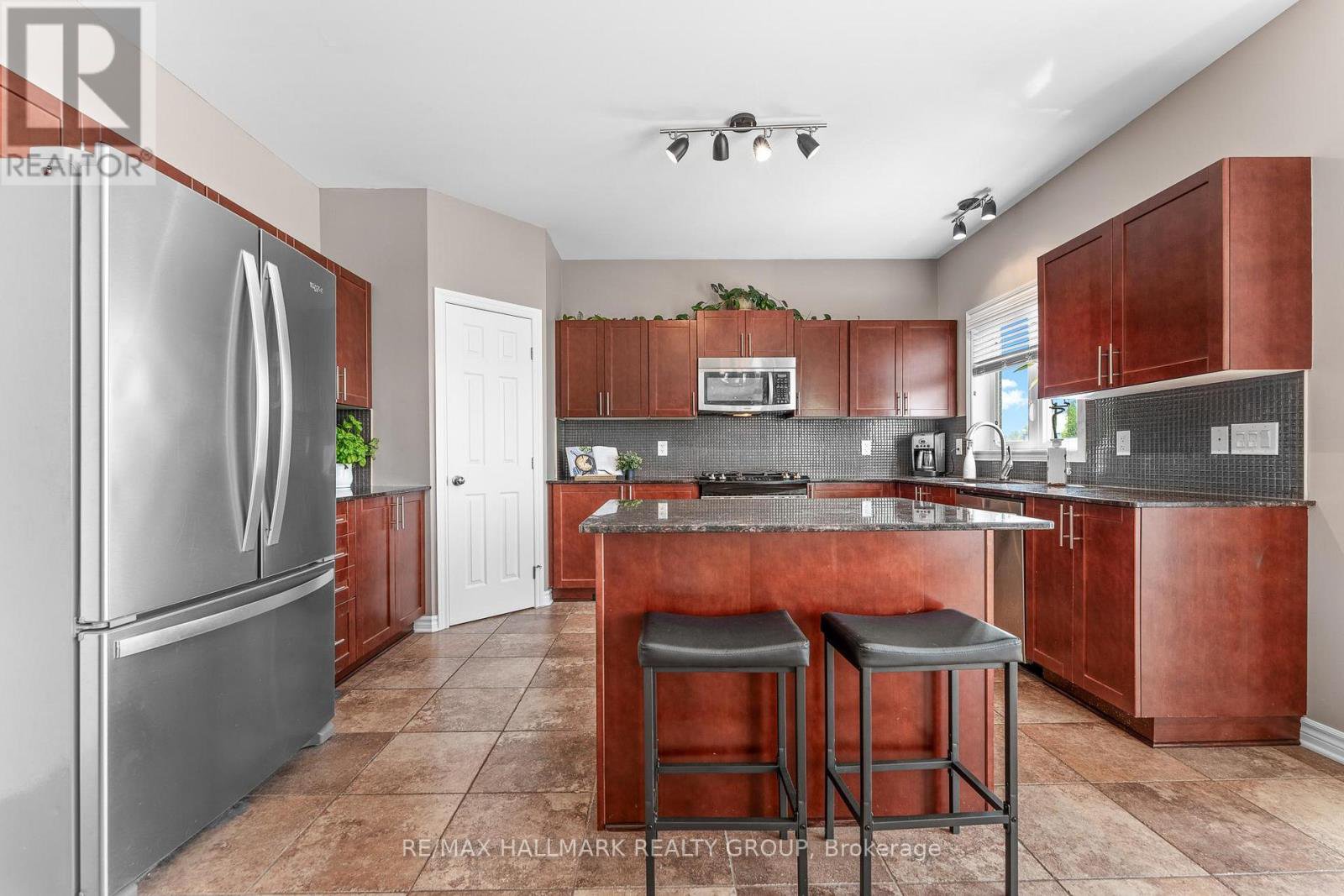 Discover this stunning 4+1 bedroom home with a spectacular backyard retreat, nestled on a quiet street in sought-after Bradley Estates. Backing onto tranquil NCC greenspace and the scenic Prescott-Russell Trail, this home offers unparalleled access to nature trails and is just steps away from several parks and a splashpad. A charming front verandah welcomes you into the open-concept living and dining room, boasting elegant wainscotting. Beautiful kitchen features granite counters, stainless steel appliances, a corner pantry, and an island with breakfast bar. The inviting eating area is framed by soaring ceilings and dramatic bay windows that extend to the second level, flooding the space with natural light. Desirable main floor family room anchored by a cozy gas fireplace and custom built-in shelving. Upstairs, the spacious hallway is open to below and leads to a generous primary suite with double closets and 5-piece ensuite including a soaker tub and separate shower. The second level is complete with three additional bedrooms, a full 4-piece main bathroom and laundry for your convenience. The carefully thought-out finished basement offers an abundance of well allocated storage spaces, a large recreation room with plenty of space for a home office or gym area, plus a fifth bedroom and additional full bath ideal for hosting guests. Step outside to the sun-filled, south-facing backyard oasis, beautifully landscaped with composite deck, interlock patio, and inground pool all set against the serene backdrop of protected greenspace. Embrace a lifestyle where nature, community, and modern comfort converge this exceptional Bradley Estates home offers more than just a residence; it invites you to live your best life.