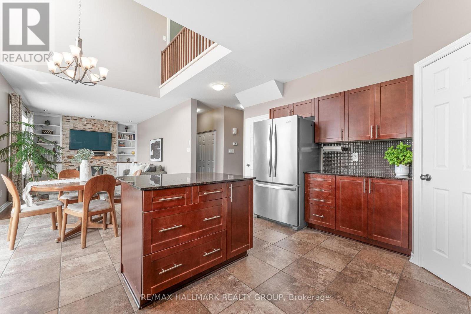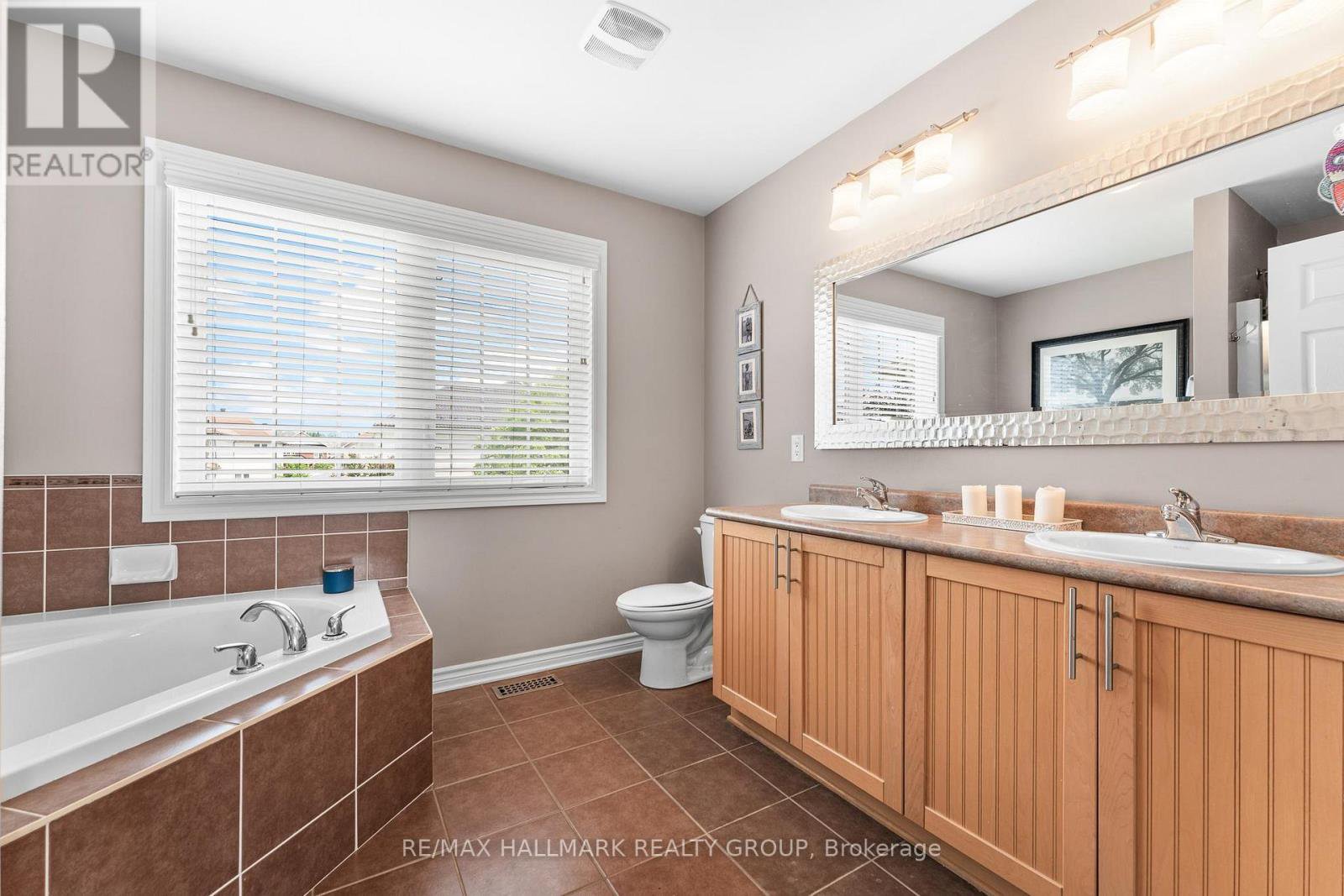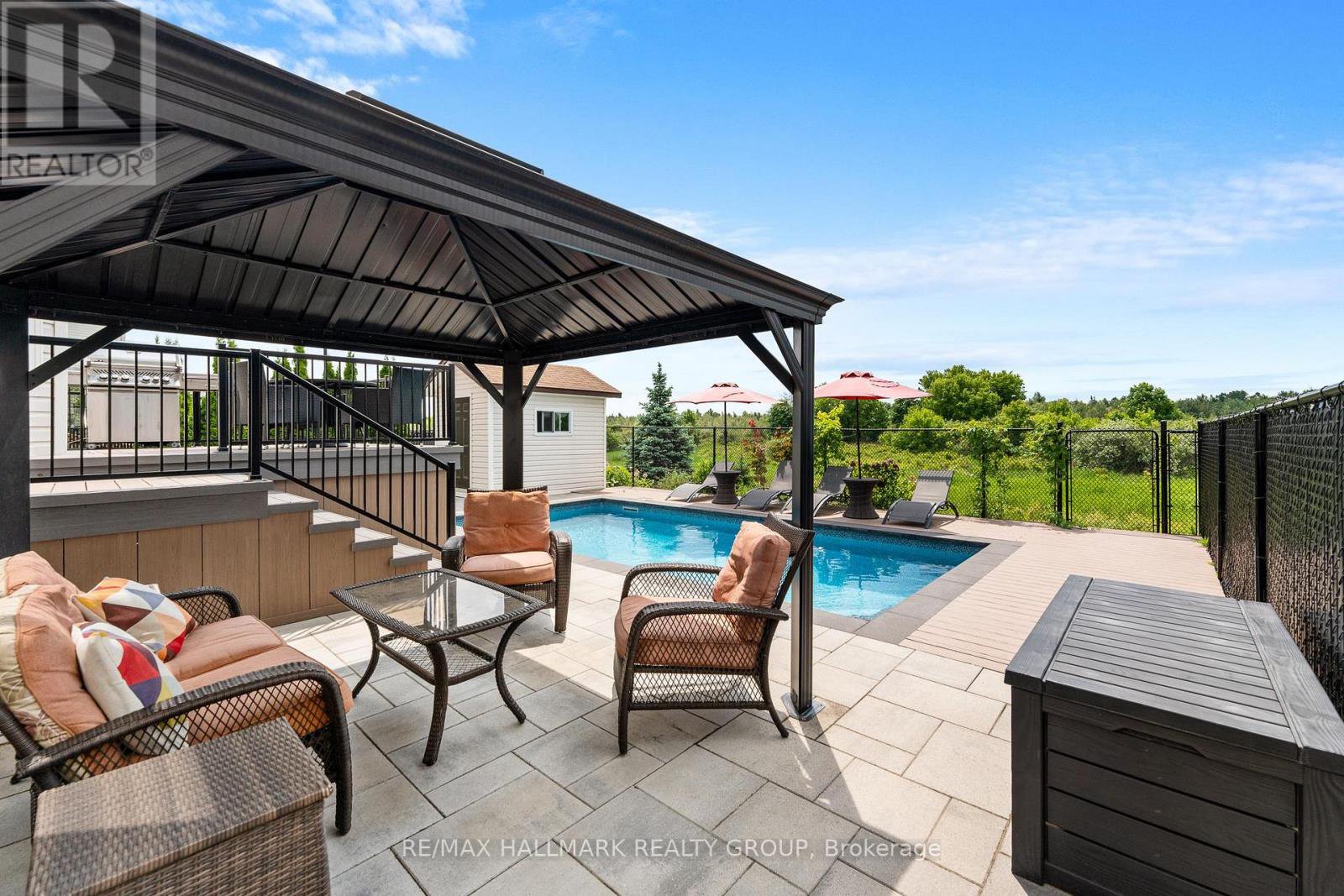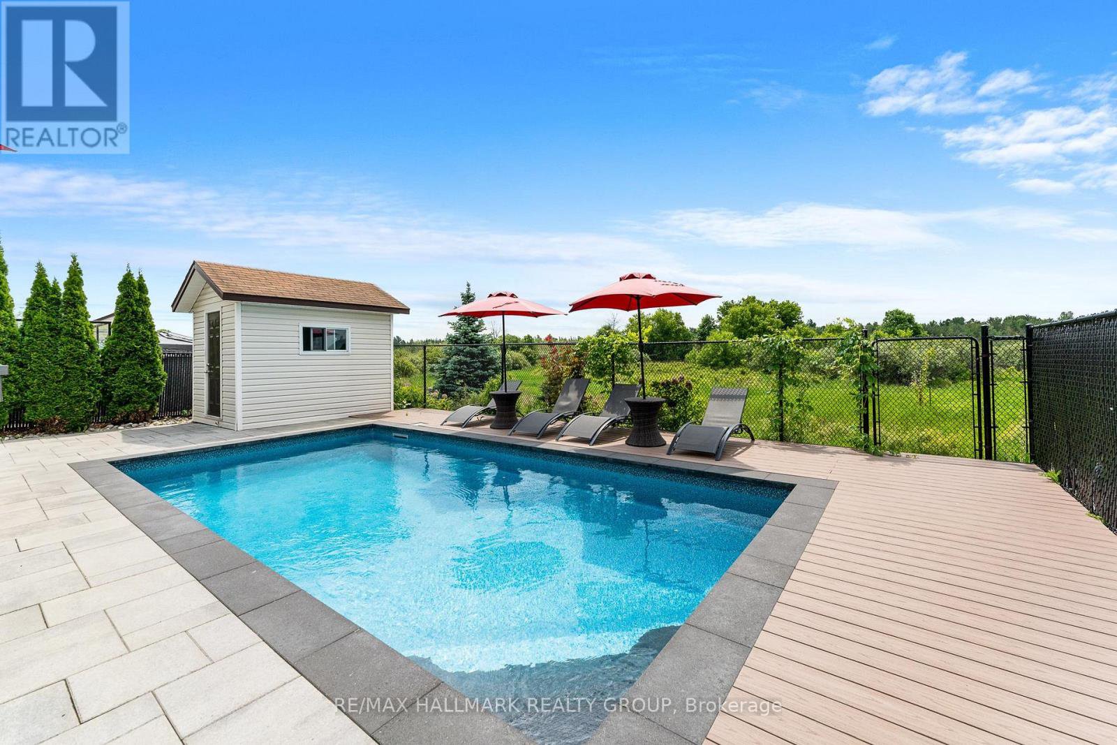 Discover this stunning 4+1 bedroom home with a spectacular backyard retreat, nestled on a quiet street in sought-after Bradley Estates. Backing onto tranquil NCC greenspace and the scenic Prescott-Russell Trail, this home offers unparalleled access to nature trails and is just steps away from several parks and a splashpad. A charming front verandah welcomes you into the open-concept living and dining room, boasting elegant wainscotting. Beautiful kitchen features granite counters, stainless steel appliances, a corner pantry, and an island with breakfast bar. The inviting eating area is framed by soaring ceilings and dramatic bay windows that extend to the second level, flooding the space with natural light. Desirable main floor family room anchored by a cozy gas fireplace and custom built-in shelving. Upstairs, the spacious hallway is open to below and leads to a generous primary suite with double closets and 5-piece ensuite including a soaker tub and separate shower. The second level is complete with three additional bedrooms, a full 4-piece main bathroom and laundry for your convenience. The carefully thought-out finished basement offers an abundance of well allocated storage spaces, a large recreation room with plenty of space for a home office or gym area, plus a fifth bedroom and additional full bath ideal for hosting guests. Step outside to the sun-filled, south-facing backyard oasis, beautifully landscaped with composite deck, interlock patio, and inground pool all set against the serene backdrop of protected greenspace. Embrace a lifestyle where nature, community, and modern comfort converge this exceptional Bradley Estates home offers more than just a residence; it invites you to live your best life.