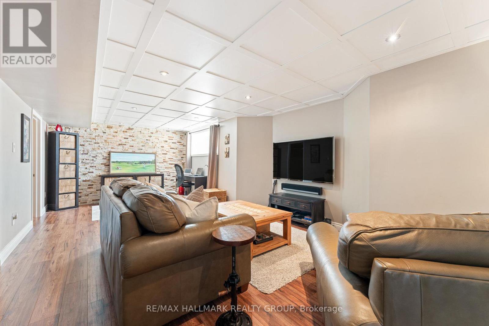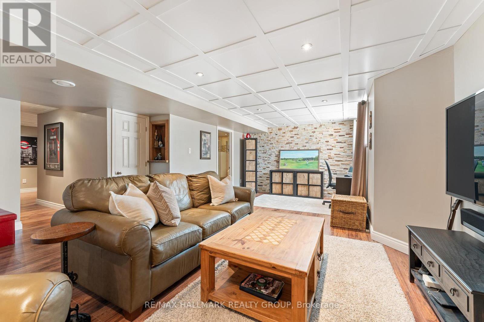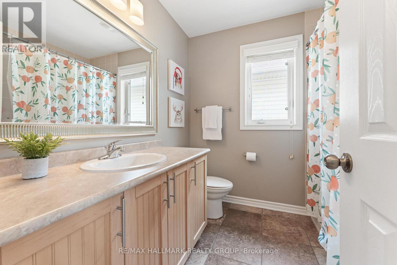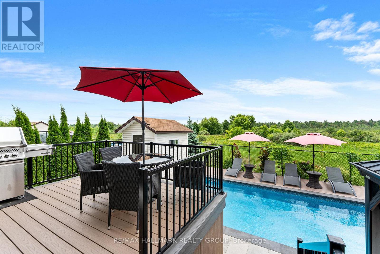 Discover this stunning 4+1 bedroom home with a spectacular backyard retreat, nestled on a quiet street in sought-after Bradley Estates. Backing onto tranquil NCC greenspace and the scenic Prescott-Russell Trail, this home offers unparalleled access to nature trails and is just steps away from several parks and a splashpad. A charming front verandah welcomes you into the open-concept living and dining room, boasting elegant wainscotting. Beautiful kitchen features granite counters, stainless steel appliances, a corner pantry, and an island with breakfast bar. The inviting eating area is framed by soaring ceilings and dramatic bay windows that extend to the second level, flooding the space with natural light. Desirable main floor family room anchored by a cozy gas fireplace and custom built-in shelving. Upstairs, the spacious hallway is open to below and leads to a generous primary suite with double closets and 5-piece ensuite including a soaker tub and separate shower. The second level is complete with three additional bedrooms, a full 4-piece main bathroom and laundry for your convenience. The carefully thought-out finished basement offers an abundance of well allocated storage spaces, a large recreation room with plenty of space for a home office or gym area, plus a fifth bedroom and additional full bath ideal for hosting guests. Step outside to the sun-filled, south-facing backyard oasis, beautifully landscaped with composite deck, interlock patio, and inground pool all set against the serene backdrop of protected greenspace. Embrace a lifestyle where nature, community, and modern comfort converge this exceptional Bradley Estates home offers more than just a residence; it invites you to live your best life.
