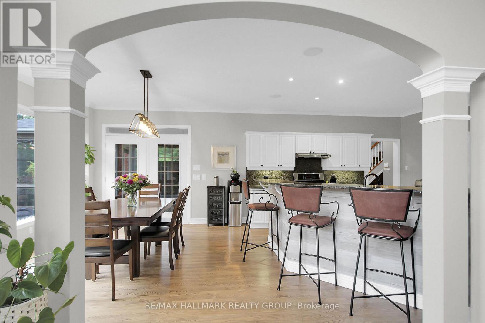 Open House September 28, 2-4. Welcome to 13 Beechgrove Gardens, nestled on a rare, large, private lot in the heart of Stittvilles most sought-after neighbourhood. This impressive all brick home is surrounded by stunning landscaping, including a serene pond, mature greenery, a 9-zone irrigation system, a three-season built-in room and bosting a three-car garage with beautifully interlocked driveway, walkway and front porch. .Upon entering, you are greeted by a grand foyer that opens to an elegant open-to-above living room with 20-foot ceilings, countless windows and a stunning fireplace. The main floor features a private office, powder room, family room with second fireplace, an oversized dining room, complete with a butlers pantry, seamlessly connecting to the open kitchen. The kitchen boasts a walk-in pantry, a bright eating area, and a spacious mudroom/laundry with a second staircase leading to the soundproof family room above. The sun-filled three-season room with a hot tub overlooks the beautifully landscaped backyard.Upstairs, you will find four generous bedrooms, including a luxurious primary retreat with its own private balcony, a two-sided fireplace leading to the ensuite, and a walk-in closet. Bedroom 2 features its own ensuite, while Bedrooms 3 and 4 share a Jack-and-Jill bath.The lower level is designed for entertainment and relaxation, featuring oversized windows in the expansive recreation room, a fifth bedroom currently utilized as a games room, and abundant storage space.This is a rare opportunity to own a remarkable home in a coveted locationperfect for family living and entertaining. FURNACES AND AC'S UPDATE SEPT 2025