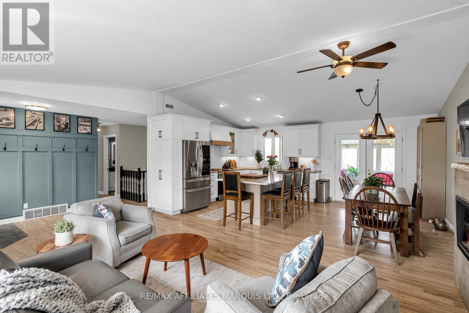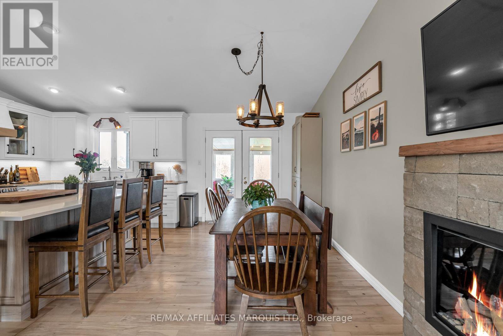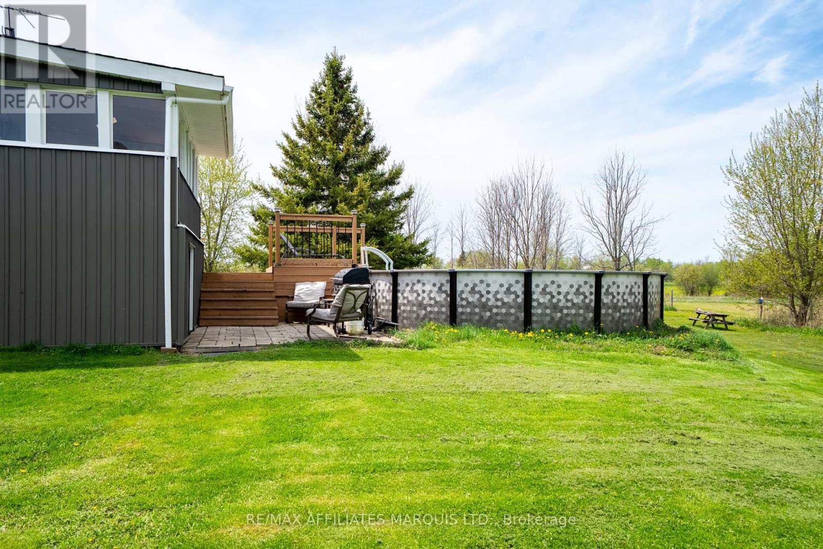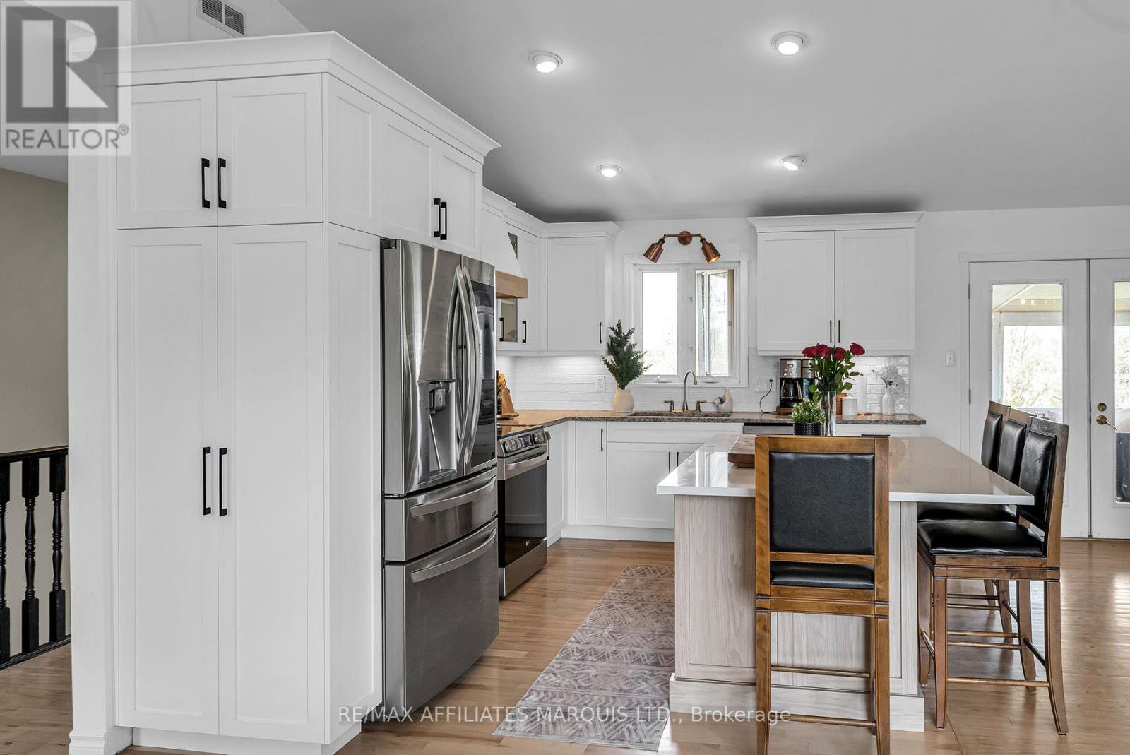 Welcome to this beautifully updated home offering the perfect blend of rural tranquility and modern convenience. Nestled on over 5 private acres, this 3+1 bedroom, 2-bathroom home is thoughtfully designed with space, style, and functionality in mind.Step inside to an open-concept main floor featuring a spacious living and dining area that flows seamlessly into a stunning custom kitchen by Artisan Kitchens. Just off the dining room, enjoy the outdoors from your screened-in porch ideal for relaxing or entertaining.The main level features a large 3 piece bathroom, three generously sized bedrooms, including a primary suite with a dream walk-in closet. The fully finished lower level offers even more space, including a large open rec room with a cozy bio-fuel pellet stove, an additional bedroom (currently used as an office), and a second 3-piece bath.Outside, you'll find a large garage with a wood stove, a new shed, and extra storage under the screened-in porch. For nature lovers and hobby farmers, the property boasts 500 blue spruce and 500 silver maple trees, along with black walnut trees, apple trees, berry bushes, and grapevines. Theres even a rustic hunters camp with its own wood stove.Enjoy summer days on the expansive back deck complete with an above-ground pool and hot tub, all just a short drive to Ottawa, Montreal, and Cornwall.This property combines modern comfort with country charm, all within easy reach of city amenities. 24 hour irrevocable on all offers.