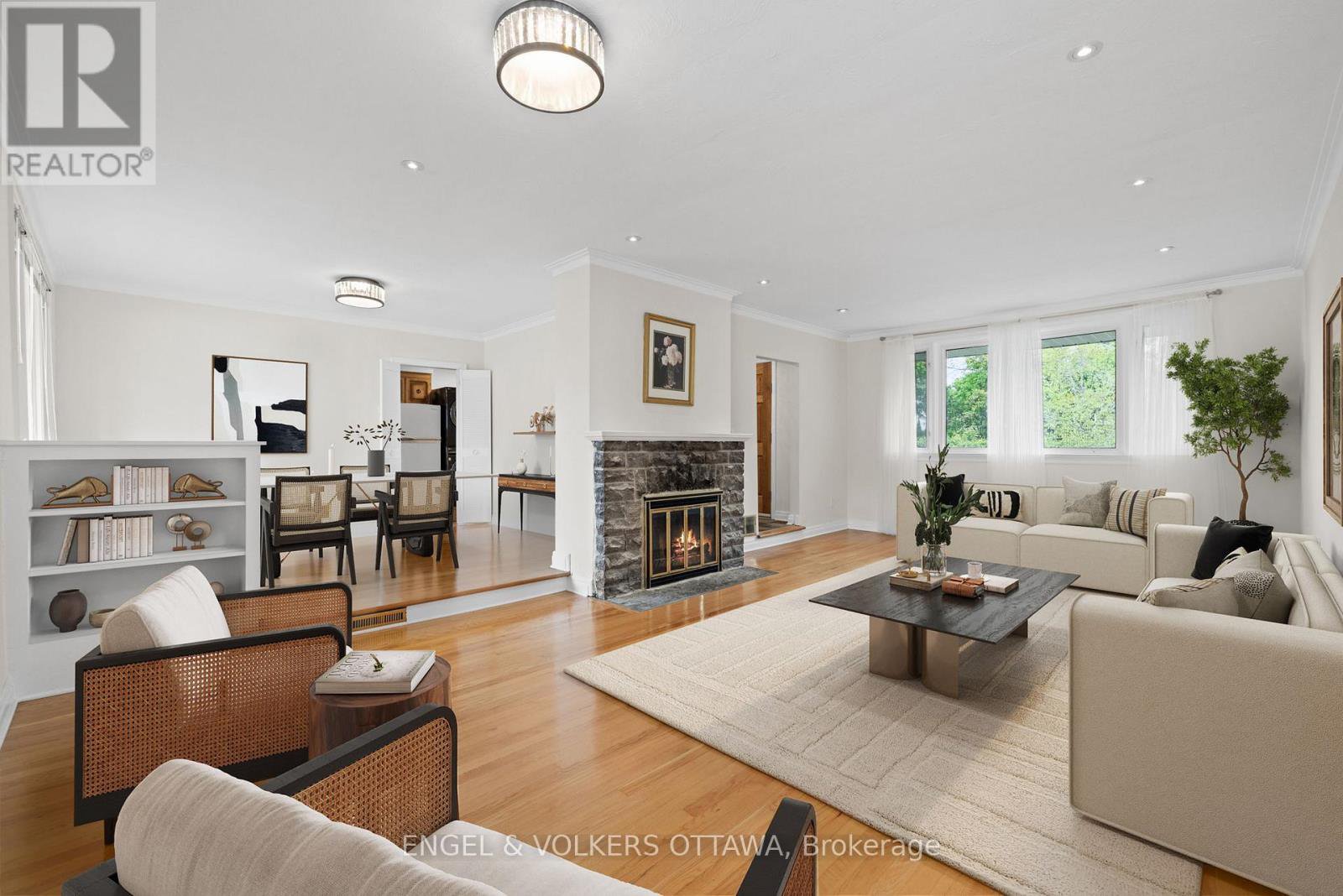 Proudly situated on a generous 127.77 ft x 113.5 ft corner lot at the intersection of Roger Road and Alta Vista, this beautiful stone bungalow offers timeless curb appeal and exceptional living in one of Ottawas most prestigious neighbourhoods.The main level welcomes you with a large circular driveway and a bright, spacious interior featuring newly finished hardwood floors, a functional eat-in kitchen with new quartz counter top, dining room and a cozy living room complete with a charming wood-burning fireplace. The sun-filled solarium provides the perfect spot to unwind while overlooking the private yard. Two well-sized bedrooms and a tastefully updated full bathroom complete this level.The fully finished lower level offers incredible versatility with a third bedroom, another updated bathroom, an expansive recreation room, and ample storage space ideal for growing families or those seeking extra room to work, relax, or entertain.Outside, enjoy the tranquil setting of mature trees, green space, and privacy . Double car garage with inside access. This prime location is close to top-rated schools, hospitals, shopping, parks, and just minutes to downtown Ottawa.