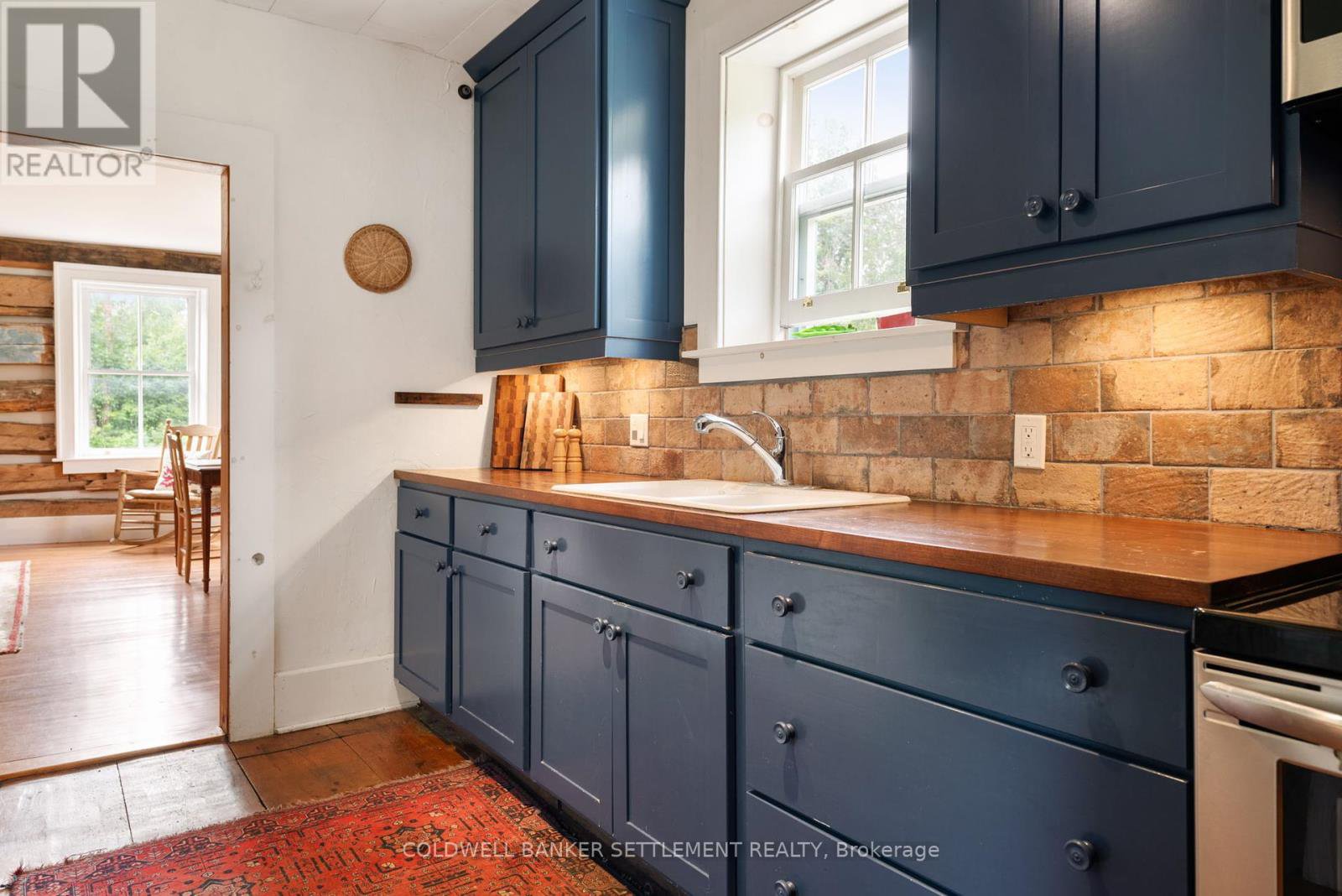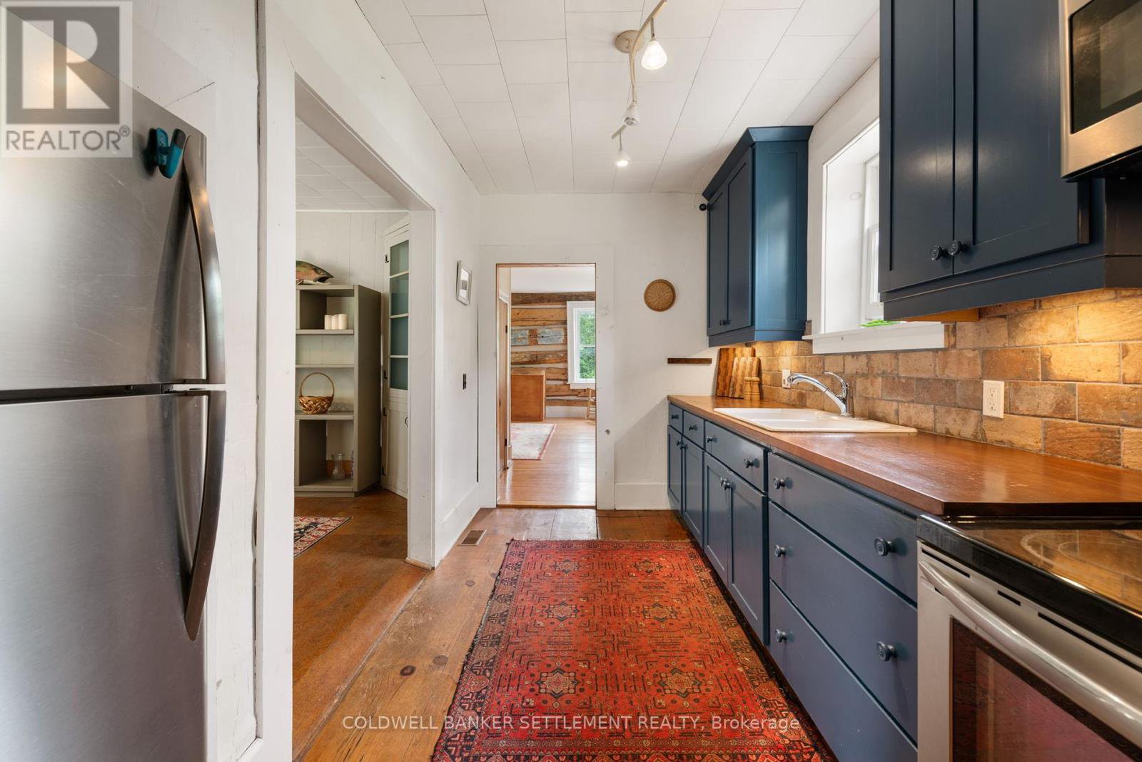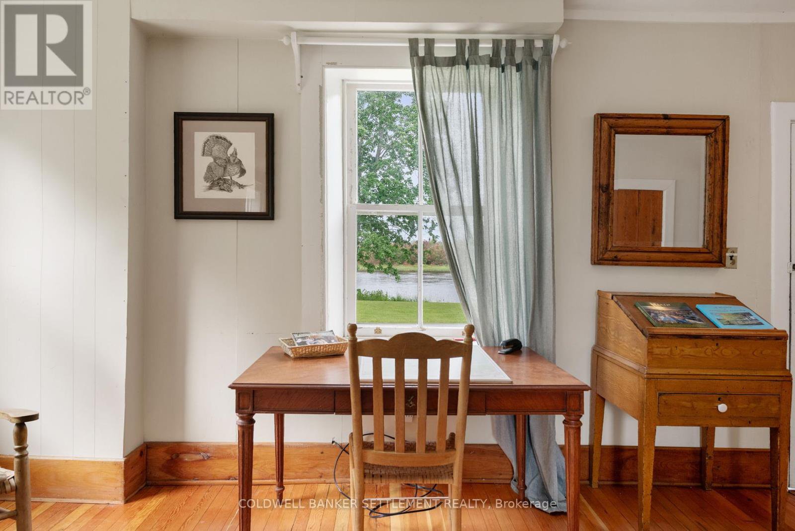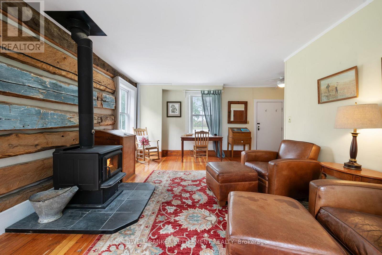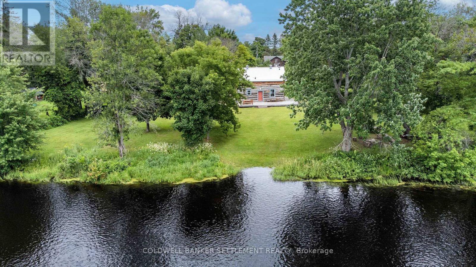 For the first time in generations, this cherished 3-bedroom squared log home is being offered for sale a rare opportunity to own a piece of local history. Passed down within the same family since the early 1800s, this four-season cottage or year-round home sits on a beautifully level two-acre lot with 200 feet of private Mississippi River frontage in the peaceful hamlet of Ferguson's Falls. Originally located adjacent to Ferguson's Falls Road, the historic log structure was carefully relocated to its current riverfront setting in 2009, at which time it was placed on a new poured concrete foundation, upgraded with a new septic system, and thoughtfully renovated to enhance comfort while preserving its heritage. The home features original wide-plank wood floors, exposed squared log walls, and a cozy wood stove in the living room, blending rustic charm with modern convenience. Upstairs you'll find three bedrooms, a 3-piece bath with custom shower, and a convenient laundry area. Ideal for every season, the property offers direct access to swimming, kayaking, canoeing, and fishing, with each time of year bringing its own beauty from warm summer days on the river to peaceful winters spent by the fire. A two-level barn with a concrete floor adds versatile space for storage, hobbies, or a workshop. Just 30 minutes from Terry Fox Drive, this riverfront retreat offers the perfect combination of privacy, history, and accessibility. Whether your seeking a full-time residence or a seasonal escape, this special home is ready to welcome its next generation.