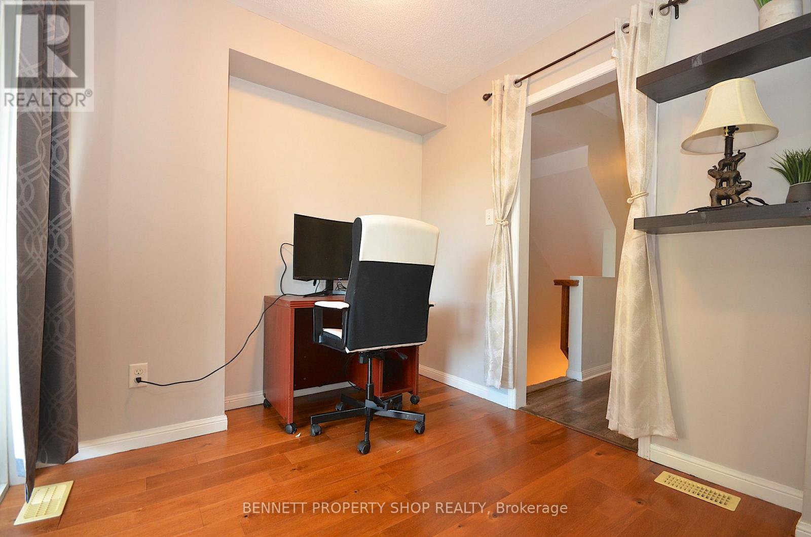 Fresh and bright freehold 3-storey townhome offering 3 bedrooms + den and 3 bathrooms in the family-friendly community of Arbeatha Park in Bells Corners, just minutes from the peaceful Stony Swamp forest and trails. The first level features a spacious den with access to the backyard and spacious deck, as well as inside entry from the single-car garage with automatic door. The light-filled second floor showcases an open-concept layout with living and dining area, a powder room, a modern kitchen with granite counters, and the convenience of second-floor laundry. Upstairs, three bedrooms and two full bathrooms provide comfort and privacy. The basement offers multiple areas for storage, adding functionality and convenience. Recent upgrades include luxury vinyl flooring (2022), smart thermostat (2022), central air (2022), and new eavestroughs (2024). The $76.31/month HOA covers landscaping and snow removal - no condo fees! Ideally located in Bells Corners, in close proximity to schools, shops, parks, amenities, transit, and just a short drive to DND Headquarters on Carling Avenue.