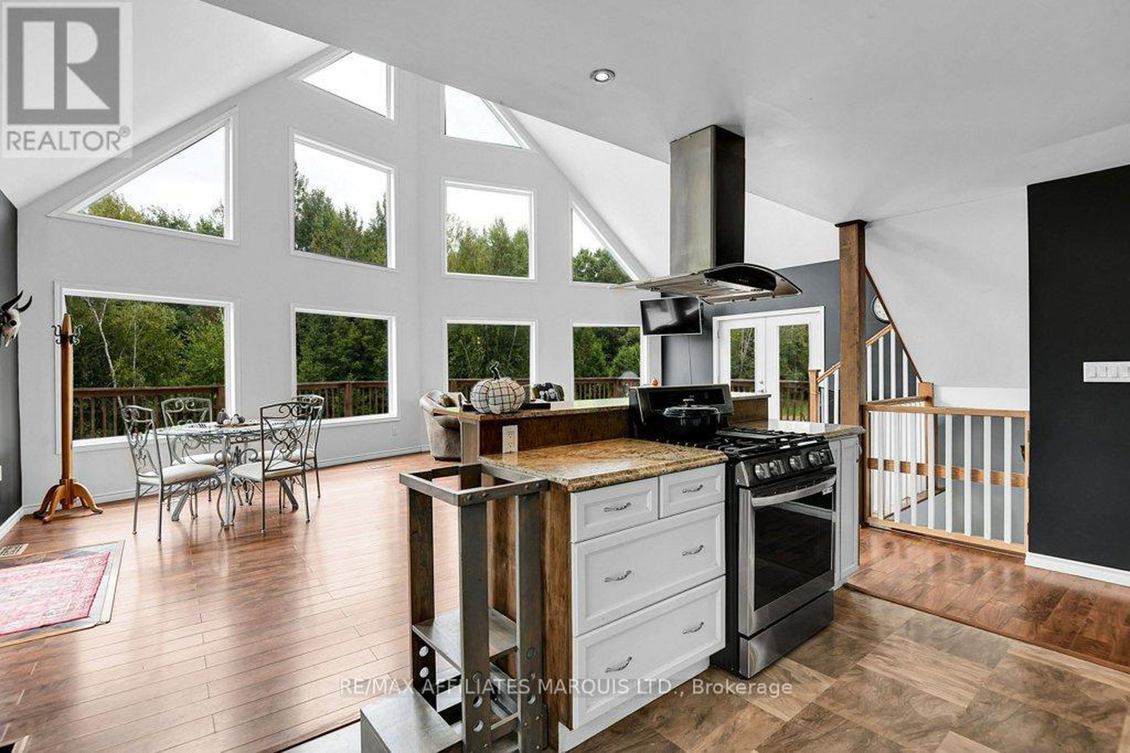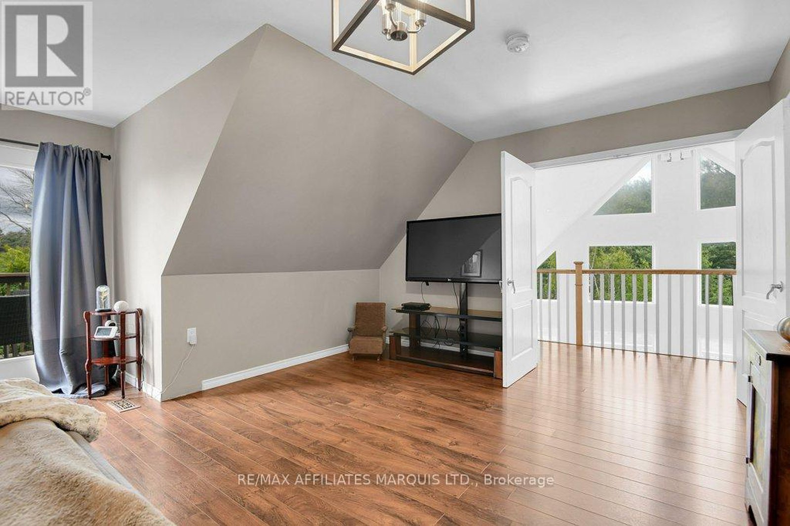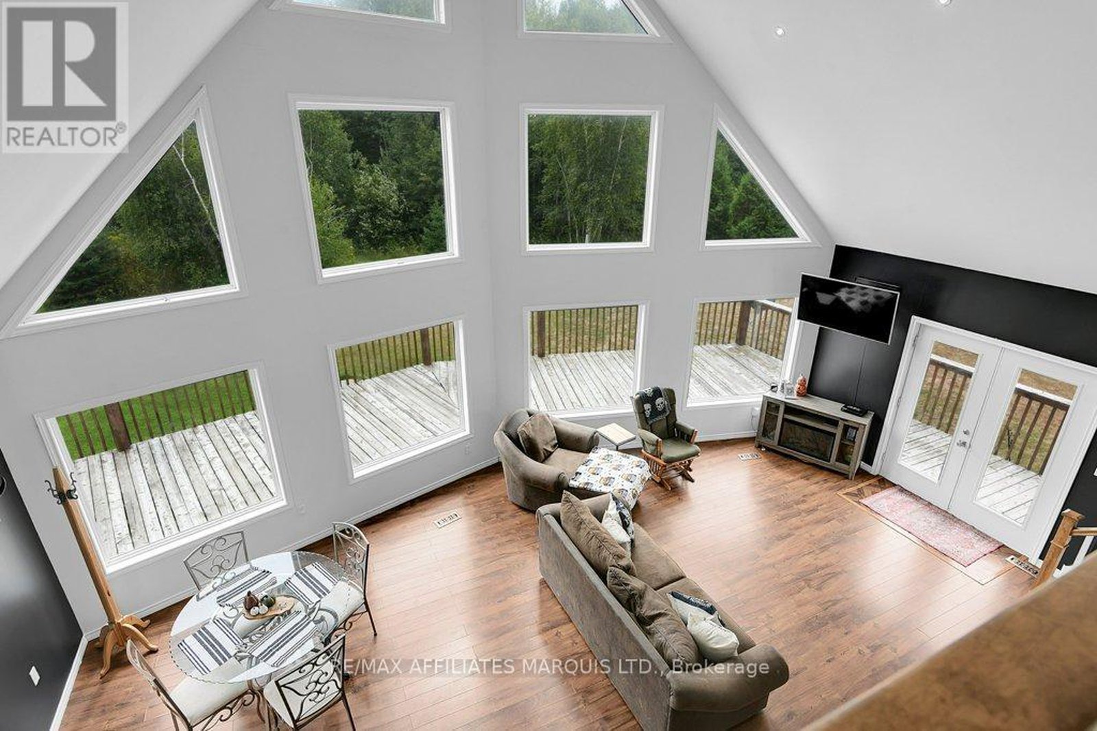 This stunning private A-frame home blends character, comfort, and seclusion in a truly unique setting. Soaring cathedral ceilings fill the interior with light, while the walk-out basement with heated floors offers both warmth and additional living space. The primary bedroom features a walk-in closet, a 3-piece ensuite, and its own balcony, the perfect spot for your morning coffee. With no rear neighbours and no neighbours in sight, youll enjoy complete privacy surrounded by nature. A peaceful creek winds through the property, adding to the tranquil atmosphere. The oversized two-car garage with loft provides ample storage or workshop potential, and the wrap-around deck invites you to relax, entertain, or simply take in the views. Whether you're seeking a cozy retreat or a year-round residence, this one-of-a-kind home is ready to welcome you.