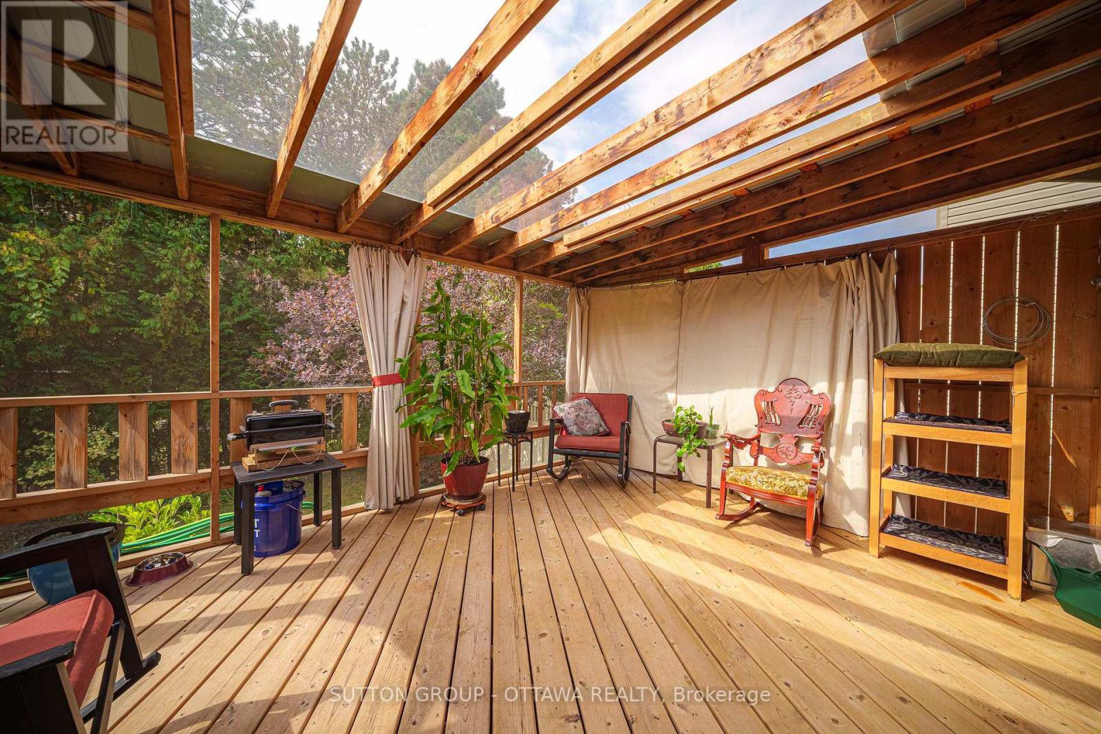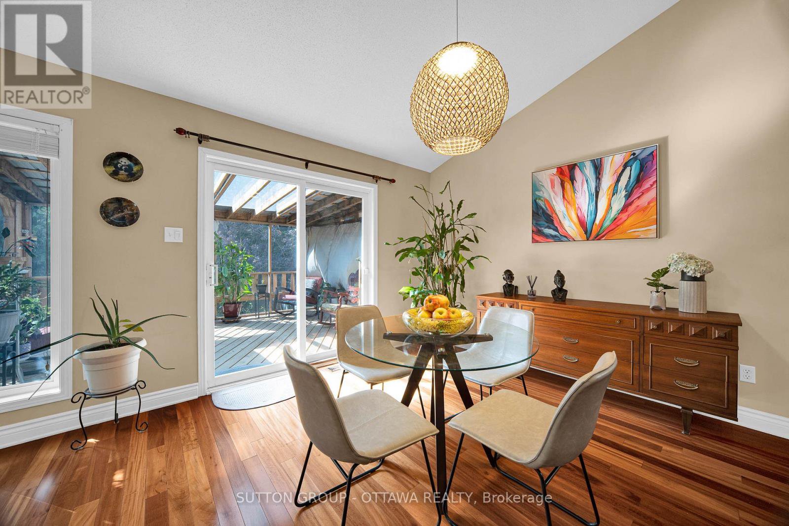 Welcome to 128 Annapolis Circle, a unique bungaloft in the heart of Hunt Club East! This home has so much to love, starting with its unbeatable setting, no direct rear neighbours and a backyard that's truly a gardeners dream, filled with perennials, mature trees, David Austin roses, peonies, and more, all carefully maintained by its long term owners. Step inside and you'll find an open-concept kitchen, dining, and living space, the true heart of the home, designed for gatherings big and small. Dramatic sloped and cathedral ceilings create an airy, architectural feel, while southwest-facing windows and a patio door flood the main level with natural light. Off the back, a cozy covered porch lets you enjoy your outdoor space without the company of bugsarguably the best feature in Ottawa summers! The main floor offers two generous bedrooms, including a rear retreat with soaring ceilings and views of the lush garden. Upstairs, the loft level feels like your own private floor, complete with a spacious bedroom, 5-piece ensuite, and a versatile open area perfect for a workspace, dressing table, or even a Pilates corner. The basement adds even more living potential with 9-foot ceilings in the main areas, a full bathroom, and loads of space to customize to your lifestyle. With privacy, charm, and a backyard paradise, this home is a rare find and a perfect match for anyone who wants something a little out of the ordinary. AC & Furnace 2025