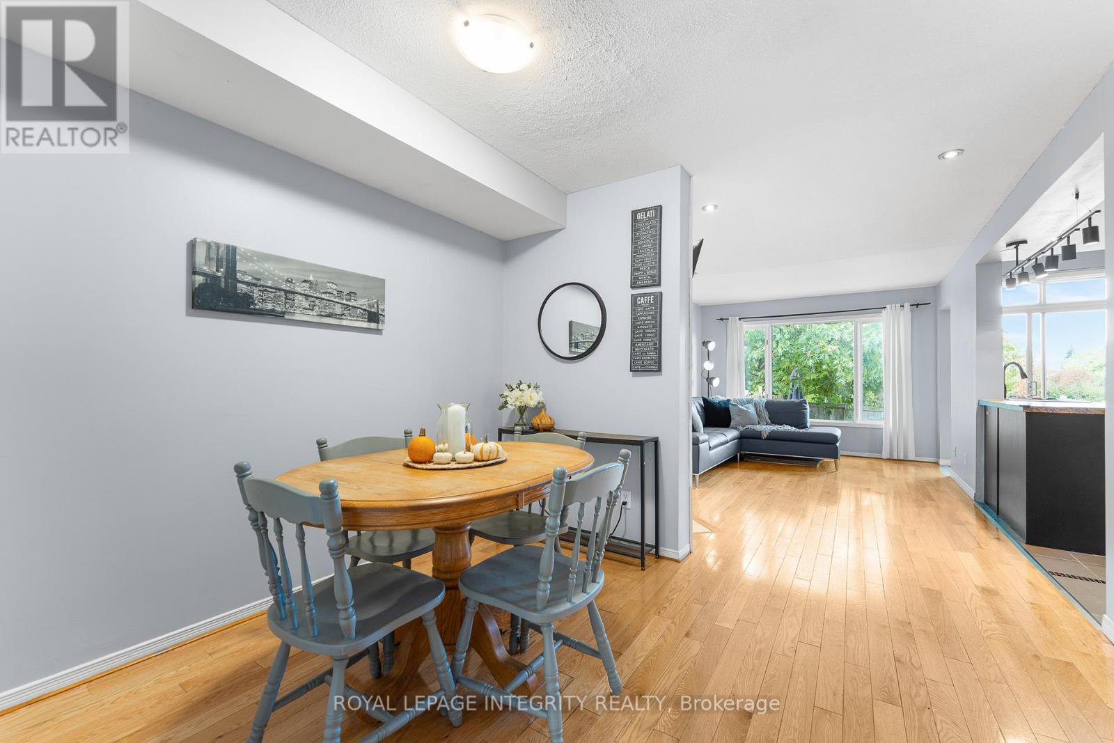 Welcome to this well-situated 3-bedroom, 2.5-bath townhome in the heart of Kanata. Perfectly located near transit, schools, shopping, and everyday conveniences, this home offers both comfort and potential. The open-concept main floor features a bright living and dining area, complete with an updated fireplace that adds warmth and character. The functional kitchen overlooks the space, making it easy to stay connected while entertaining. Upstairs, the spacious primary bedroom includes a 4pc ensuite and walk-in closet, complemented by two additional bedrooms and a full bathroom. The lower level offers storage and a versatile recreation room ideal for a home office, playroom, or media space. Enjoy added privacy with no rear neighbours and a low-maintenance yard.