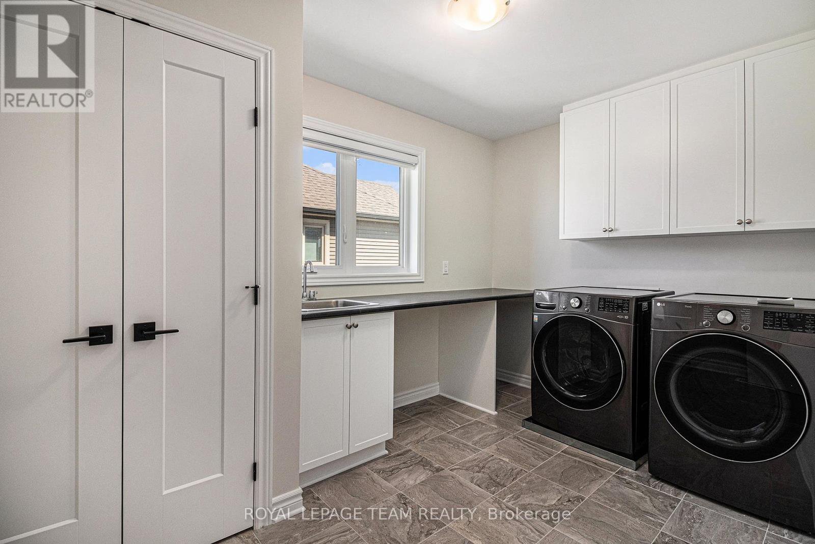 Welcome to this stunning 4-bedroom, 4-bathroom home in the family-friendly community of Russell. Designed with style and functionality in mind, this home features hardwood and tile flooring throughout the main and second levels, offering a seamless blend of elegance and durability. The inviting living area is centered around a cozy fireplace, perfect for relaxing evenings with family and friends. The chef-inspired kitchen is a true showpiece, complete with a spacious island, Thermador 36 6-burner gas cooktop, Bosch Benchmark wall oven, Bosch dishwasher, and French door refrigerator. Every appliance has been carefully selected for quality and efficiency, making this kitchen ideal for everyday living and entertaining. The second floor features 4 generously sized bedrooms, 4 well-appointed bathrooms, and a layout that blends open-concept living with private retreats, this home offers the perfect balance for modern family life. The premium laundry room is equipped with an LG 5.2 cu. ft. front-load washer and matching steam-clean dryer, offering both convenience and performance. Additional highlights include a 25-year warranty centralized vacuum system. Located in the heart of Russell, close to schools, parks, and amenities, this home is ready to welcome its next chapter.