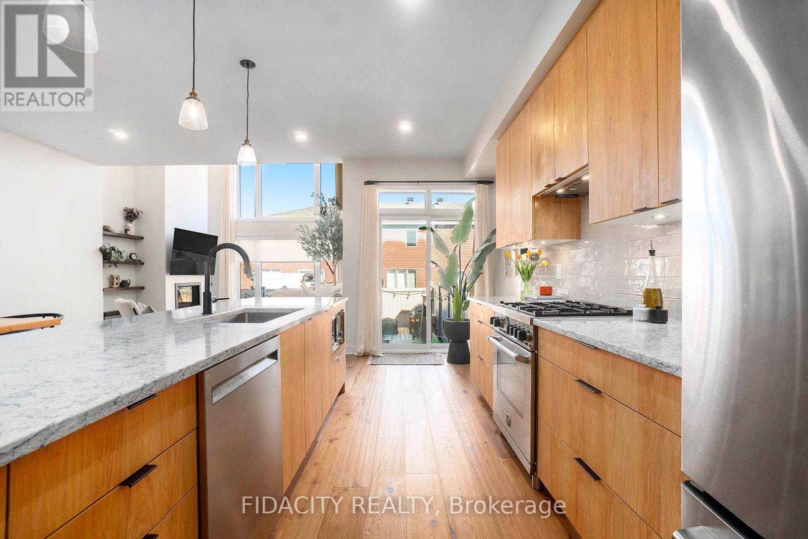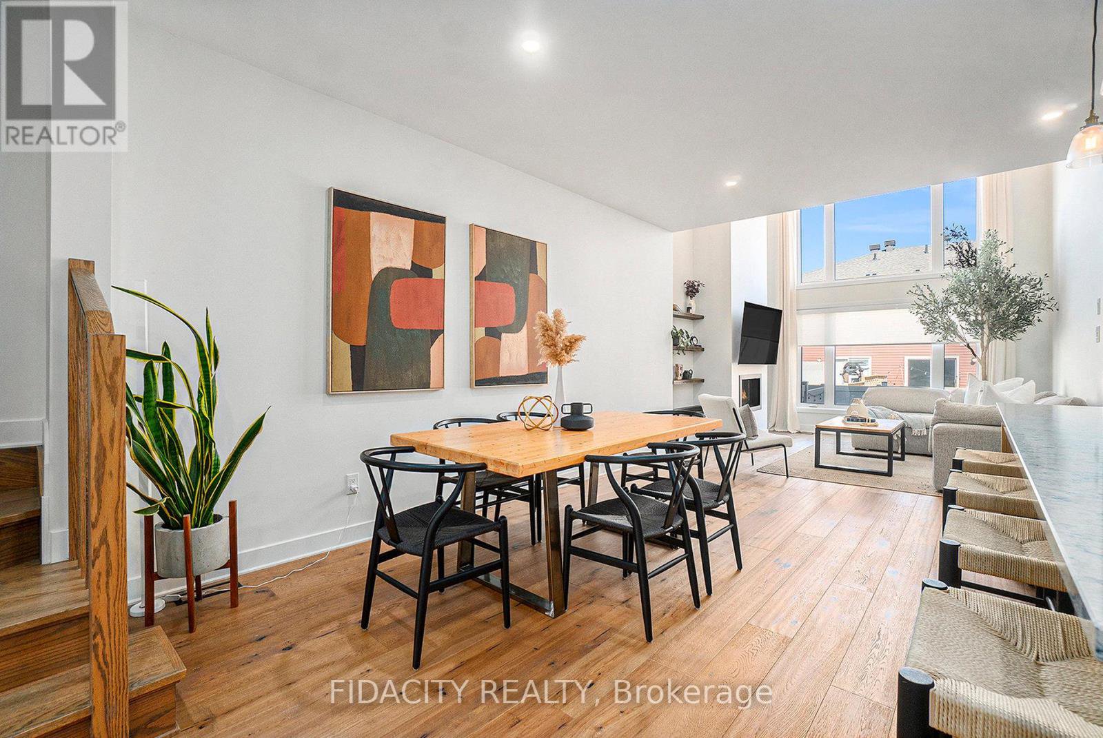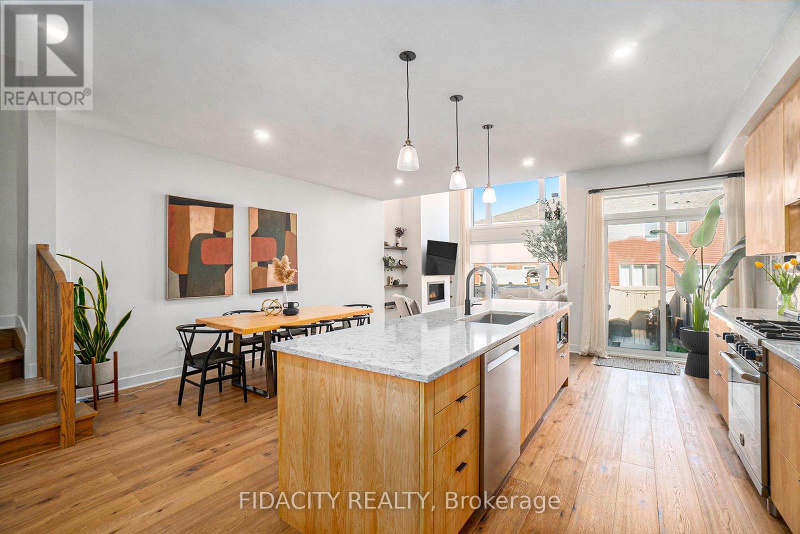 712 Twist Way represents the pinnacle of townhome living in the sought-after community of Blackstone. Constructed by renowned builder Urbandale, this luxurious home is loaded with high-end finishes and thoughtful upgrades throughout. A spacious foyer and mudroom welcome you into the main level, where 7" oak hardwood flooring flows throughout. The custom Laurysen kitchen is a true showpiece, featuring soft-close oak cabinetry, a 10' quartz island with breakfast bar, built-in hood insert, custom coffee bar with open shelving and wine fridge, gas Bertazzoni range, under-cabinet lighting, pots and pans drawers, microwave insert, and a walk-in pantry. The open-concept design offers ample room for a full dining table and overlooks the stunning living area, where floor-to-ceiling windows soar two stories high, flooding the space with natural light. A modern gas fireplace with a full-height feature wall and open shelving adds warmth and style. Up the hardwood staircase, you will find three spacious bedrooms, a loft with Juliet balcony, laundry, and a secondary bath with quartz counters and black fixtures. The primary suite fits a king-size bed and features a custom accent wall, limewashed details, blackout blinds, a walk-in closet with built-ins, and a spa-like ensuite with quartz counters, black hardware, and a standalone glass shower with niche. The fully finished lower level offers great natural light, an accent wall, and a bathroom rough-in, perfect for future use. The backyard is fully fenced with PVC fencing, a beautifully landscaped yard, and a deck ideal for entertaining. Additional features include a garage with 240V EV charger outlet, two-car driveway, and upgrades throughout from interior doors and high end lighting down to the small details like custom floor vents have been elevated. Located near amazing schools, transit, shopping, and more- this is Blackstone living at its finest!
