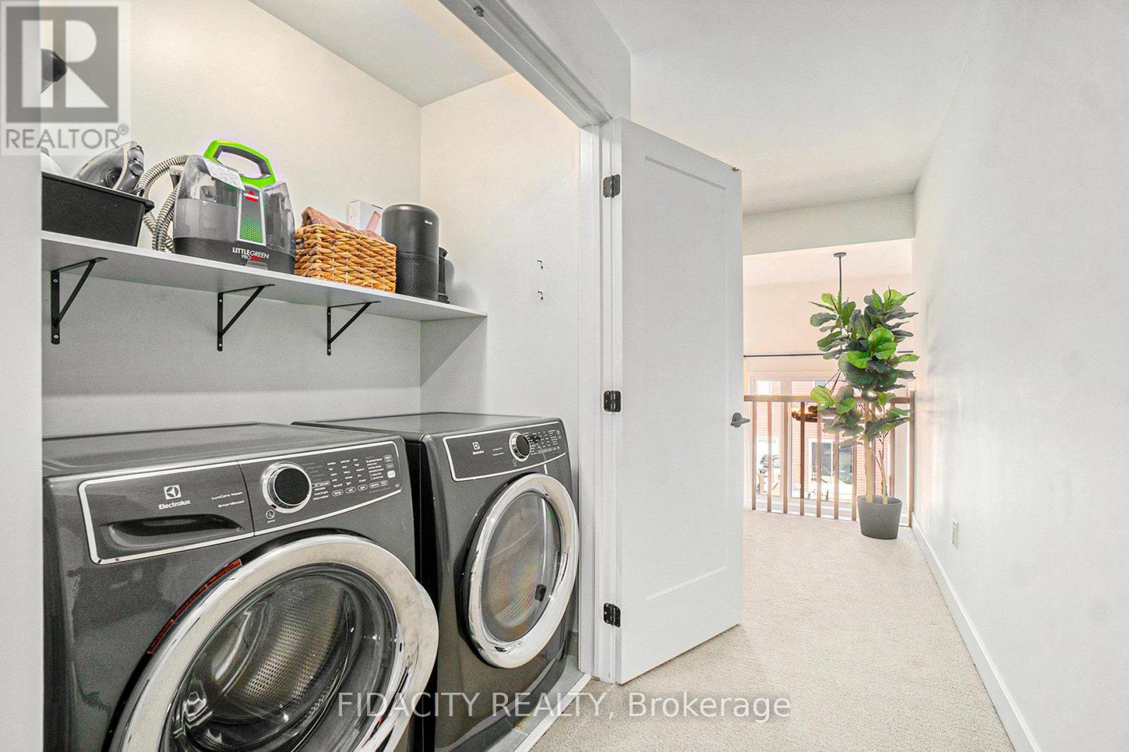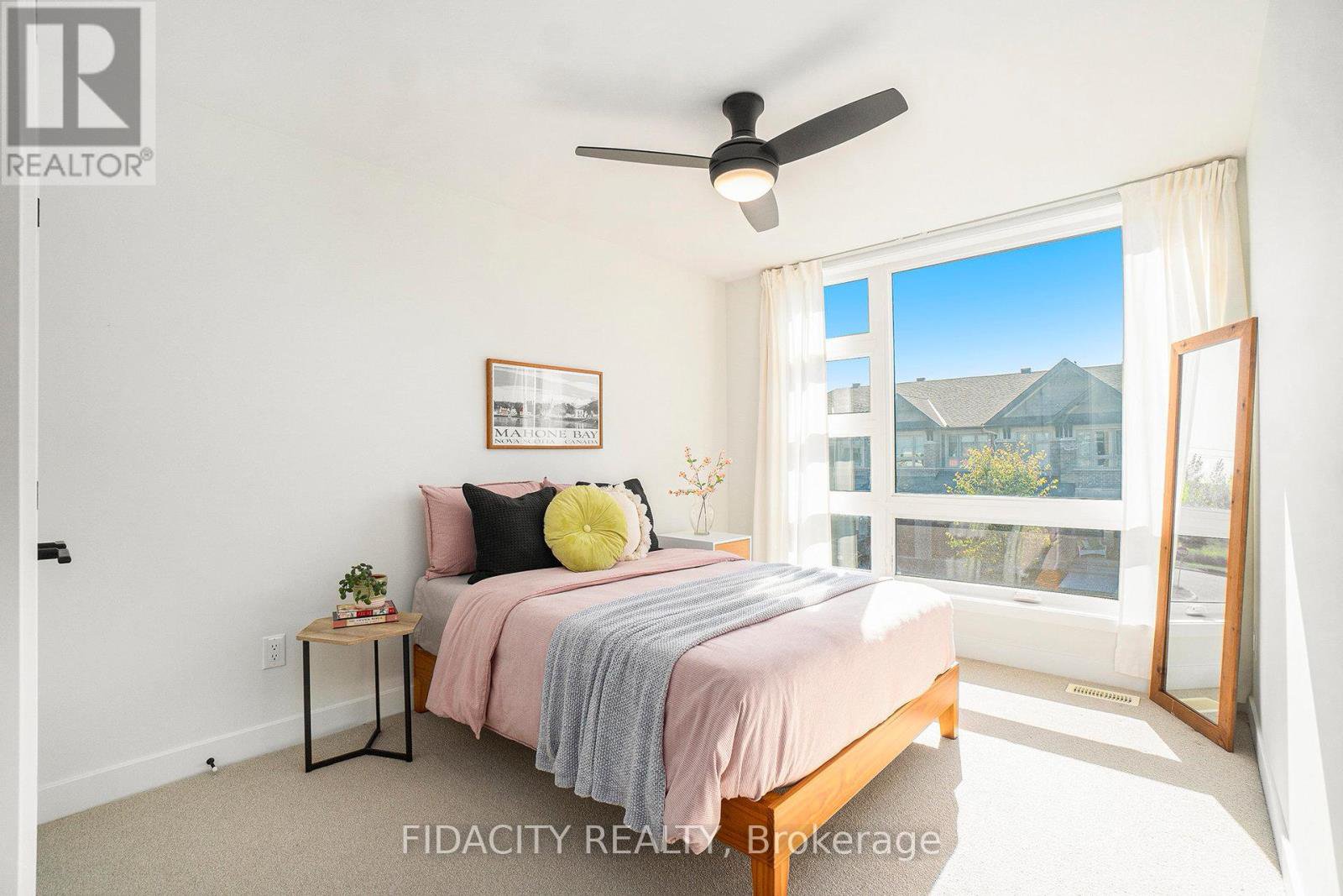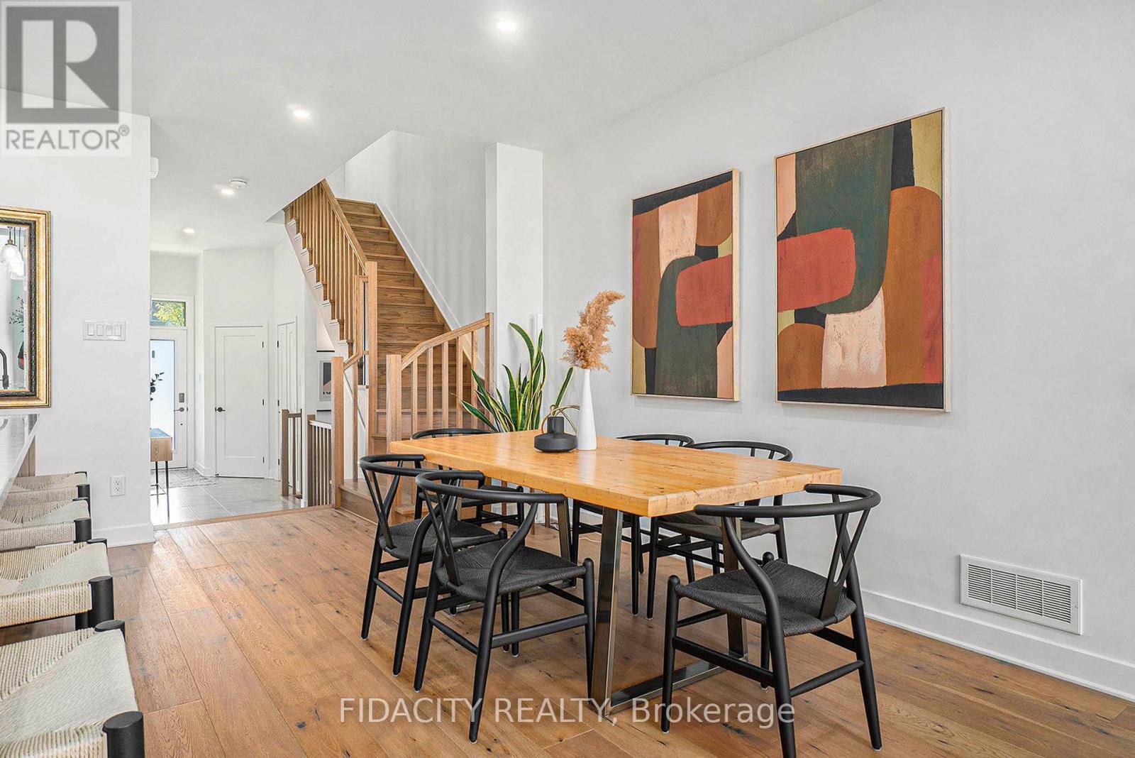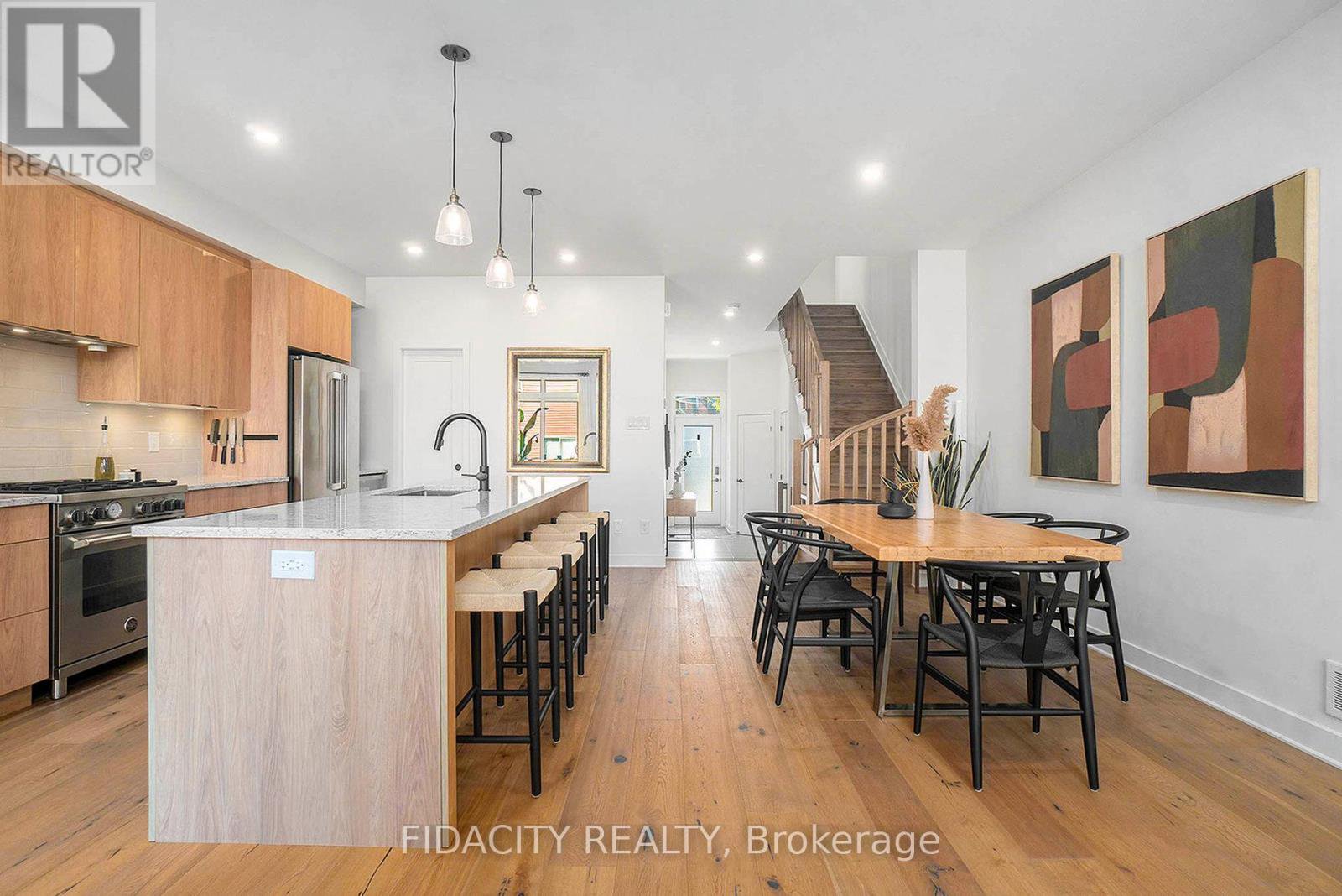 712 Twist Way represents the pinnacle of townhome living in the sought-after community of Blackstone. Constructed by renowned builder Urbandale, this luxurious home is loaded with high-end finishes and thoughtful upgrades throughout. A spacious foyer and mudroom welcome you into the main level, where 7" oak hardwood flooring flows throughout. The custom Laurysen kitchen is a true showpiece, featuring soft-close oak cabinetry, a 10' quartz island with breakfast bar, built-in hood insert, custom coffee bar with open shelving and wine fridge, gas Bertazzoni range, under-cabinet lighting, pots and pans drawers, microwave insert, and a walk-in pantry. The open-concept design offers ample room for a full dining table and overlooks the stunning living area, where floor-to-ceiling windows soar two stories high, flooding the space with natural light. A modern gas fireplace with a full-height feature wall and open shelving adds warmth and style. Up the hardwood staircase, you will find three spacious bedrooms, a loft with Juliet balcony, laundry, and a secondary bath with quartz counters and black fixtures. The primary suite fits a king-size bed and features a custom accent wall, limewashed details, blackout blinds, a walk-in closet with built-ins, and a spa-like ensuite with quartz counters, black hardware, and a standalone glass shower with niche. The fully finished lower level offers great natural light, an accent wall, and a bathroom rough-in, perfect for future use. The backyard is fully fenced with PVC fencing, a beautifully landscaped yard, and a deck ideal for entertaining. Additional features include a garage with 240V EV charger outlet, two-car driveway, and upgrades throughout from interior doors and high end lighting down to the small details like custom floor vents have been elevated. Located near amazing schools, transit, shopping, and more- this is Blackstone living at its finest!