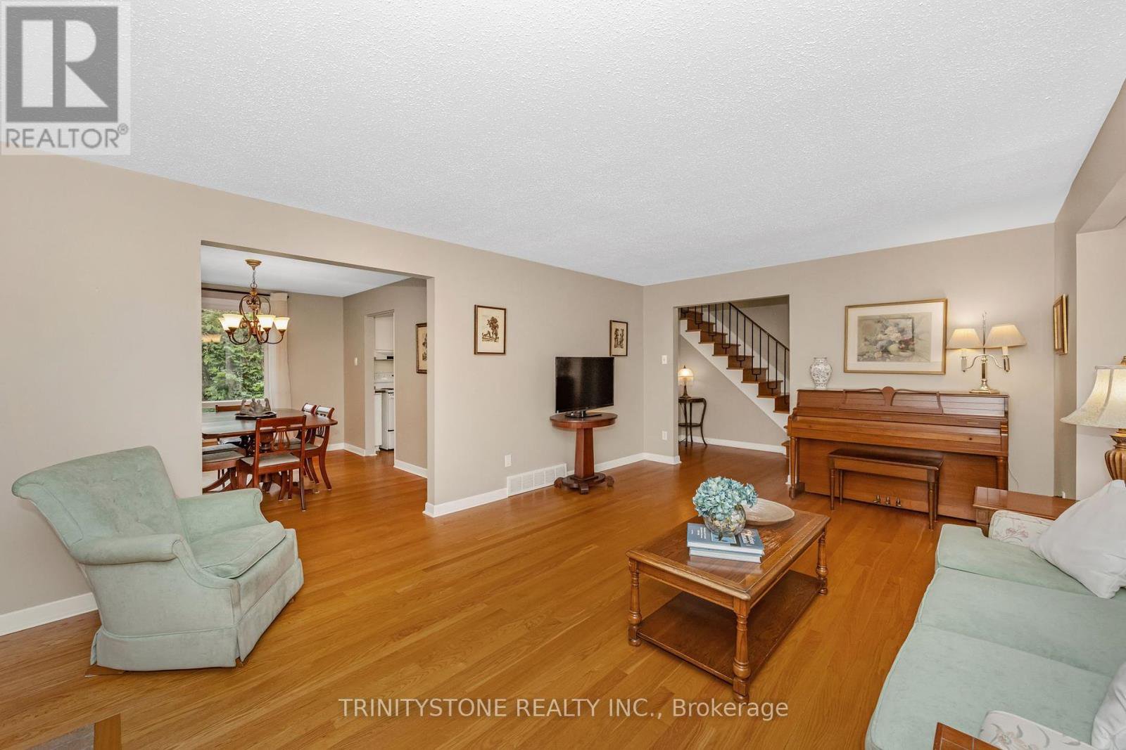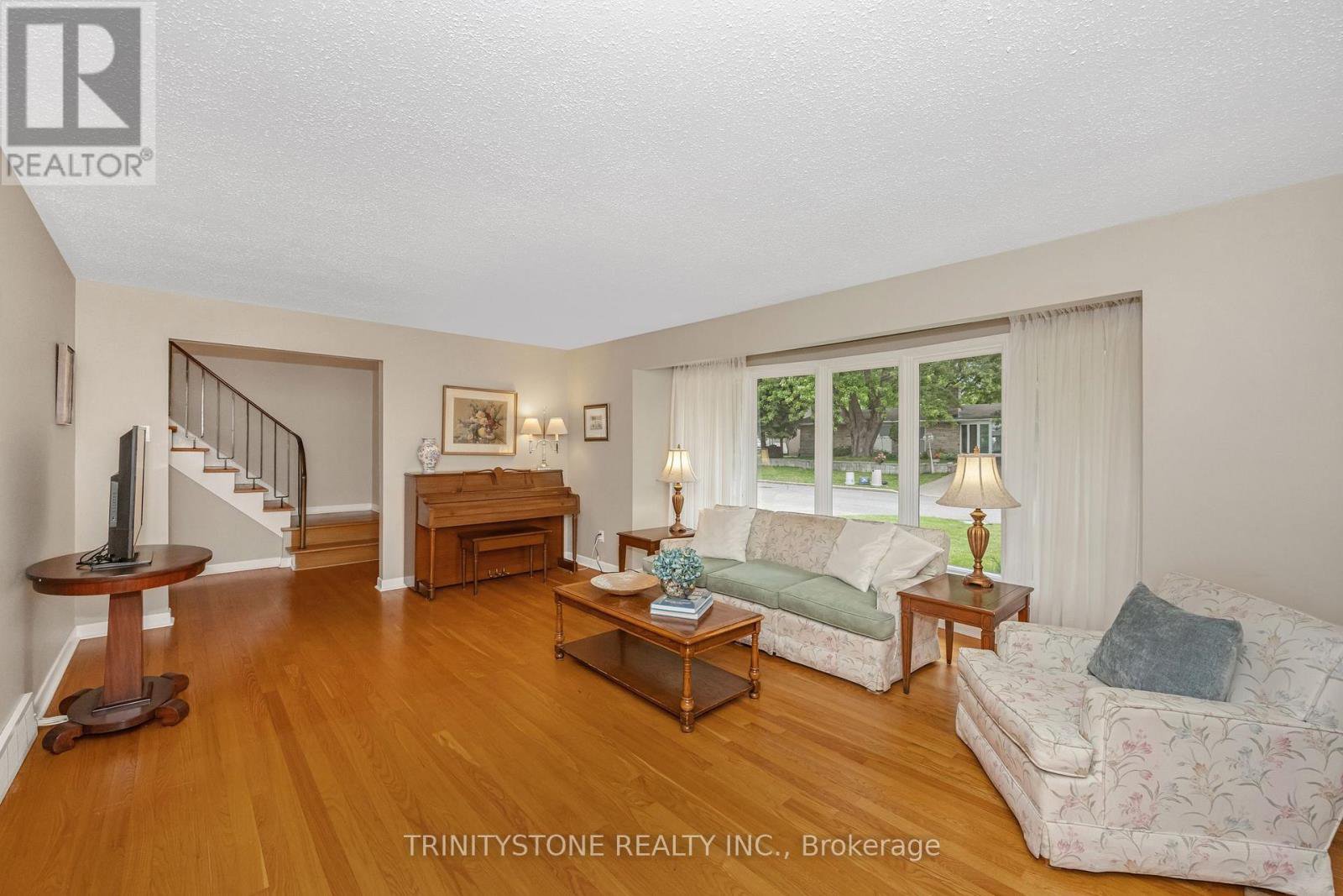 **OPEN HOUSE SATURDAY OCT 4TH 2-4PM** Located in a a quiet, upscale family oriented neighborhood, this meticulously maintained home shows pride of ownership throughout, and has been lovingly cared for by its original owners. Step inside to a bright and airy main floor featuring beautiful oak hardwood flooring and an inviting living room complete with a cozy wood burning fireplace. The spacious layout seamlessly connects to a formal dining area and a well-kept kitchen with double sinks, original cabinetry freshly painted white, and classic laminate countertops. A convenient 2-piece powder room with laundry completes the main level. Upstairs, you'll find hardwood flooring throughout and four generously sized bedrooms, each with its own closet. A large 5-piece main bathroom offers double sink and plenty of space. The large fully fenced backyard is a true highlight private, lush, and perfect for entertaining, with a stone patio and endless possibilities for outdoor enjoyment. Don't miss your chance to own a lovingly cared-for home just steps from a park and minutes to Bayshore Mall, Schools, Shopping, and the Queensway. Notable updates include: Furnace is owned (2011). Oak hardwood floors throughout. Hardwood flooring upstairs. Age of A/C (2017). Age of Roof (2016). Most windows replaced in 2009, others original to home. Minor repairs/updates throughout the years of home ownership (painting, oak floor refinished, toilets and sinks replaced in half bath and main bathroom upstairs, kitchen laminate counters, double sink, light fixtures updated, kitchen cabinets painted white yet original to home). Driveway sealed (2025). Powder room updated (2025). Main Bath updated (light fixtures, knobs, bathtub refinished, 2025). **Updates have been made to the home and property since the original video was taken**