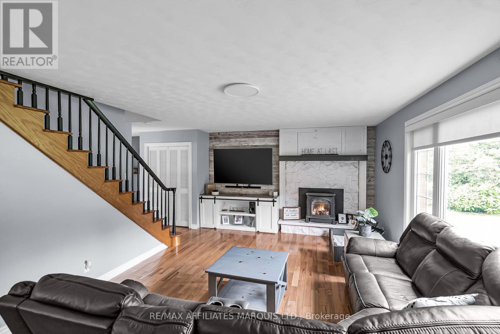 Welcome to this charming country retreat set on 2.98 acres of natural beauty, just a short drive from Cornwall. A long, private laneway leads you to a tranquil setting complete with a scenic pond home to turkeys, fish, and frogs surrounded by mature trees, including apple trees, that provide both privacy and beauty.Inside, this well-maintained home offers comfort and convenience at every turn. The main level features a cozy propane fireplace in the living room, a spacious dining area, a bright kitchen that overlooks the screened-in porch and expansive backyard, and a convenient 2-piece bathroom. Main-floor laundry, central vacuum, and interior access to the attached garage add extra ease to daily life.Upstairs, youll find four generous bedrooms and a full bathroom. The primary suite is a standout with his-and-hers closets, a cedar closet, and a private 3-piece ensuite.The fully finished basement includes a utility room, ample storage space, and direct access to the garage ideal for practicality and organization. Additional features include a durable metal roof and a new heat pump (2024) for efficient year-round comfort. A backyard shed adds even more outdoor storage.This is a rare opportunity to enjoy peaceful, scenic country living with all the modern features just minutes from town. Come see it for yourself! 24 Hour Irrevocable on all offers. First Refusal : 48 hours