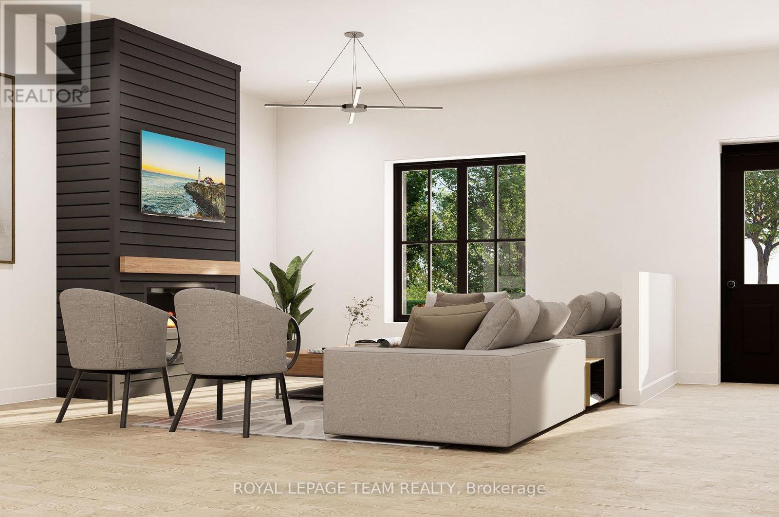 Immediate/Late 2025 Occupancy Available! Welcome to your dream home, a brand-new construction masterpiece by Archstone Homes in the tranquil community of Oxford Mills (just minutes from Kemptville). This stunning 3-bedroom, 2-bathroom residence offers the ultimate blend of luxury finishes and natural serenity, backing directly onto the beautiful Kemptville Creek, all secured by a full Tarion Warranty. Enjoy the convenience of the location with just a short walk to Oxford On Rideau Public School, Brigadoon Restaurant, and the scenic Oxford Mills Dam. Inside, the home boasts premium upgrades like elegant engineered hardwood throughout the main living space and stylish ceramic tile in wet areas; the upgraded kitchen is a chef's delight with a large central island, luxurious quartz countertops, and a generous pantry, flowing openly to the living area complete with a cozy propane fireplace. Curb appeal is enhanced by a welcoming front porch, while the backyard is an entertainer's paradise with a huge back deck offering a stunning, private creek view. Practicality meets luxury with a two-car garage and a bright walkout lower level that features a roughed-in bathroom, offering tremendous potential for easily adding significant finished living space (ask about finishing options!); this home truly offers an exceptional lifestyle in a breathtaking setting, and a portion from every sale benefits the Beth Donavan Hospice. Showings by appointment only.