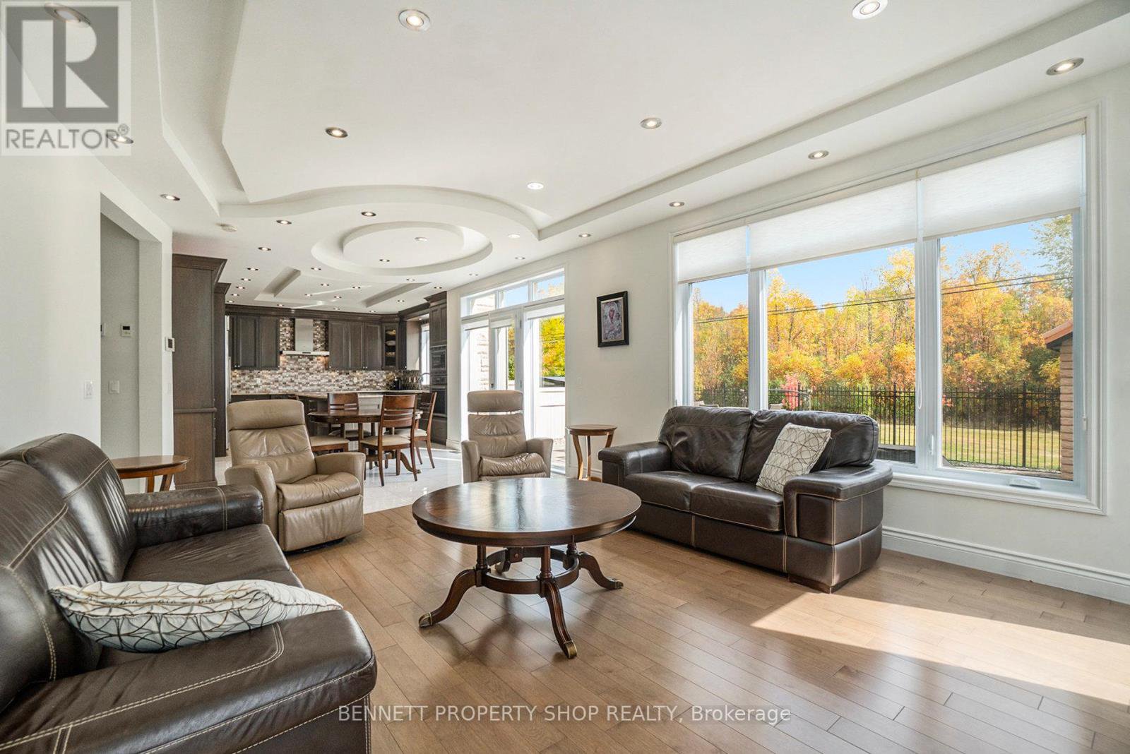 Nestled on one of Alta Vistas most prestigious streets, this custom-built 5 bed, 5 bath luxury home (including 2 ensuites) offers refined elegance and thoughtful functionality for the most discerning buyer. Backing onto tranquil green space with no rear neighbours, enjoy unmatched privacy and serenity in a home that blends sophisticated design with family-friendly living. Step through grand arched doors into a spacious formal living room with gleaming hardwood floors and timeless charm. The extended dining room is ideal for entertaining, with space for large gatherings or intimate family dinners. At the heart of the home is a gourmet kitchen designed for both style and function, boasting top-tier appliances, custom cabinetry, expansive counters, and a layout perfect for hosting. East-facing windows flood the main level with natural light and offer serene views of the beautifully landscaped backyard, a private oasis with lush gardens and elegant hardscaping. A stunning spiral staircase leads to 4 generous bedrooms upstairs. The primary suite is a true retreat, complete with an oversized walk-in closet and a spa-like 5-piece ensuite. Each bedroom offers ample closet space and access to well-appointed bathrooms. The lower level adds incredible versatility with a wet bar, large den ideal for a home theatre or office, gym space, full bathroom, and an additional bedroomperfect for guests or extended family. Located minutes from top hospitals, Bank Street, Highway 417, parks, and walking paths, this home provides ultimate convenience. With architectural elegance, practical luxury, and thoughtful detail throughout, this Alta Vista gem offers a rare opportunity for refined living in one of Ottawas most coveted neighbourhoods.