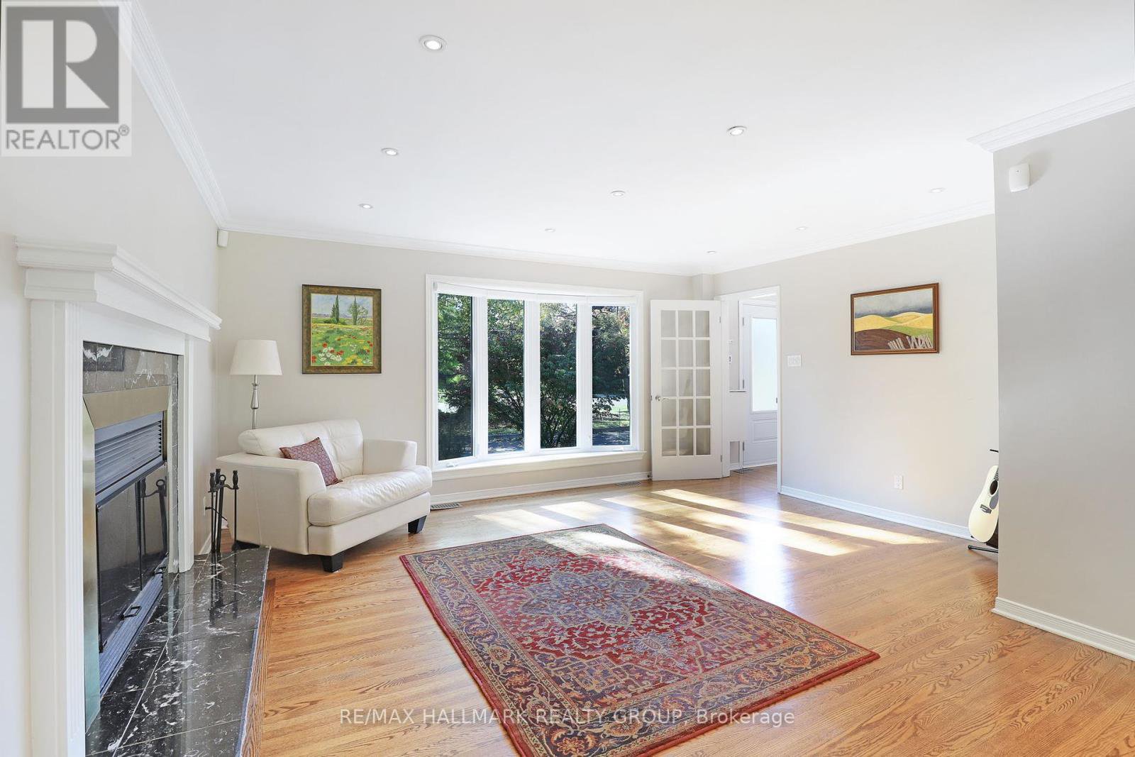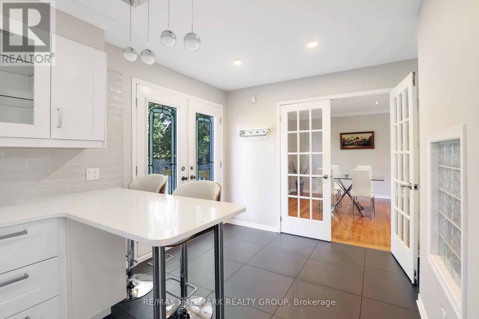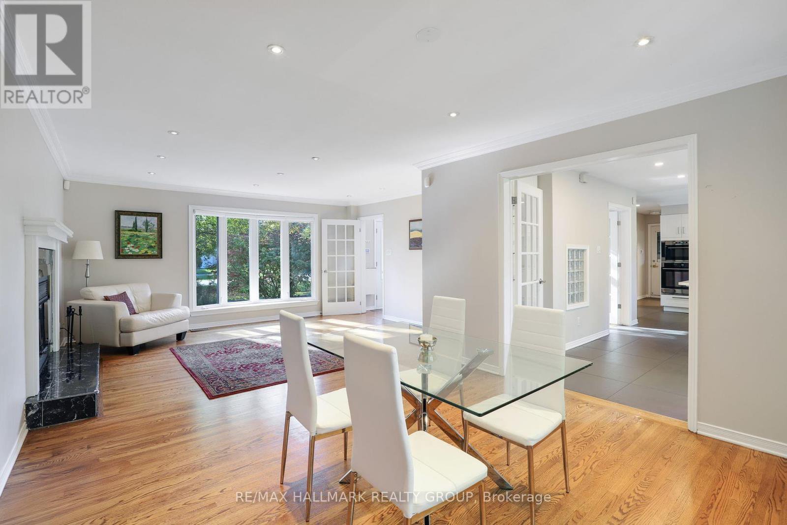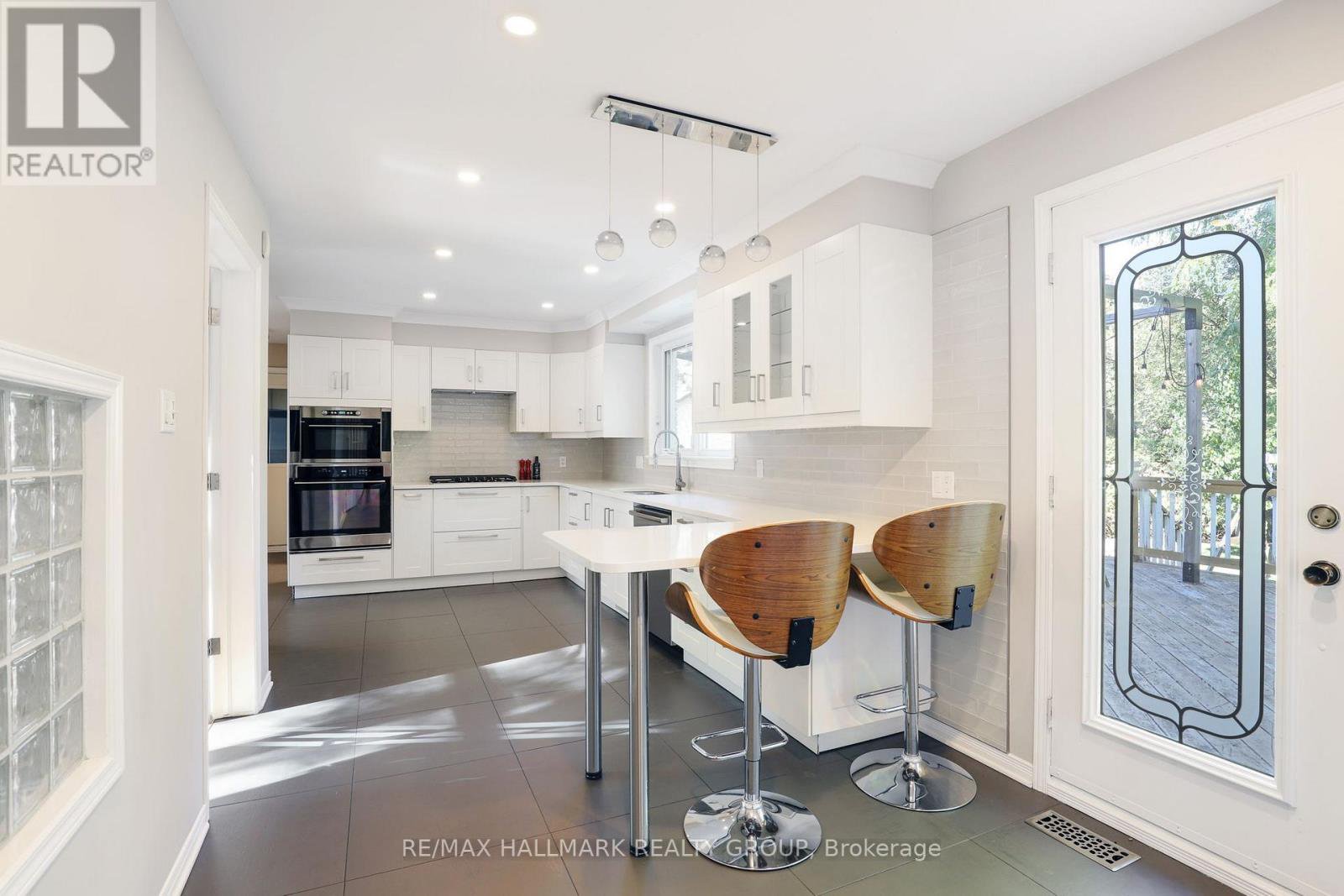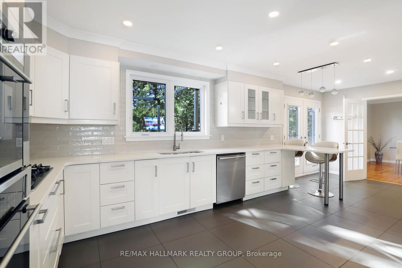 Welcome to the prestigious Revelstoke community! Set on an impressive 1/3 acre (126x146 irregular) lot with a rare circular drive, this 3+1 bedroom, 3.5 bathroom executive home combines estate-like living with the convenience of a central location and steps to Mooney's Bay and loads more recreation. Framed by mature trees and landscaped gardens, the private setting offers a perfect retreat for family life or professional entertaining. Generously sized rooms define the home, from the expansive living and dining areas to the updated chef's kitchen with quartz countertops, stainless steel appliances, and custom cabinetry. A sun-filled family room opens to a cedar deck and sprawling yard ideal for gatherings, children at play, or simply enjoying the park-like surroundings. Plenty of room for a pool! Upstairs, three large bedrooms include a luxurious primary suite with walk-in closet and ensuite, while the fully finished lower level adds versatile living space for a home office, recreation, or guest accommodations. Recent updates include a new roof (2024), bathrooms (2023), tankless water heater (2023), blinds (2022), and AC (2022). The oversized lot also features a pass-through laneway surrounded by gorgeous mature trees and manicured gardens, maximizing outdoor enjoyment and beauty. With easy access to downtown, the airport, top schools, and scenic trails, this home offers rare space and privacy in one of Ottawa's most desirable neighbourhoods. Perfect for those seeking a balance of size, setting, and location and convenience.