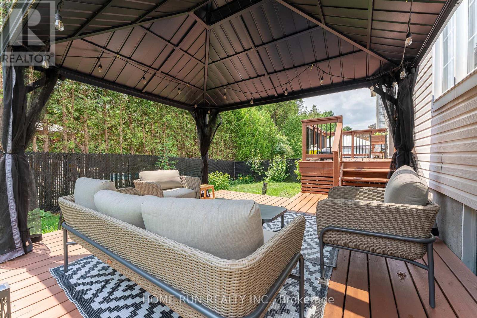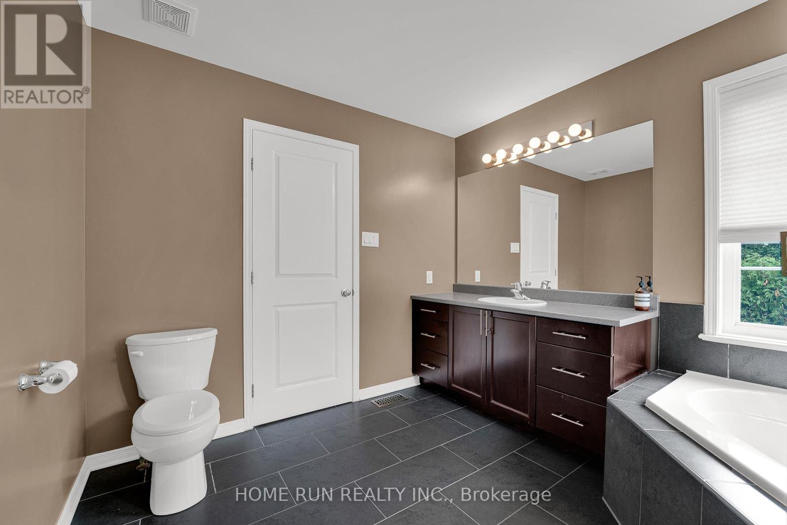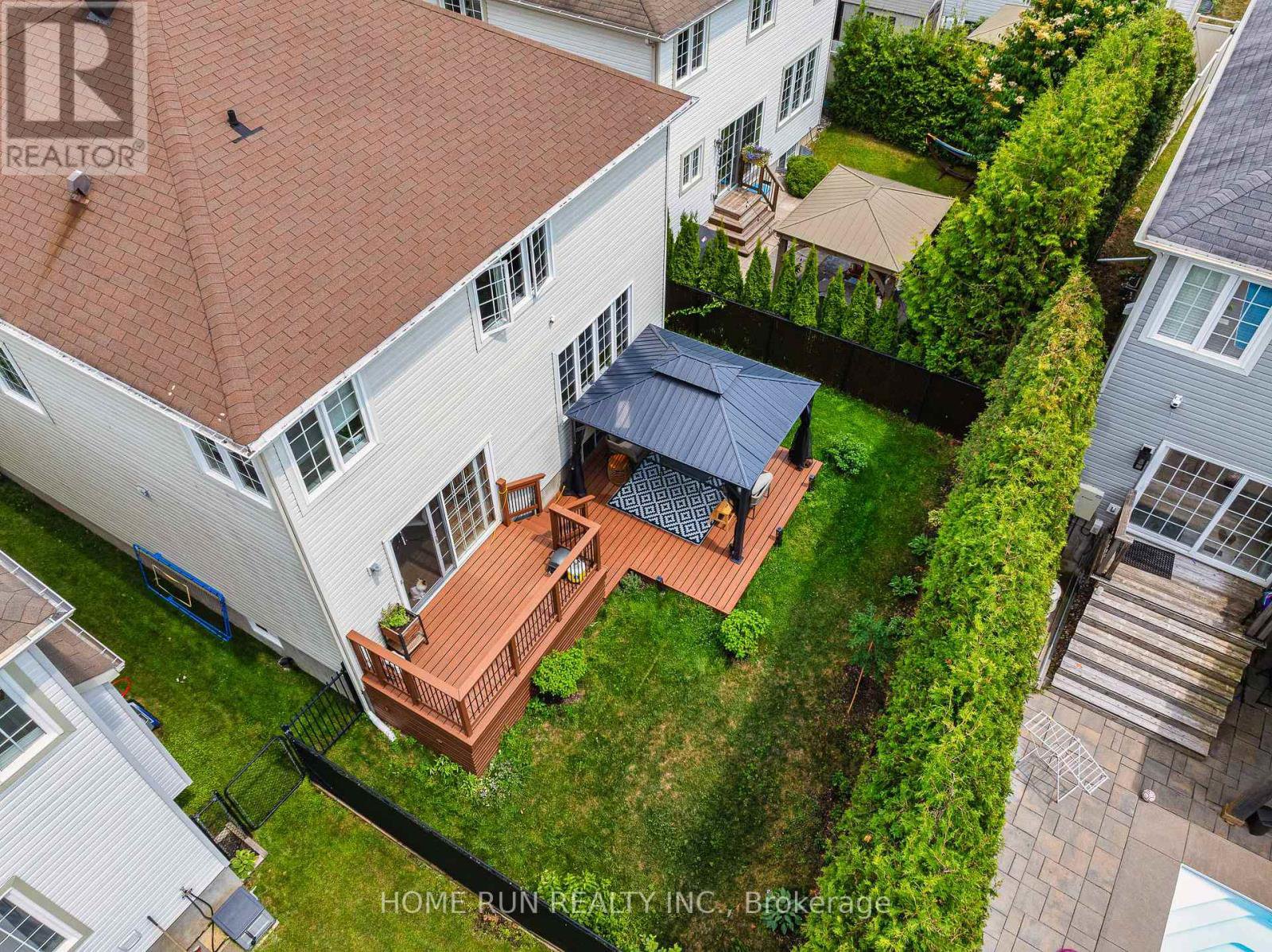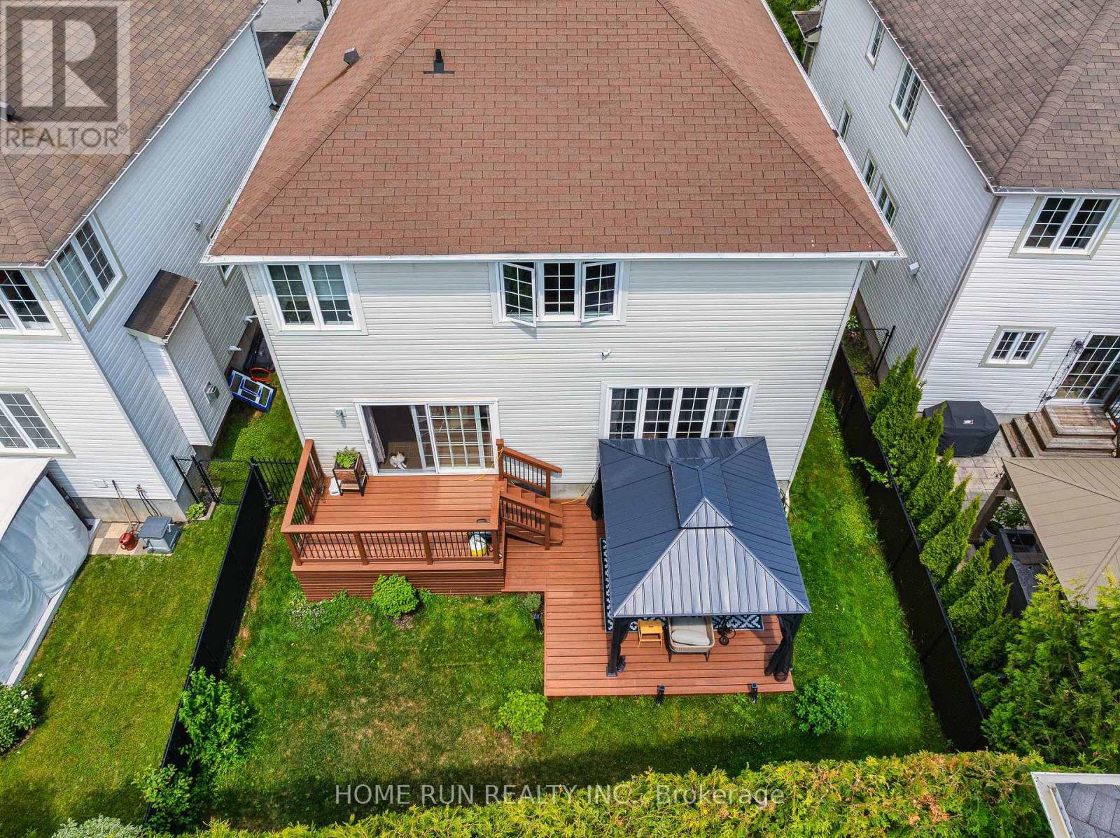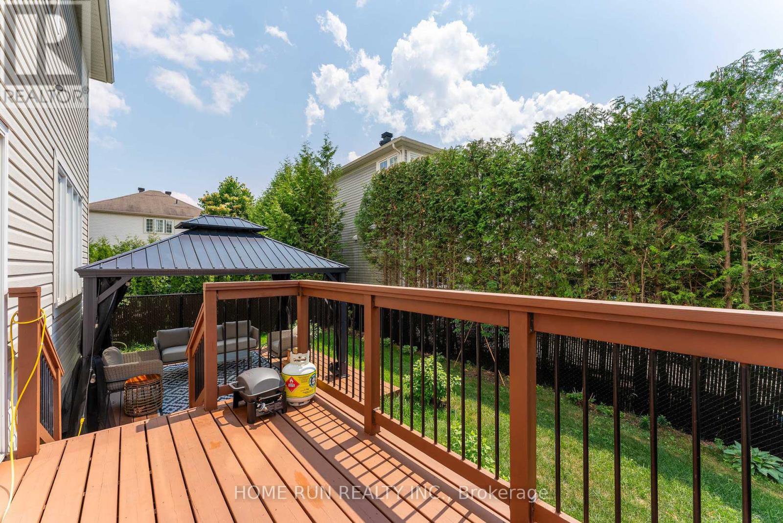 No carpet. Welcome to 343 Eckerson Avenue, a beautifully maintained, spacious family home in the heart of Stittsville. This 4-bedroom, 4-bathroom detached property is ideally located on a quiet, low-traffic street across from a peaceful wooded area, offering both privacy and tranquility. The main level features a bright and airy foyer, a formal living room, and a versatile denideal for a home office or study. The separate dining room is highlighted by a large window that fills the space with natural light.The open-concept kitchen is the hub of the home, stainless steel appliances including a gas stove and ample cabinetry. The adjacent family room offers a cozy atmosphere with a gas fireplace, pot lighting, and direct access to the backyard through an oversized patio door. Enjoy outdoor living on the wooden deck and gazebo in the fully fenced backyardperfect for relaxing or entertaining, especially when the surrounding trees are in full bloom. Upstairs, you'll find generously sized bedrooms and wide hallways that add to the open feel. The spacious primary suite includes a walk-in closet and a 4-piece ensuite with a soaker tub under a large corner window, and a separate shower. One of the secondary bedrooms features vaulted ceilings and its own walk-in closet with a window. The basement offers a full bathroom finish and excellent potential for additional living space, a home gym, or recreation area, along with plenty of room for storage. This home is conveniently located near top-rated schools, parks, and shopping, with easy access to the Recreation Complex, Stittsville Main Street, and local amenities. Dont miss your opportunity to own this spacious and well-appointed home in one of Stittsvilles most desirable neighbourhoods! OPEN HOUSE October 5th 2-4pm