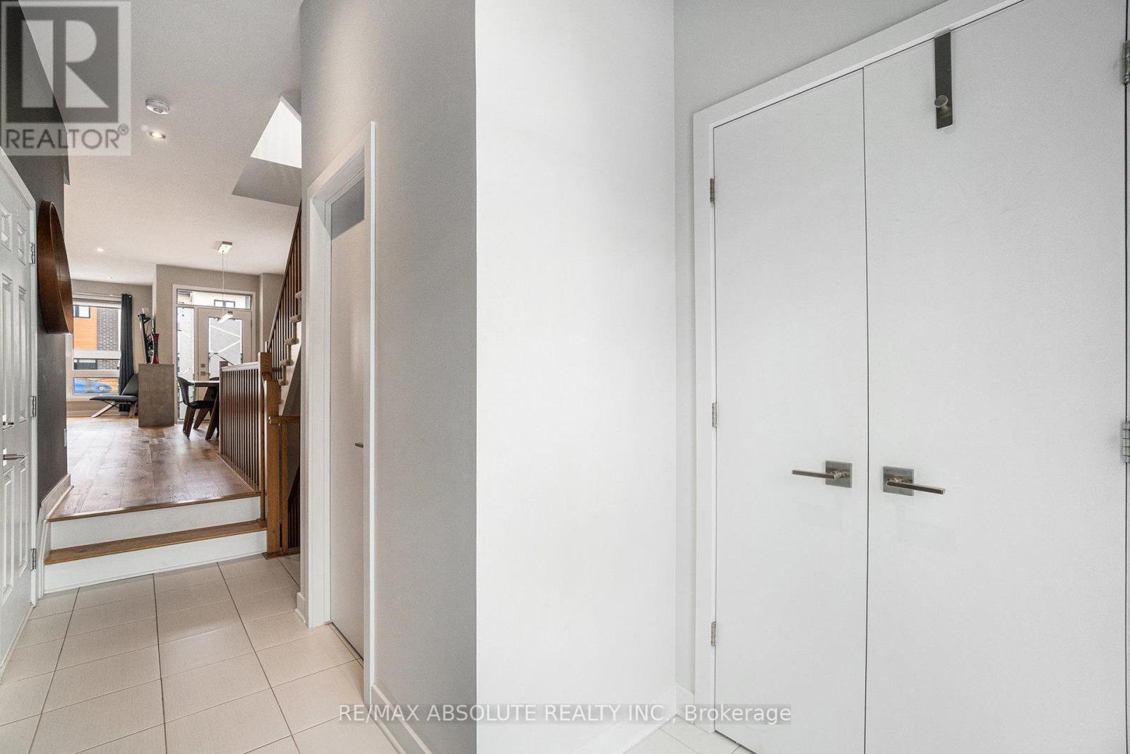 Stunning Corner Unit Townhome in Stittsville. From the moment you step inside this sun-soaked corner unit, you'll appreciate the high-end finishes, soaring ceilings, and a layout designed for both comfort and style. Spread over two levels of rich hardwood flooring, the home welcomes you with a tiled foyer and convenient powder room. The open-concept main floor is a true highlight, featuring a dramatic open-to-above living room with floor-to-ceiling windows that fill the space with natural light. A cozy electric fireplace adds warmth and character, while the chef-inspired kitchen offers quartz countertops, stainless steel appliances, gas stove, large island with breakfast bar, pot lighting, and extensive pantry cabinetry. Just off the dining area, sliding doors lead to a fully fenced private backyard with a gas BBQ hookup perfect for outdoor enjoyment. Upstairs, the spacious primary suite includes a spa-like ensuite with oversized glass/tile shower and a large walk-in closet. Two additional bedrooms, a modern 4-piece bathroom, and convenient second-floor laundry provide both function and comfort. The finished basement extends your living space with a versatile recreation room ideal for a home gym, media room, or play area plus ample storage. Smart Home features, including a Nest thermostat, add convenience and efficiency. As a corner unit, this home offers a private driveway, extra windows for natural light, enhanced privacy, and a larger outdoor space. Ideally located just steps to Abbottsville Trail, parks, schools, shopping, and dining, this property offers the perfect blend of serenity and connectivity in one of Stittsville's most sought-after communities.