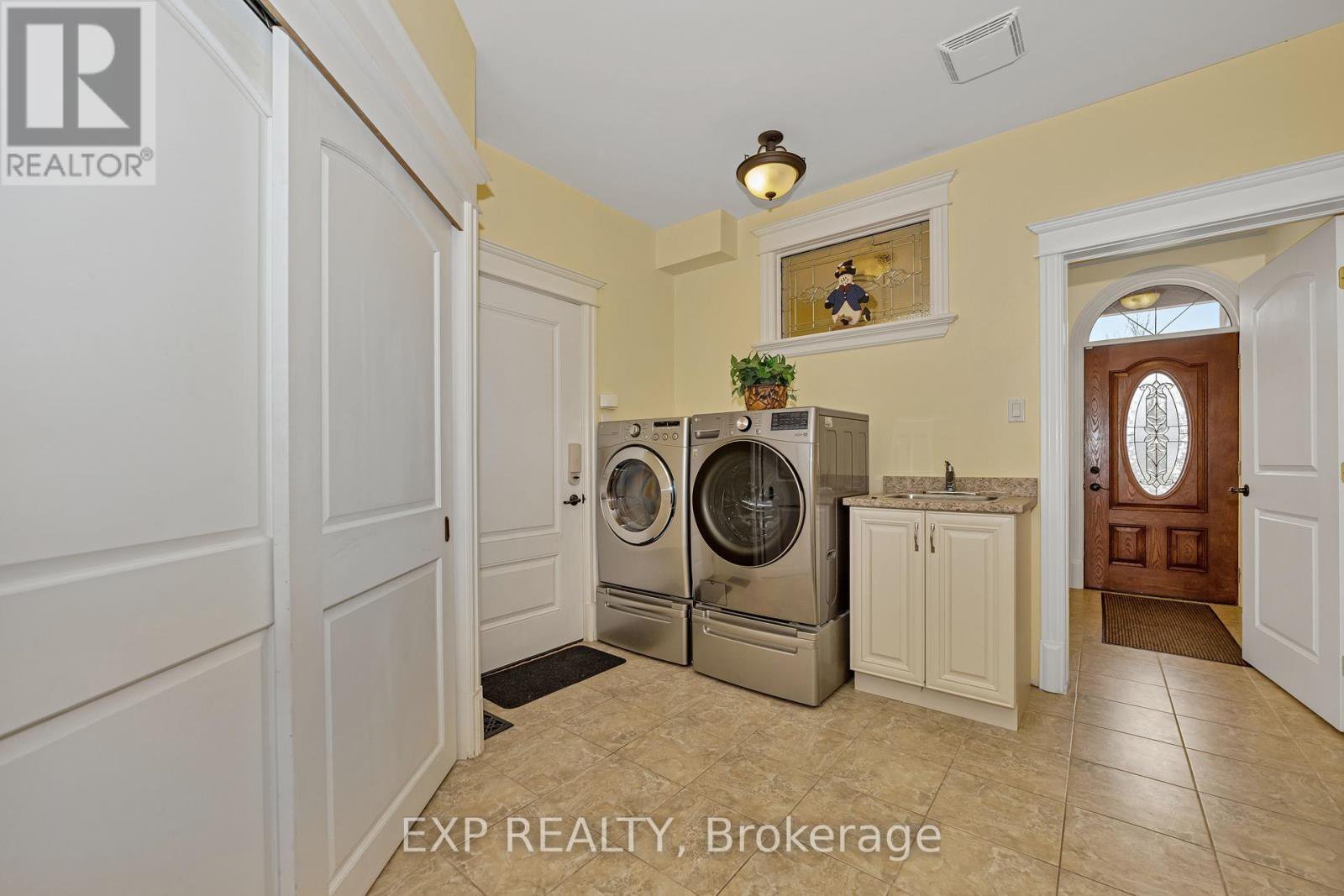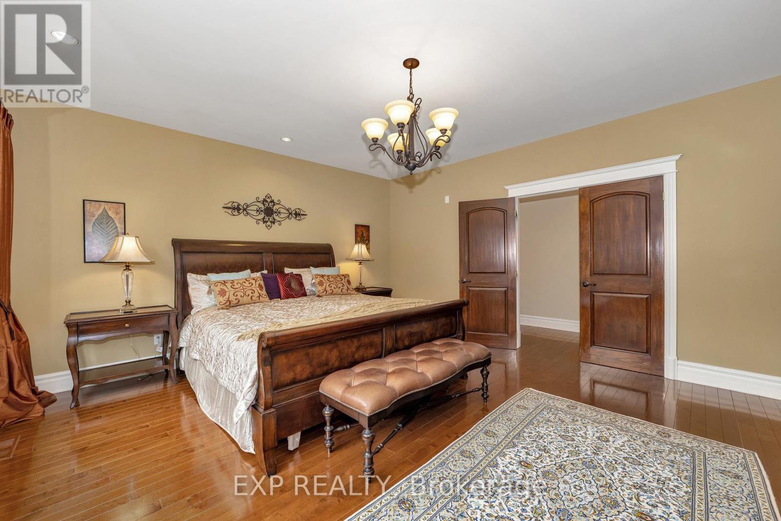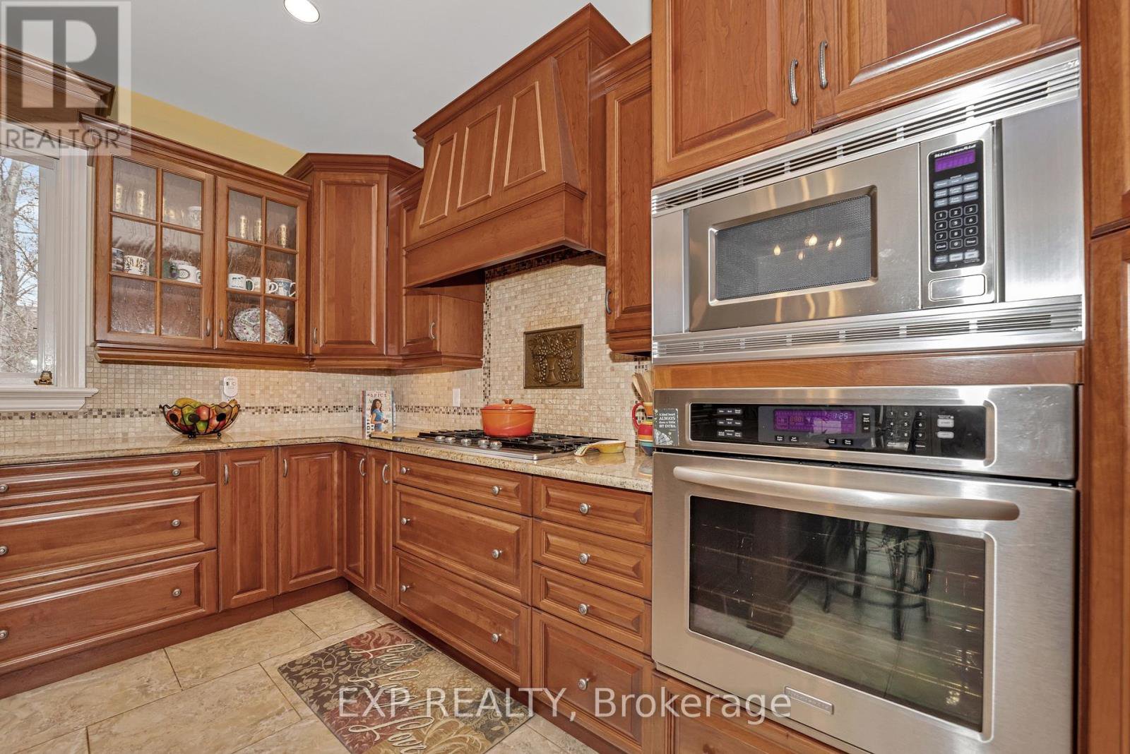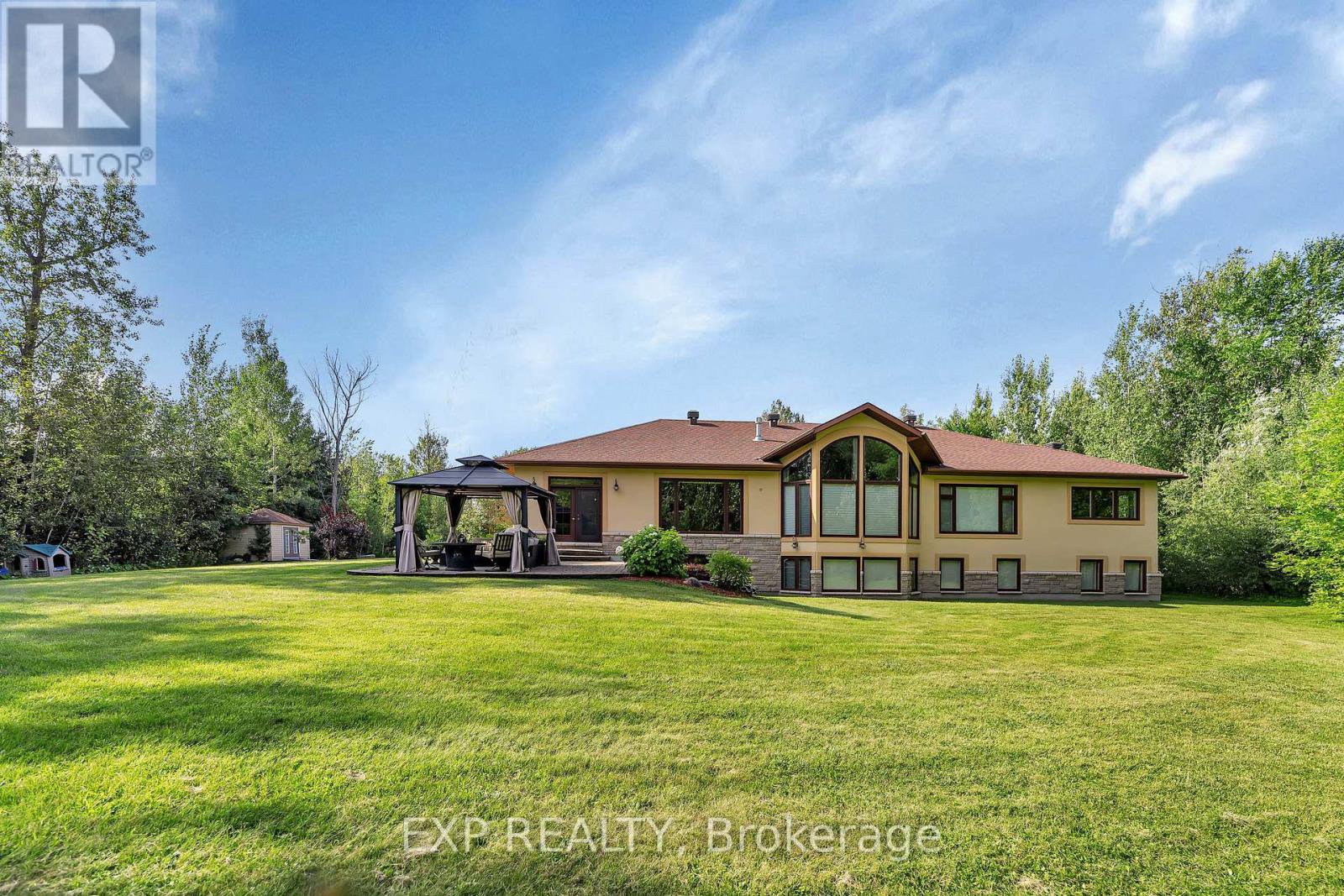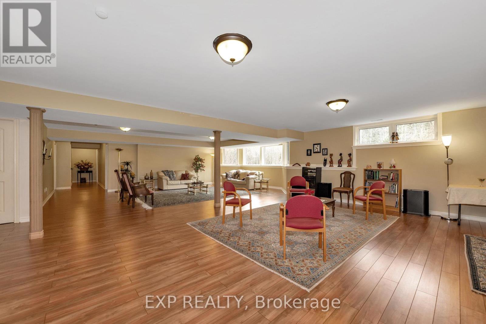 Located in the sought-after Arbourbrook Estates community in Carp, this custom-built bungalow with an oversized 2-car garage and the home offers over 5,000 sq. ft. of finished living space, including a full in-law suite with a separate entrance ideal for multigenerational living or rental potential. Set on a beautifully landscaped lot, the home features full interlock stonework from front to back, delivering exceptional curb appeal and low-maintenance durability. Inside, you'll find soaring 12-foot ceilings in the foyer and hallway, and a stunning 14-foot cathedral ceiling in the living room. Solid wood doors and premium finishes throughout the main level highlight the quality craftsmanship. The gourmet kitchen is equipped with rich cabinetry, granite countertops, and opens into a warm and inviting family room with custom-built-ins and a fireplace mantel perfect for everyday living and entertaining. The main floor offers 3 spacious bedrooms, while the fully finished lower level includes 2 additional bedrooms, large look-out windows, fully equipped in-law suite with its own private entrance. Additional highlights include: Roof has 40-year shingles, A/C, Furnace, and hot water tank recently replaced. This home is truly worry-free. Conveniently located just minutes from Carp, Stittsville, and easy highway access, this exceptional home is a rare find that blends luxury and versatility.