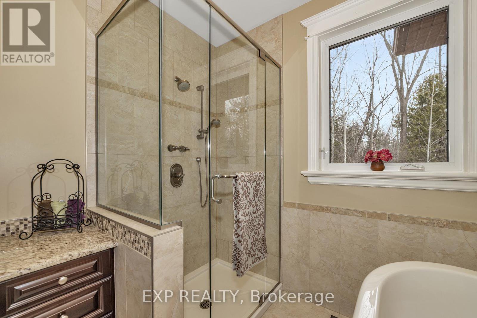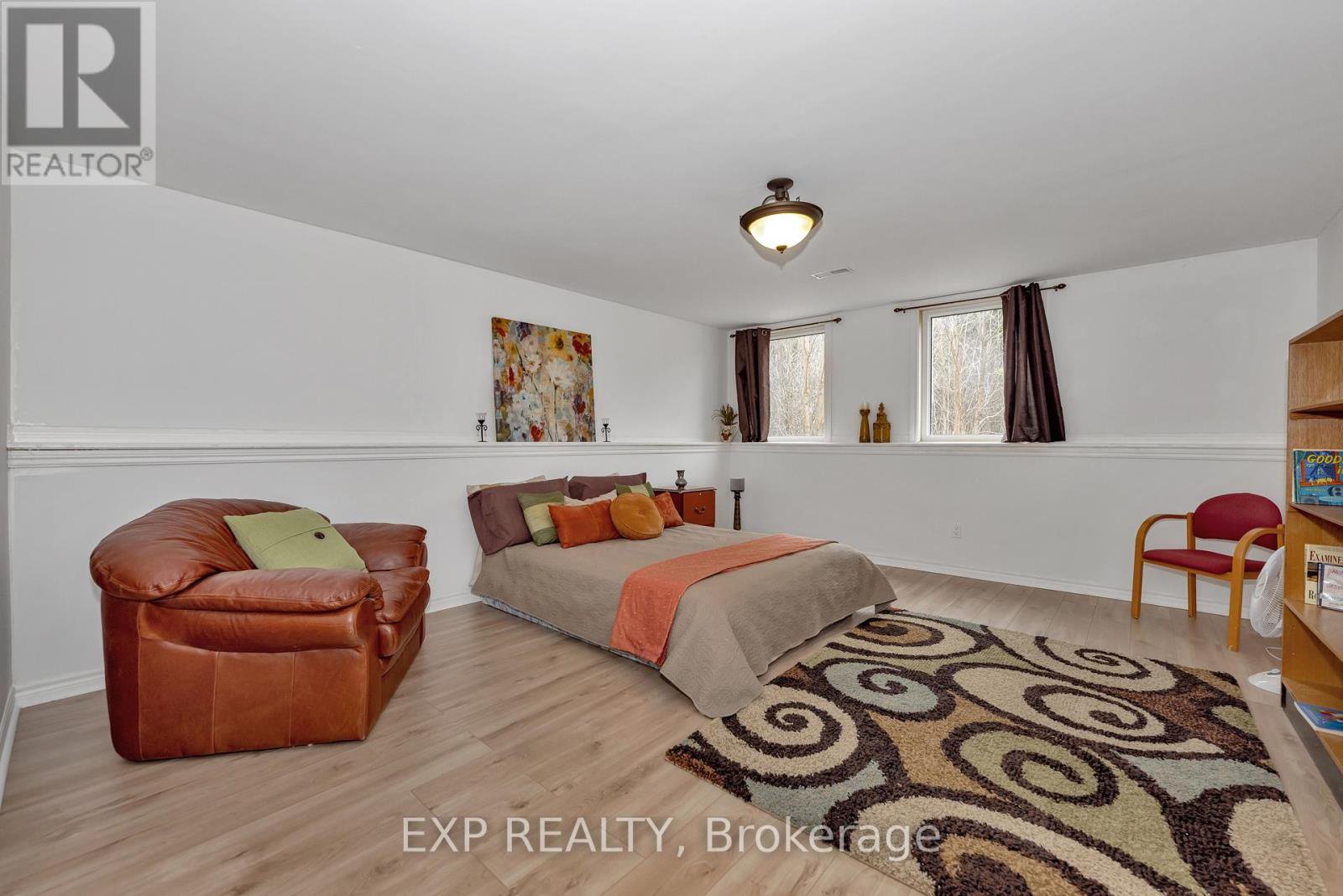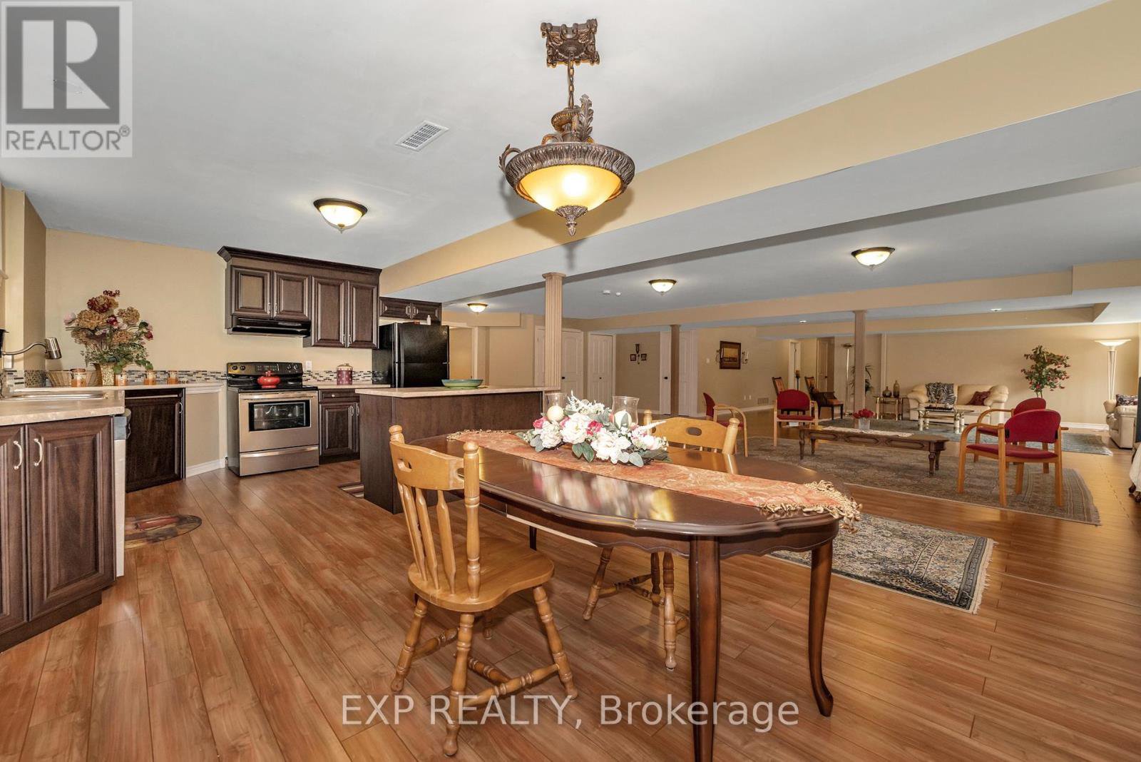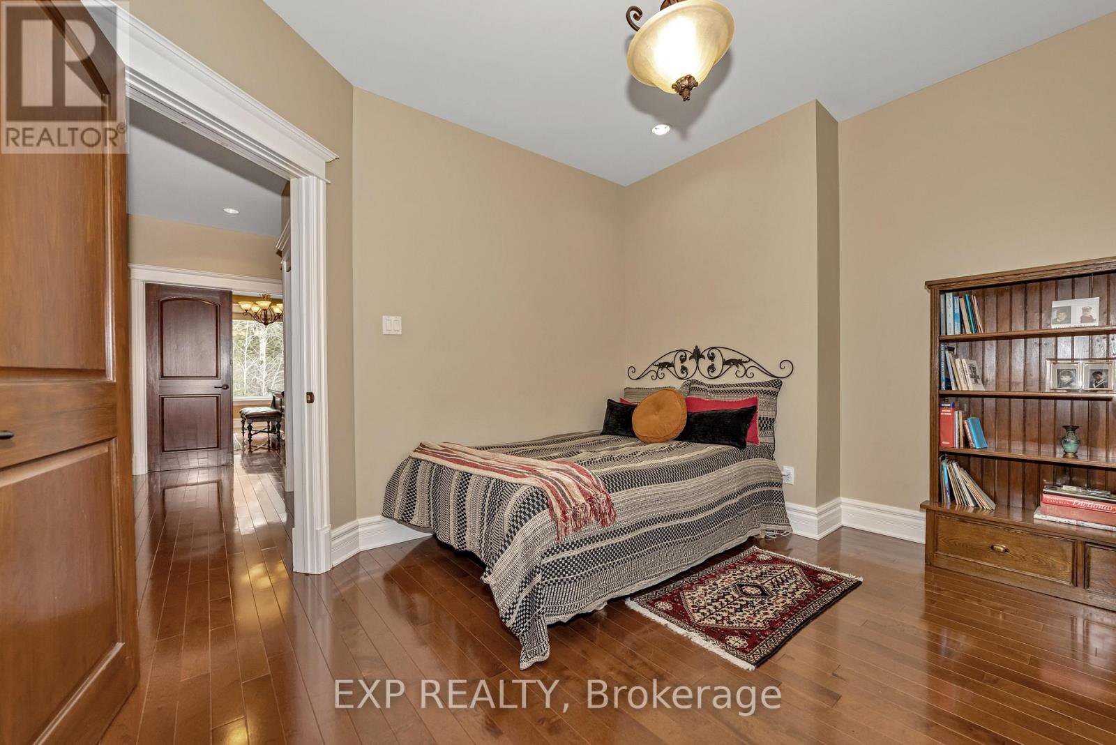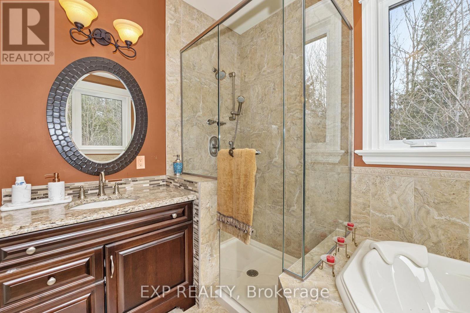Located in the sought-after Arbourbrook Estates community in Carp, this custom-built bungalow with an oversized 2-car garage and the home offers over 5,000 sq. ft. of finished living space, including a full in-law suite with a separate entrance ideal for multigenerational living or rental potential. Set on a beautifully landscaped lot, the home features full interlock stonework from front to back, delivering exceptional curb appeal and low-maintenance durability. Inside, you'll find soaring 12-foot ceilings in the foyer and hallway, and a stunning 14-foot cathedral ceiling in the living room. Solid wood doors and premium finishes throughout the main level highlight the quality craftsmanship. The gourmet kitchen is equipped with rich cabinetry, granite countertops, and opens into a warm and inviting family room with custom-built-ins and a fireplace mantel perfect for everyday living and entertaining. The main floor offers 3 spacious bedrooms, while the fully finished lower level includes 2 additional bedrooms, large look-out windows, fully equipped in-law suite with its own private entrance. Additional highlights include: Roof has 40-year shingles, A/C, Furnace, and hot water tank recently replaced. This home is truly worry-free. Conveniently located just minutes from Carp, Stittsville, and easy highway access, this exceptional home is a rare find that blends luxury and versatility.